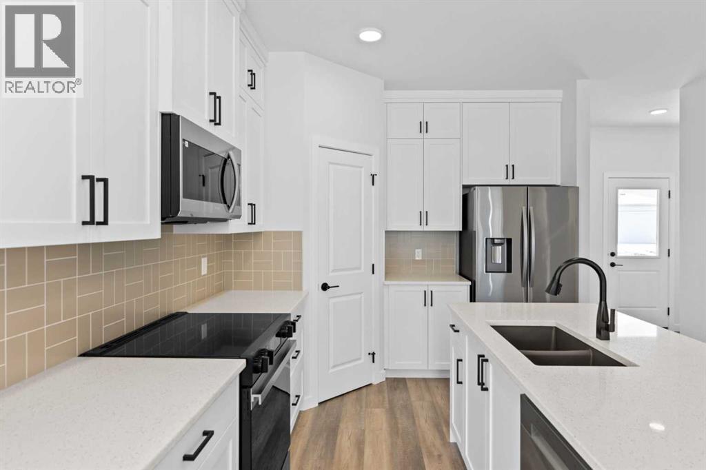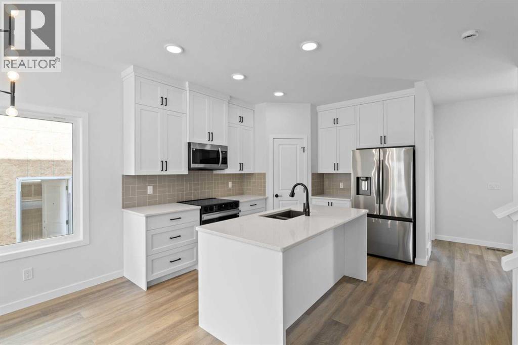 NEW PRICE...This custom McKee "built green" home in Vista Crossing is exactly what you've been looking for! A spacious 3 bedroom home PLUS an additional bedroom on the main floor….close to schools and parks this is truly a dream family home. The kitchen features upgraded cabinetry with pot drawers, quartz countertops, stainless steel appliances, and a large pantry. Luxury vinyl plank flooring in main floor, large windows for lots of natural light and designer detailing adds to the charm! Upstairs, the owner's suite includes a walk-in closet and ensuite along with two additional bedrooms, a full bathroom, and laundry room. This home is close to schools, playgrounds, walking paths and more! There's so much included in this brand new home! (id:51913)