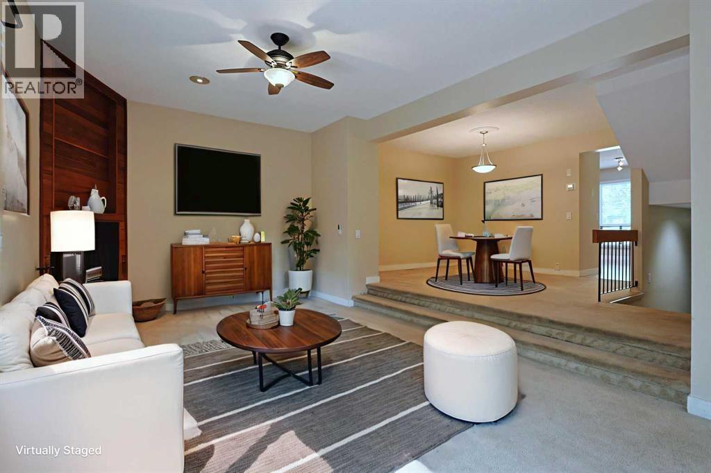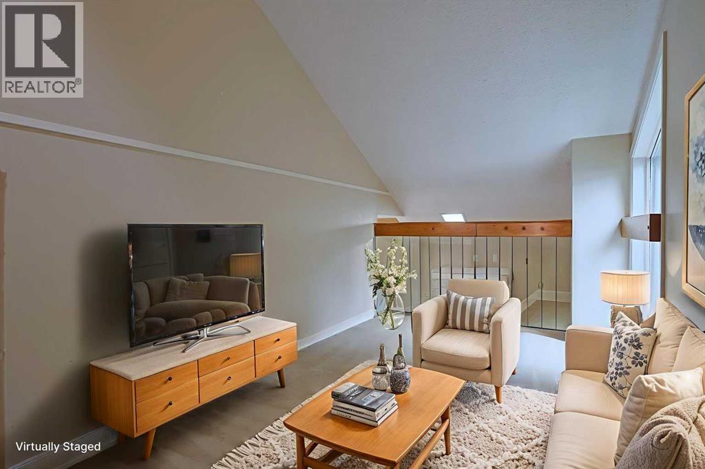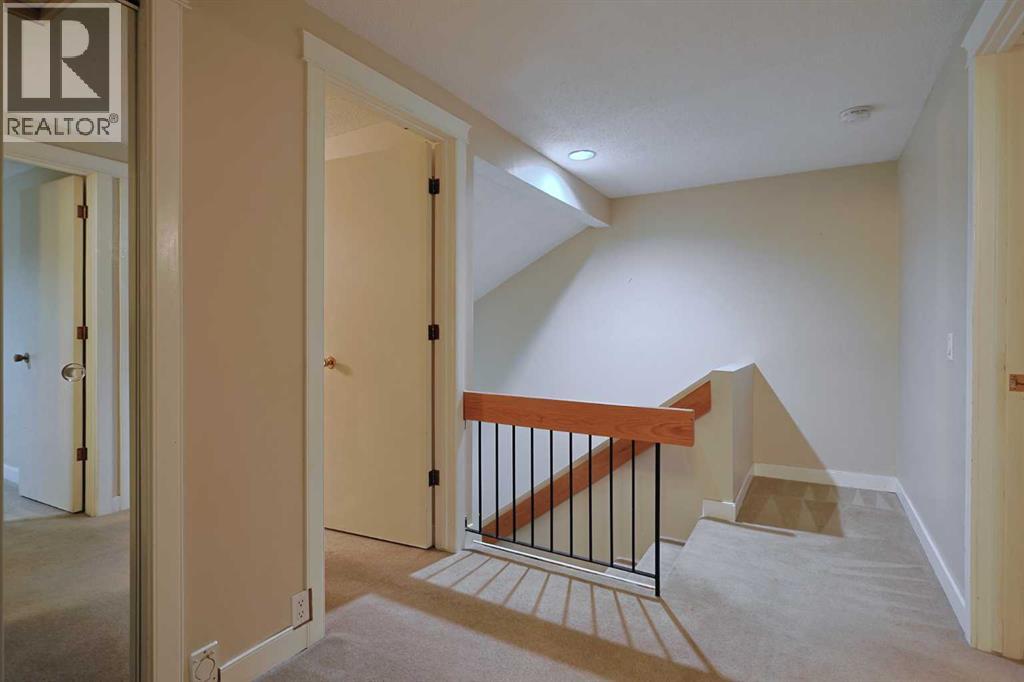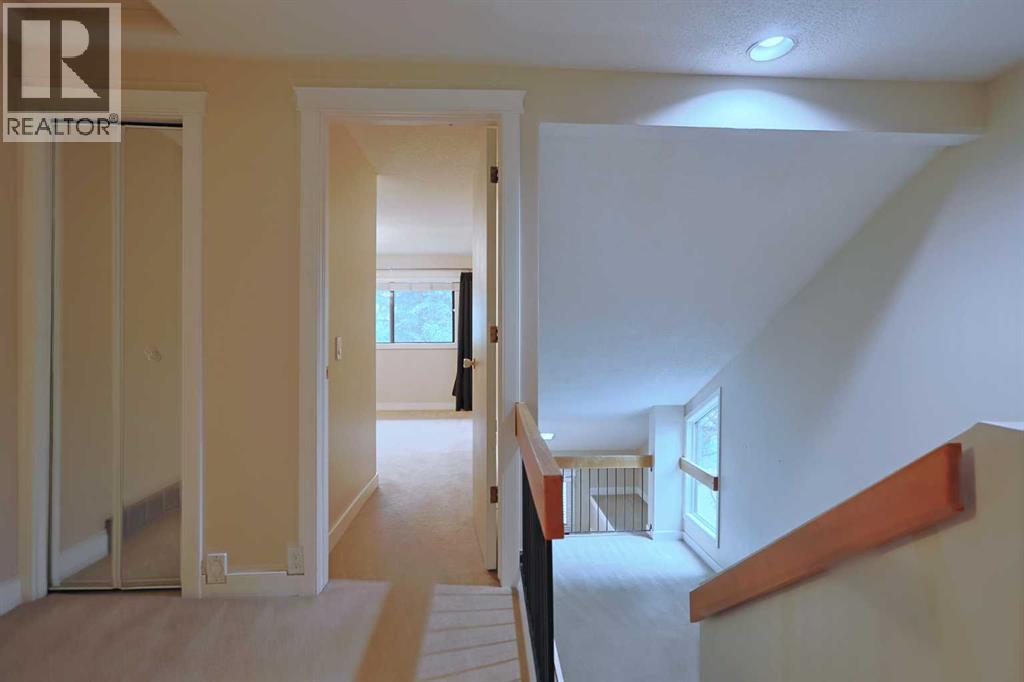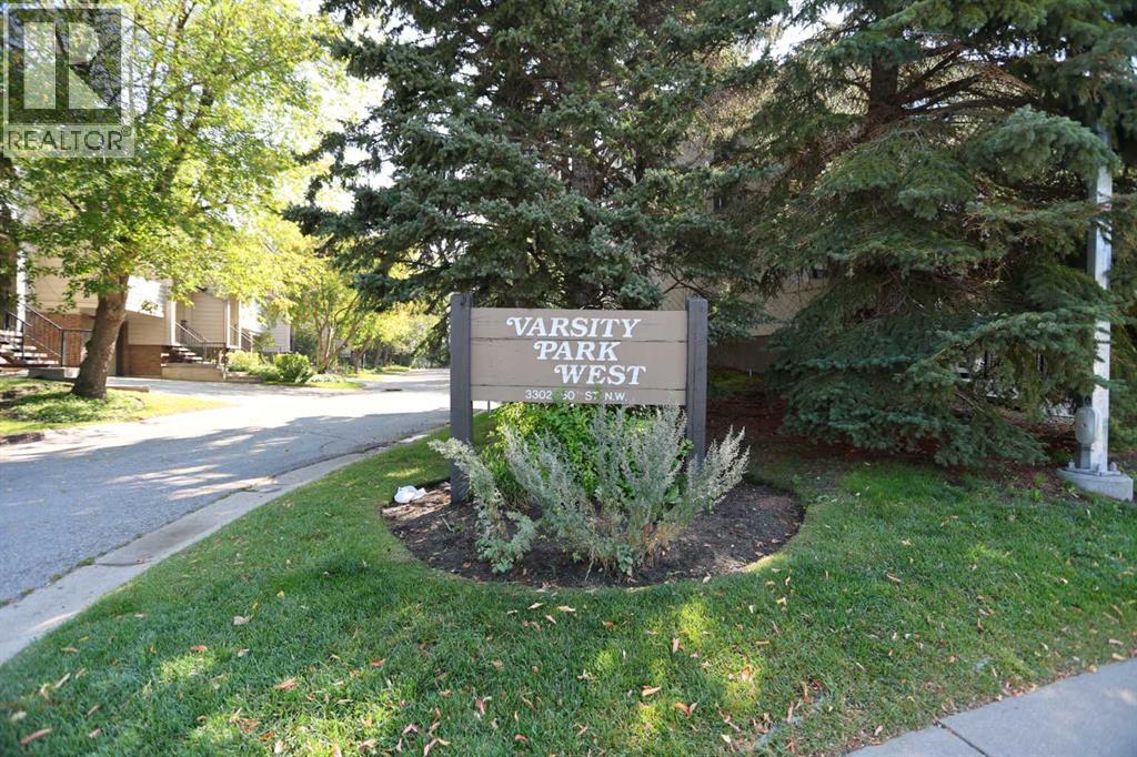 Opportunity knocks here in this lovely townhome in VARSITY PARK WEST…this collection of charming condos in this prime location across from Market Mall & walking distance to the Bow River pathway system & the bluff overlooking the river. Available for quick possession, this 3 bedroom split-level home has a terrific floorplan with large & spacious room, oversized single garage, 1.5 bathrooms & backs onto 1 of the 2 treed park areas in the complex. This wonderful end unit enjoys an inviting living room with brick wood-burning fireplace, leading up to the dining room making entertaining a breeze. The eat-in kitchen has tile floors & great cabinet space, & the appliances include a stainless steel Whirlpool dishwasher. On the way up to the bedrooms on the top floor is a loft which makes a super home office or lounge. The 3 bedrooms each have excellent closet space & they share a sleek bathroom with glass vanity & vessel sink. The basement level has your laundry area with Kenmore washer & dryer, loads of space for storage & access into the 1 car garage. Love the outdoors? Then check out the fantastic South-facing deck where you relax in the tranquil setting surrounded by mature trees. Here in one of Northwest Calgary's most desirable communities, within minutes to University of Calgary & highly-rated schools, hospitals (Foothills Medical Centre, Alberta Children's & Arthur B. Child Cancer Centre), University District, transit (LRT & bus) & quick commute to the downtown. (id:51913)