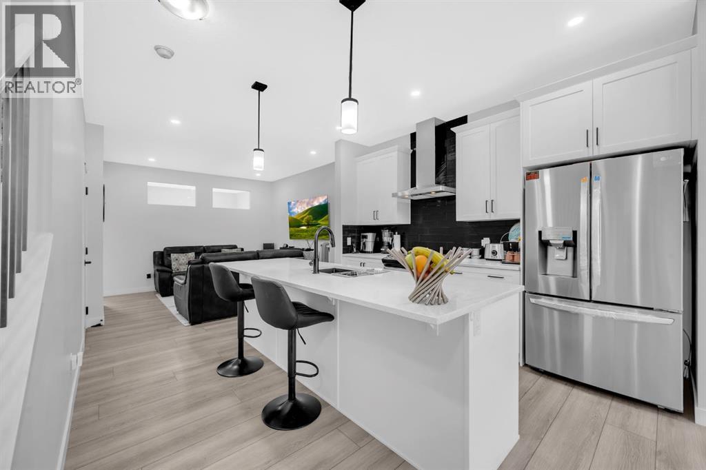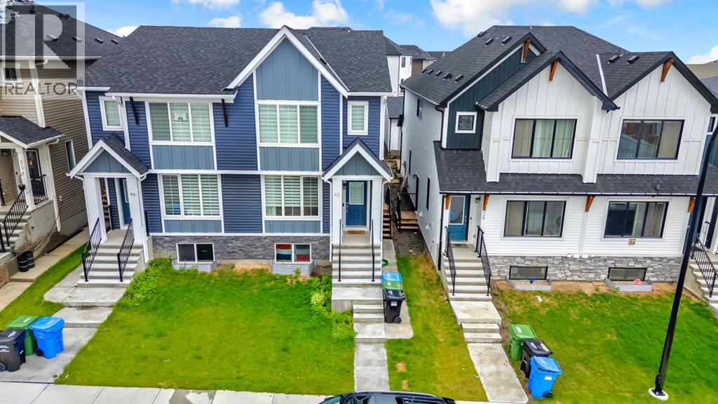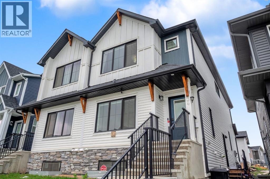 Welcome to this stunning semi-detached home with a LEGAL BASEMENT SUITE in the highly sought-after, family-friendly community of Sage Hill. Built in 2023, this modern 2-storey property offers over 1,800 sq. ft. of well-planned living space, thoughtfully designed for both comfort and versatility. With 5 bedrooms, 3.5 bathrooms, and a double detached garage, this home is perfect for families or those looking for an excellent income-generating opportunity.The main floor greets you with a spacious foyer and a versatile office space, leading into an open-concept living area filled with natural light. The chef-inspired kitchen features granite countertops, an oversized island, built-in refrigerator, gas cooktop, wall oven, and sleek modern cabinetry. The dining area flows seamlessly into the backyard, making it ideal for gatherings and entertaining. With 9-ft ceilings on both the main and upper levels, 8-ft doors, and oversized windows, the home feels bright, open, and inviting.Upstairs, discover 3 well-sized bedrooms, including a luxurious primary suite with a tray ceiling, 5-piece ensuite with soaker tub and shower, double vanity, and a walk-in closet. A central loft/bonus room and convenient upper-floor laundry add to the functionality of the layout.The fully developed LEGAL BASEMENT SUITE, complete with its own private entrance, offers 2 bedrooms, a full 4-piece bathroom, a well-equipped kitchen, a cozy living/game area, and its own laundry — perfect for multi-generational living or as a mortgage helper.Notable upgrades include motorized blinds, quartz/granite countertops throughout, laminate and tile flooring, built-in features, double vanities, multiple walk-in closets, and a concrete-paved driveway.Situated on a 2,529 sq. ft. lot in one of NW Calgary’s fastest-growing neighborhoods, this home is close to parks, pathways, schools, shopping, and transit. Offering a rare blend of modern design, functionality, and legal suite potential, this property is truly move -in ready and a must-see. (id:51913)