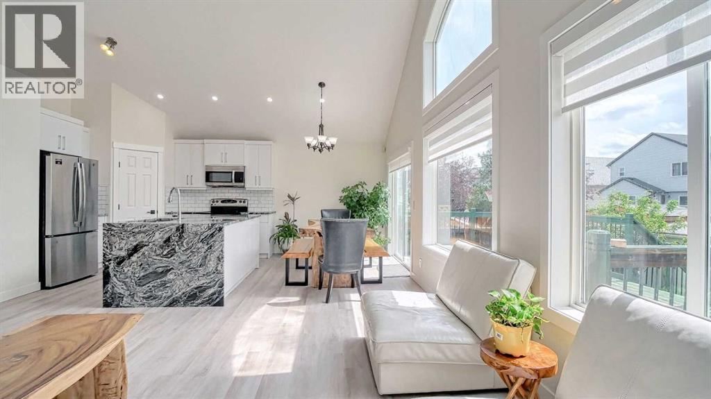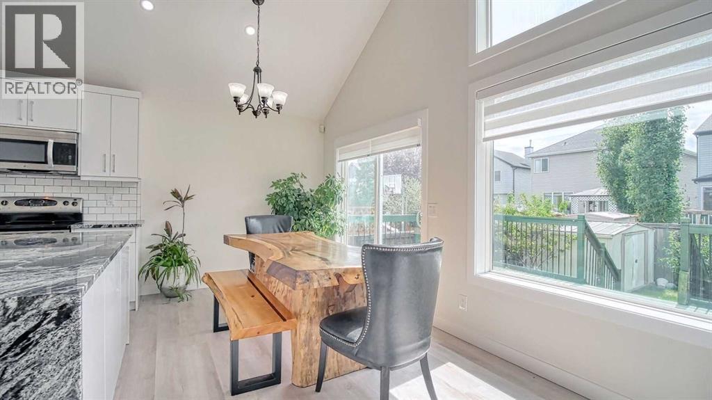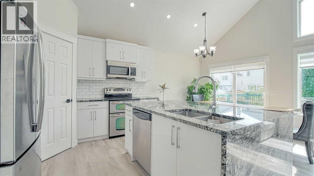 Located in the very popular community of Copperfield, this beautiful family home offers excellent value. Fully developed on all three levels, with total of 4 bedrooms and 3 full bathrooms, double attached garage. A bilevel style home with a large Bonus room on the top level. A spacious foyer welcomes you into this home, with many recent upgrades, including brand new luxury vinyl flooring, Central AC, 9 ft ceilings and more. A few steps up to an Impressive main floor. The very high vaulted ceilings, many large windows, fill this home with a lot of natural light, making this home bright and open. A large Living Room with a Cozy gas fireplace with a nice stone tile finish that adds ambiance, A Dining room, big enough for big family dinners, opens onto a large deck backing on to large backyard for you to enjoy. A Gourmet Kitchen with a stunning central island, Stainless Steel appliances granite counters, lots of cabinets. Primary bedroom with a 4 piece En-suite, one more large bedroom, a full main bathroom and laundry room on this level too. A few steps up to the very nice bonus room with vaulted ceiling- ideal for cozy movie nights and family time. The lower level has an extra large rec room, two large bedrooms, kitchen with lots of cabinets. Excellent location, close to schools, - 2 minutes to Elementary and Junior High, 10 minutes to High school, 10 minutes to South Health Campus. The Community of Copperfield offers many amenities. You are close to Parks, green space, walking pathways, shopping, fine and casual dining, and several major routes. Perfect home for you to move into before School starts and enjoy. (id:51913)