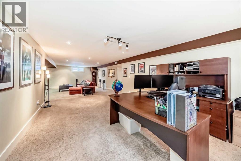 Welcome to a 'top" location in West Dalhousie. This massive bungalow (over 2,000 sq ft on the main) was completely remodelled in 2011 and a number of upgrades since like triple pane windows on the main floor in 2022, a new roof in 2014, new AC unit 2023 and updated landscaping in the backyard in 2013. The main floor has hardwood throughout, a front living room w/ a wood burning fireplace which is very cozy during our long winters. The kitchen has a large island, high end appliances, which includes wall oven + microwave, along with granite counter tops, and dark brown cabinets. There is also a large dining room across, a laundry room w/ sink + a family room with gas fireplace at the back. The primary bedroom is large in nature with access to the yard, a double sided gas fireplace, a 5 piece ensuite, and a spacious walk in closet. There are 2 additional bedrooms + a 4 piece bathroom on the main floor. The yard is huge with a walking path along the back, a retaining wall, deck and pergola, shed and dog run along the east side. The lower level is spacious with over 1,200 sq feet of developed space. It has a fitness room, a large storage room, plus a huge rec/games room which acts as a media centre and an office right now. There is 4th bedroom that's perfect for guests or a teenager along with a 3 piece bathroom (walk in shower). There also is a tankless/on-demand water tank + an updated high efficiency furnace. Home is walking distance to the Dalhousie elementary school, HD Cartwright and a short drive to Sir Winston Churchill. Situated across from a large green space and within walking distance to Dalhousie C train Station make for a great location. Rarely do bungalows of this size come onto the market in NW Calgary. (id:51913)