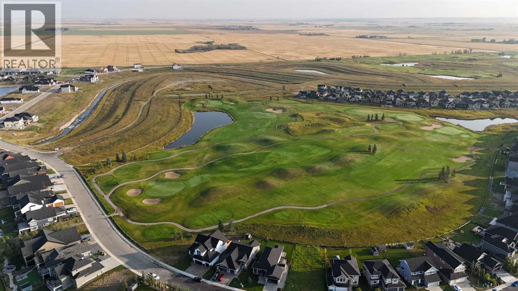 ELIGIBLE FOR FIRST HOME BUYERS GST REBATE. Welcome to this beautiful 4-bedroom plus den bungalow, perfectly set in a quiet golf course community with no neighbors behind and sweeping mountain views. From the moment you step inside, you’ll be drawn to the heart of the home—the extended kitchen. Designed for both cooking and gathering, it features sleek quartz countertops, stainless steel appliances, an abundance of cabinetry, and a layout that flows seamlessly into the dining and living areas.Soaring vaulted ceilings and large west-facing windows flood the main floor with natural light, framing peaceful pond and mountain views you’ll never tire of. The spacious primary retreat is a true getaway with a walk-in closet and spa-inspired ensuite, while a second bedroom and office/den complete the main level.Downstairs, the fully finished lower level offers even more space to relax and recharge—two more bedrooms, a home gym, and plenty of room for movie nights or entertaining friends. The oversized triple garage gives you all the space you need for vehicles, storage, or even a workshop, while the private backyard invites you to unwind and soak in the tranquility. Just 20 minutes from Calgary and minutes to Strathmore, this home strikes the perfect balance of luxury, privacy, and convenience. (id:51913)