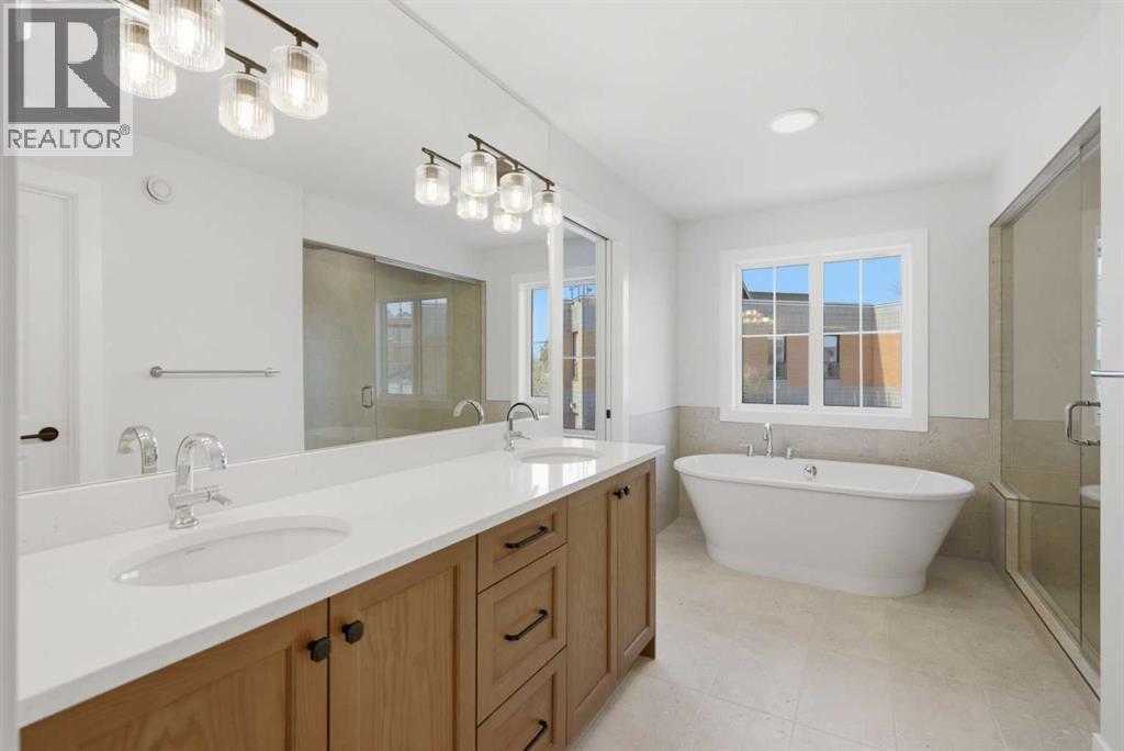 5-BED | 3.5-BATH | TRIPLE-CAR GARAGE | LEGAL 2-BEDROOM BASEMENT SUITE | DESIGNER UPGRADES | FULL LANDSCAPING | HARDIE BOARD SIDING** A rare opportunity to own a BRAND NEW Crystal Creek luxury home in Currie has arrived. Features over 4,400 SQ.FT. of designer living space with a triple car garage and legal basement suite. A dramatic open-to-above great room anchors the main floor, filled with natural light. The gourmet kitchen with large island, PREMIUM APPLIANCES, and butler’s pantry keeps prep separate from entertaining. The dining area connects directly to a large rear deck, while a separate side courtyard deck with outdoor fireplace extends the living space outdoors. A flexible main floor room works equally well as PRIVATE OFFICE or guest bedroom. Upstairs, the primary retreat features a spa inspired ensuite and a walk in closet dreams are made of. Two additional bedrooms, a bonus room, full bath and laundry complete the level. The fully finished legal basement suite includes two bedrooms, full kitchen, living area and private rear entrance, offering excellent flexibility for EXTENDED FAMILY or RENTAL INCOME. Additional upgrades include air conditioning, water softener, tankless hot water and full landscaping, New build is backed by certified builder warranty. Located in the sought after inner-city community of Currie walking distance to dog park, premium schools and amenities. Just minutes to downtown, Mount Royal University and Marda Loop. MOVE IN THIS SPRING. Book your private showing today! (id:51913)