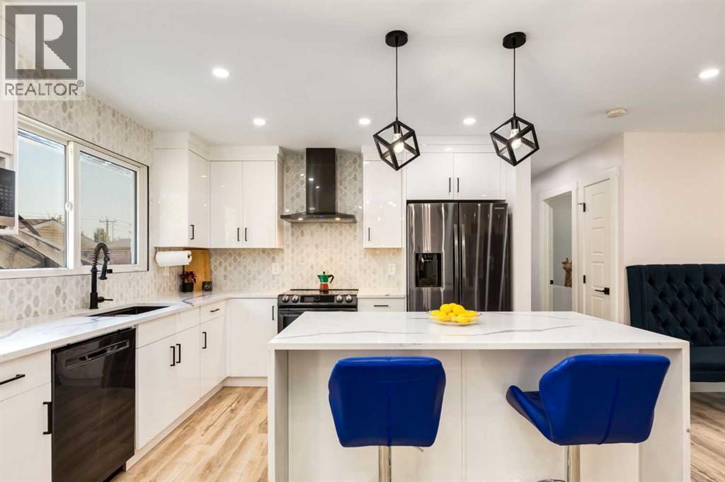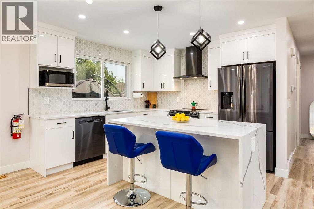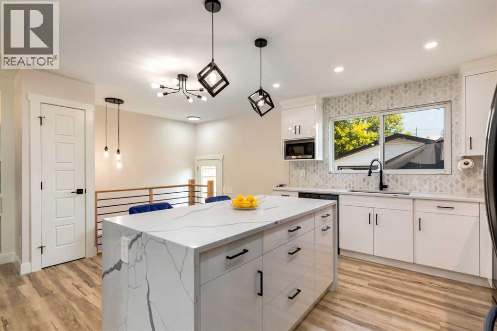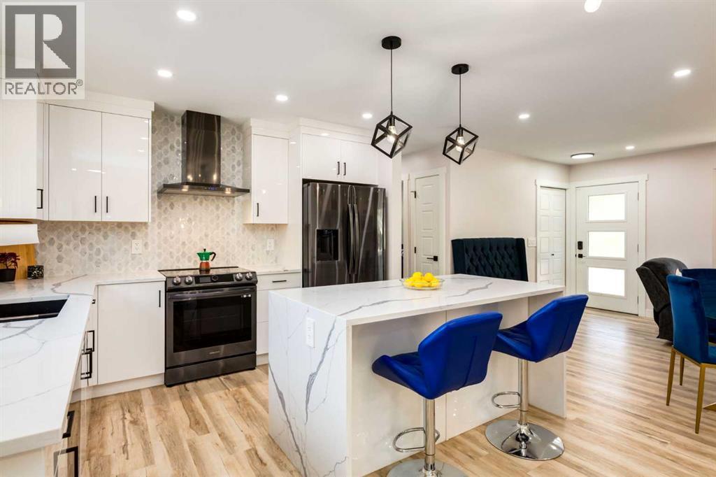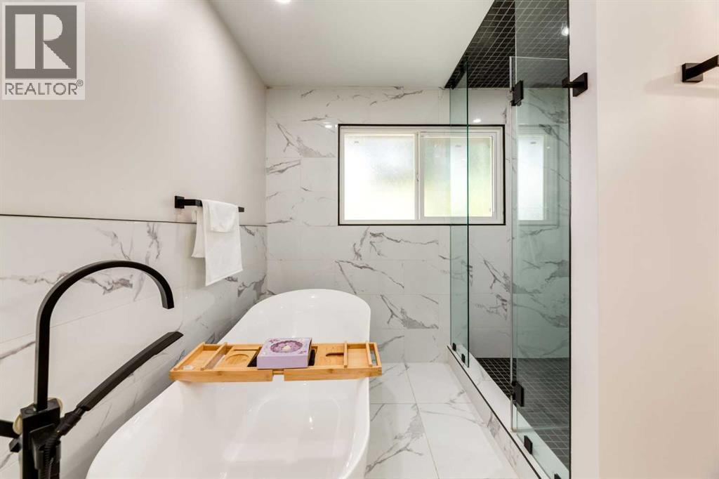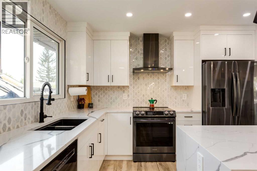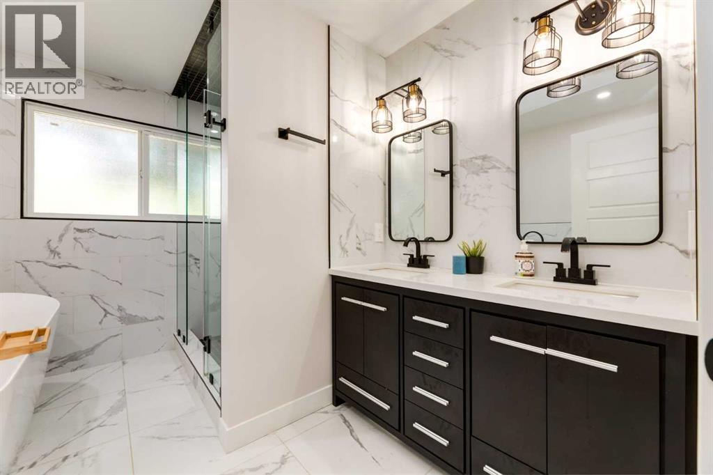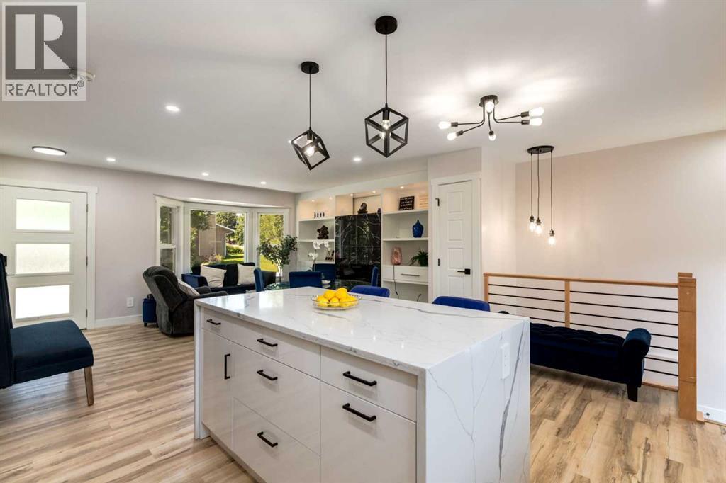 Remarkably designed inside & out ~ This fully finished Canyon Meadows home offers a modern open-concept layout, situated on a huge 8,525 sq ft lot with an unbeatable backyard, and OVERSIZED, HEATED GARAGE w/ Attached WORKSHOP and RV parking. Great curb appeal welcomes you with mature trees, garden beds beneath the front windows, a paved stairway, and a long side driveway. Inside you instantly appreciate how bright & open this home is, with an organized front closet and rich vinyl plank flooring that flows throughout. The modern Living Room is anchored by a marble-tiled fireplace surrounded by stunning built-ins with lighting, and big bay windows that let the sunshine flood the main floor. The luxurious kitchen hosts crisp white cabinetry, stone counters, SS appliances, a full tiled backsplash, eat-up island, perfectly-placed window to enjoy backyard views while doing dishes, upgraded lighting, AND an organized Pantry. The Primary Bedroom offers a Walk-In Closet with wood shelving that flows through to an amazing 5-piece Ensuite. Equipped with elegant dual vanities, a stand-alone soaker tub, and fully tiled O/S walk-in shower! Completing the main-level is a 2nd Bedroom, 4-pc Bathroom with more gorgeous tile, and a Linen Closet for added organization. Downstairs you’ll find a massive Rec Room with a focal point electric fireplace, custom wet Bar with a sink and great storage, TWO more large bedrooms with closets, a versatile Home Office or Gym, a 3-piece bath with a corner walk-in shower, designated Laundry Room with a window, and plenty of storage! Outside, enjoy your own little oasis - featuring a stamped concrete Patio off the back door, mature landscaping that includes huge picturesque trees, solid wood fencing for added privacy, and extensive parking for your friends, family, RV AND toys! All this is tucked in a walkable location close to excellent schools, bus stops and transit, and all the everyday amenities you need. This home checks all the boxes for style, function, and location - are you ready to come fall in love with your new HOME? (id:51913)