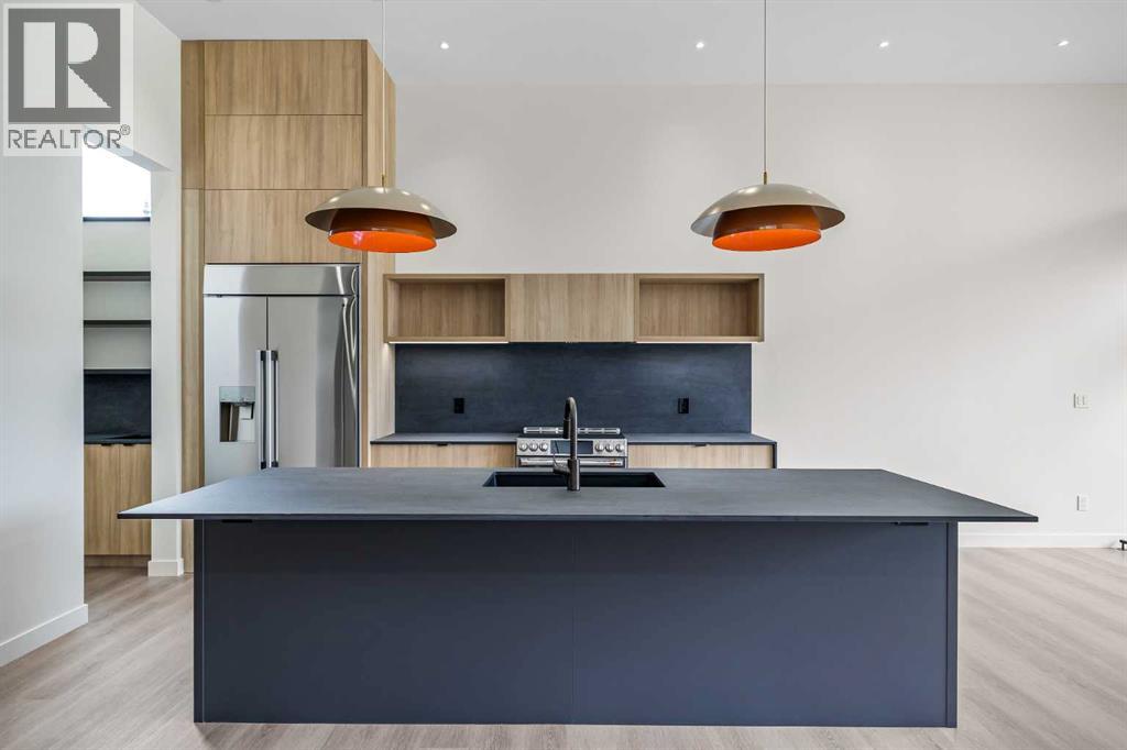 Set beneath the canopy of a 70-year-old larch and overlooking the green expanse of Poplar Park, 3D Willow Crescent offers a rare combination of thoughtful architecture, inner-city convenience, and space to grow.Designed by Richard Davignon of Davignon Martin Architecture—recipient of the American Institute of Architects Award of Excellence—this residence is part of The Larches, an exclusive collection of four modern homes. Built in collaboration with Infinity Construction, the homes borrow the durability and craftsmanship usually reserved for custom estates while bringing it into a livable, just-under-2,600-square-foot footprint.Inside, the main floor unfolds in an open concept, with a custom kitchen at its centre and oversized windows framing calm, park-like views. Handcrafted oak railings, almond-hued floors, and built-in storage create a balance of warmth and function. The second level holds three bedrooms, each with its own ensuite. The primary retreat stands apart with a freestanding soaker tub, double shower, heated floors, and a walk-in closet by California Closets.The lower level, with 11-foot ceilings (yes, you could fit a golf simulator downstairs), radiant in-floor heating, and roughed-in solar and A/C, is ready to adapt—whether that’s a media room, gym, or bedrooms. The private backyard is generous for inner-city living, offering room for gatherings, barbecues, or simply quiet afternoons. An oversized double garage with lane access, full yard irrigation, and carefully curated landscaping complete the property.Every element—from Italian stone counters and Quebec-made lighting to double-pane Lux windows and hidden eavestroughs—was selected for beauty, longevity, and ease of living. (id:51913)