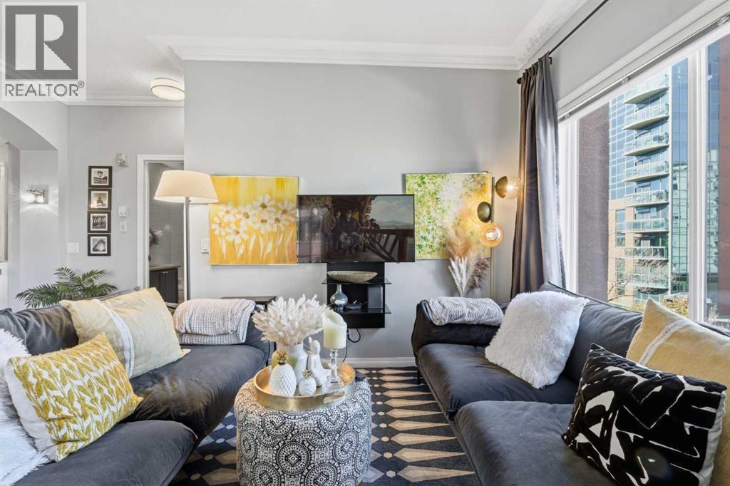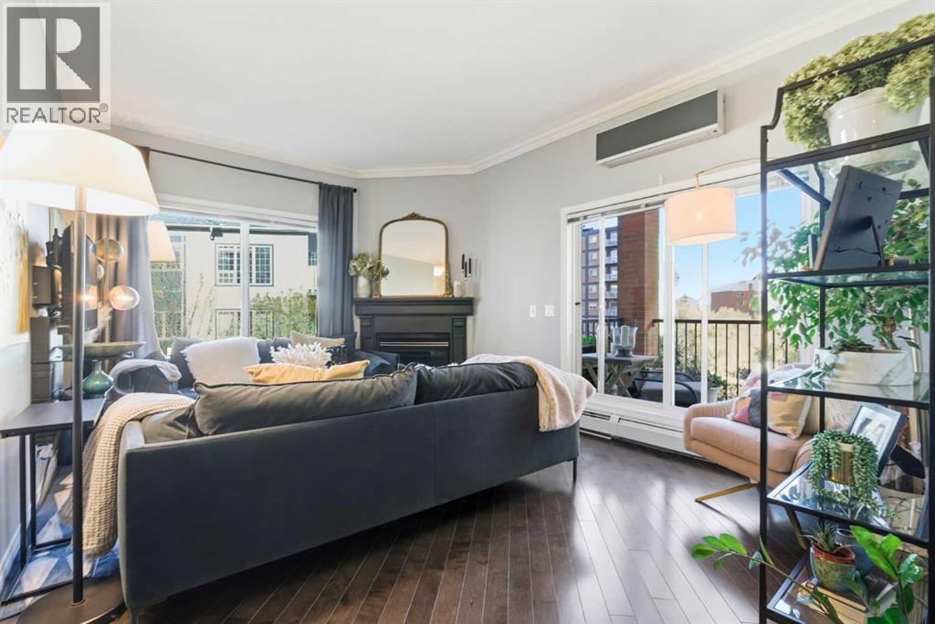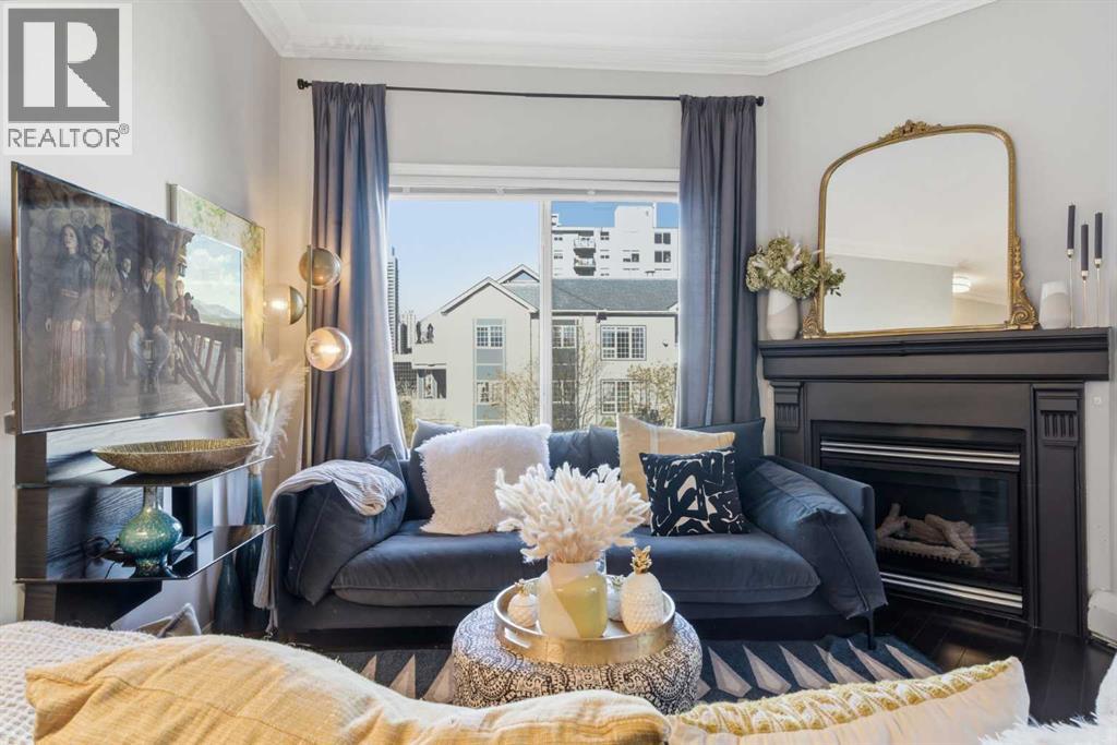 Experience sophisticated urban living in this beautifully upgraded 2-bedroom, 2-bathroom executive condo, ideally located with direct +15 access to GoodLife Fitness, London Drugs, top restaurants, and just steps from the boutiques and nightlife of 17th Avenue. Enjoy a highly walkable lifestyle with easy access to downtown and the Bow River Pathway system. This light-filled, modern residence features designer lighting, expansive windows, and an open-concept layout. The chef-inspired kitchen boasts a sleek peninsula island with eating bar, premium stainless steel appliances, classic subway tile backsplash, and timeless white cabinetry. An elegant dining area flows into the spacious living room, complete with a stylish fireplace and breathtaking panoramic city views. Step onto the covered balcony to enjoy morning coffee or evening sunsets year-round. The primary suite offers a luxurious retreat with a full private ensuite, while the second bedroom and full guest bath provide comfort and flexibility. Additional features include in-suite laundry, secure underground parking, and ample storage.Perfect for professionals or those seeking an upscale urban sanctuary—this home offers the ultimate in downtown luxury living. (id:51913)