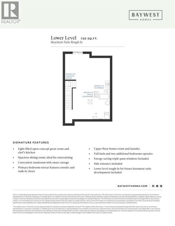 Meet THE BASIL—a stunning 1,872 SQ.FT. home offering 3 BEDROOMS and 2.5 BATHROOMS, situated on a spacious 3,348 SQ.FT. lot with a East-facing backyard. Estimated move-in is set for late 2025, giving you plenty of time to plan your next chapter. Built by BAYWEST HOMES, a trusted name since 1985, this home offers solid construction, innovative design, and comes with both a 10-YEAR ALBERTA NEW HOME WARRANTY and a one-year builder warranty for added peace of mind.Step inside to a welcoming entryway and a tucked-away powder room before being wowed by the showstopper kitchen! This chef’s dream features 42-inch WHITE cabinets extending to the ceiling with crown molding & under-cabinet lighting, a built-in microwave, gas range, upgraded appliances, and a chimney hood fan with tile work reaching to the ceiling. Quartz countertops, a Silgranite under-mount sink, and an upgraded faucet combine beauty with functionality. The island cabinets are a beautiful taupe colour. You’ll also love the 4-bin pullout system for waste, recycling, and compost—no more unsightly garbage cans!A spacious pantry sits across from the island with eat-up bar, and the mudroom provides both extra pantry space and a tucked-away area for your family’s coats and shoes.Designed with entertaining in mind, the open-concept great room and dining area feature oversized windows and a sliding glass door overlooking the backyard. Other notable upgrades include 9-foot basement ceilings, a side entrance, modern upgraded railings, and energy-efficient triple-pane windows to keep things cozy year-round.Now, let’s talk about the primary bedroom—a peaceful retreat featuring a generous walk-in closet and a luxurious en-suite with double sinks and a spacious shower. Upstairs also includes a bonus room, a laundry room with extra storage, two well-sized secondary bedrooms, and a large main bathroom upgraded with dual sinks—no more morning battles between siblings!Ready to make your move?THE BASIL in Sawgrass P ark is waiting to welcome you home to a vibrant community featuring expansive green spaces, peaceful wetlands, scenic parks, and exciting plans for a new school and recreational amenities. Developed by Hopewell, it’s the perfect place to relax, play, and create lasting memories. Sawgrass Park is quickly shaping up to be absolutely stunning and getting in now means being one of the first to call this community home. Getting in first means incredible value and your pick of the best lots on the best streets! This home is one of those must see homes on a fantastic lot on a quiet street! Don't miss it!This home is currently under construction. Please contact the listing agent to arrange a showing. PLEASE NOTE THE PHOTOS ARE NOT OF THIS EXACT HOME. PHOTOS SHOW A HOME THAT IS THE SAME MODEL BUT IN ANOTHER COMMUNITY. See photos for a look at the COSTAL colour board for this home. (id:51913)