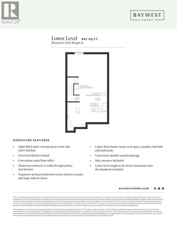 Introducing THE SAGE—a spacious home offering 3 BEDROOMS, 2.5 BATHROOMS, and a main-floor office, ideal for working from home or creating a quiet study space. Set on a generous 3,670 SQ.FT. lot with a west-facing backyard, this home provides the perfect blend of functionality, style, and comfort. The estimated move-in is late 2025, giving you plenty of time to plan for your future.Built by BAYWEST HOMES, renowned for quality and craftsmanship since 1985, The Sage is engineered for durability with innovative design and comes with a 10-YEAR ALBERTA NEW HOME WARRANTY plus a one-year builder warranty for your peace of mind.Step inside to a welcoming foyer leading into a main-floor office space, perfect for a private study or home office. The heart of the home features a show-stopping kitchen complete with 42-inch cabinets with crown molding and under cabinet lighting, upgraded appliances, a built-in microwave, gas range, and a chimney-style range hood with elegant tile that extends to the ceiling. The Quartz countertops and Silgranite under-mount sink are as functional as they are beautiful. You’ll also enjoy the walk-through pantry—a convenient space connecting the kitchen to the mudroom, where coats and shoes can be tucked away out of sight.The open-concept great room and dining area are designed for entertaining, with oversized windows and a sliding glass door that opens up to your West Facing backyard. The living room features a cozy fireplace and beautiful vinyl plank floors. Other upgrades you will find in this great home include 9-foot basement ceilings, a side entrance, upgraded modern railings, and triple-pane energy-efficient windows, ensuring comfort in every season.Upstairs, you’ll find a spacious bonus room—a versatile space that could be the perfect family retreat, movie room, or play area. Adjacent to this is a tech space, offering a quiet, dedicated area for study, work, or creative projects. The primary bedroom provides a relaxing haven with a l arge walk-in closet and an ensuite bathroom featuring a spacious shower and separate soaker tub. Two additional generously-sized bedrooms, a dedicated laundry room and a well-appointed main bathroom complete the upper floor.Ready to make your move?The Sage is waiting to become your dream home—a place where style, comfort, and functionality come together to support your lifestyle. A bit about the community - Sawgrass Park in NW Airdrie a dynamic community filled with lush green spaces, serene wetlands, and upcoming plans for a new school and recreational hubs. Developed by Hopewell, this community is designed for both relaxation and excitement, offering the perfect backdrop to build lasting memories. You will be one of the first to call this exciting new community your home! This home is currently under construction. Please contact the listing agent to arrange a showing. PLEASE NOTE THE PHOTOS ARE NOT OF THIS EXACT HOME. PHOTOS SHOW A HOME THAT IS THE SAME MODEL BUT IN ANOTHER COMMUNITY. (id:51913)