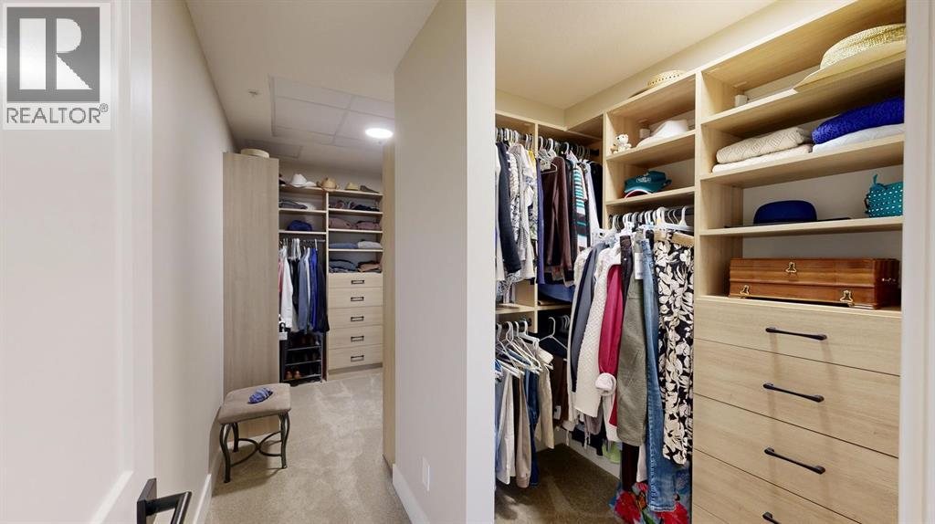 *** OPEN HOUSE - SUNDAY, OCTOBER 19th - 2 to 4 pm *** Welcome to UBER luxury living at The Views, where this top-floor 3-bedroom home offers a blend of modern style and timeless design. Constructed with concrete and steel, this very unique state-of-the-art building is a testament to enduring quality and excellent workmanship. Step inside this picturesque building and immerse yourself in the inviting ambiance of illuminated floor-to-ceiling windows that immerse the space in natural light. This open concept integrates the living, dining, and kitchen areas, promoting an ideal environment for entertaining with friends and family. The kitchen is a culinary delight, that includes a spacious island, large quartz countertops, and top-of-the-line LUXURY Wolf appliances, including an induction stove top with the option to switch to gas, a built-in microwave, dishwasher, wall oven, and LUXURY subzero fridge. There is extra storage with the sizable walk-in pantry. In the living room there is a cozy electric fireplace for those cold Calgary's months, while a large entertaining WARM SOUTH FACING patio beckons with a convenient gas line for barbecues. In fact, the SOUTH FACING patio is one of the largest in the building with two separate areas. Enjoy the view of the Mountains and the Bow Valley from these two patios! A conveniently located 2-piece bathroom caters to friends and family with ease. Consider the juxtaposition with one side of this home having a luxurious owner's retreat, featuring a private sitting area, a balcony with mountain views, expansive walk-in closet, and an illuminating 5-piece ensuite. On the opposite side, two more spacious bedrooms, each with walk-in closets, are complemented by a Jack and Jill shared 4-piece bathroom and a convenient laundry room equipped with a sink and ample storage. An additional room serves as the perfect home office. This home also includes two side-by-side titled parking stalls, a storage (44) locker, and an extra storage bin for a dded convenience. This award-winning building offers amenities such as a heated driveway leading to the parkade, a gym with an amazing golf simulator and a sauna, a very secure bike room, there are lounges on every floor, an owner's lounge, and a two-level outdoor terrace with a sweeping panoramic view of the river and the city. Owners can enjoy the BBQ area, an outdoor fireplace with lounge seating, and quick access to the city pathways for secluded strolls and bicycle rides. The Views is situated near parks, walking paths, schools, public transportation, and surrounded by an environmental reserve. This residence epitomizes uber LUXURY urban living at its best! (id:51913)