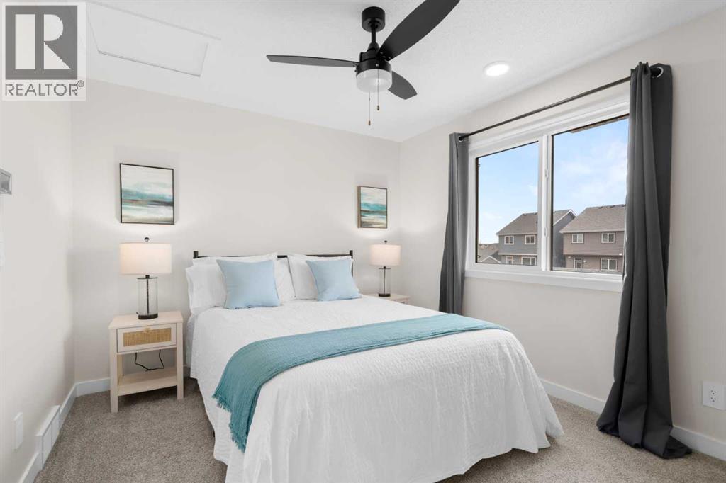 Welcome to your new home in the "garden to table" community of Rangeview! Enjoy the unique lifestyle centered on community connection through shared gardens and greenhouses! This stunning 3-bedroom, 2.5-bathroom home offers 1,666 square feet of well-designed living space and is located on a quiet, family-friendly street in the vibrant new community of Rangeview. With modern architecture, bright open-concept living, and thoughtful upgrades. Built recently, this property still carries many of its original builder warranties, offering added peace of mind. The spacious main floor features a welcoming great room, a dining area ideal for entertaining, and a sleek kitchen layout with room to customize. Upstairs, you'll find three generous bedrooms, including a private primary suite with ensuite bath and lots of counter space.. Enjoy the convenience of upper-floor laundry and flexible basement space ready for your personal touch. The yard is fully fenced and ready to enjoy! Quiet location with quick access to Deerfoot, Stoney Trail, and major amenities . Thoughtfully designed for modern family living. Don’t miss your chance to own in one of Calgary’s most exciting new neighborhoods! Rangeview offers a sense of community, access to schools and parks, and a growing array of nearby conveniences. (id:51913)