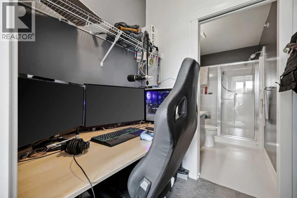 Experience top floor elegance in Unit #412 at 214 Sherwood Square NW. This stunning 2-bedroom, 2-bathroom condo boasts a southwest facing balcony with serene views of Sherwood Square Lake. The modern kitchen dazzles with quartz counters, stainless steel appliances, and a chic sit-up breakfast bar. With generous cabinet and counter space, the kitchen is a dream for cooking and entertaining. Gorgeous luxury vinyl plank flooring flows throughout the main living spaces. With 9-foot ceilings and ample natural light the open concept feels bright and airy. Retreat to the primary bedroom with a walk-through closet leading to the 3-pieace ensuite, featuring a walk-in shower. A second bedroom and 4-piece bathroom provide comfort and convenience. Additional perks include in-suite laundry, generous storage, a titled parking stall in the heated underground parkade, and secure bike storage. Situated near Sage Hill Plaza & Beacon Hill, pathways, LRT and major roadways, this condo offers the perfect blend of style and functionality. Contact your Realtor today to book a showing! (id:51913)