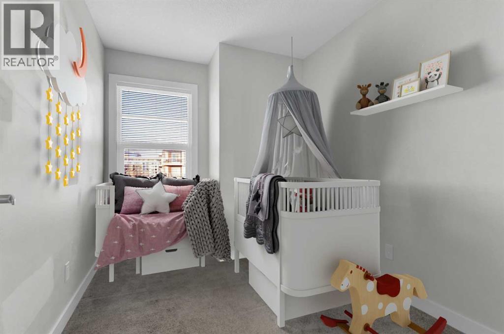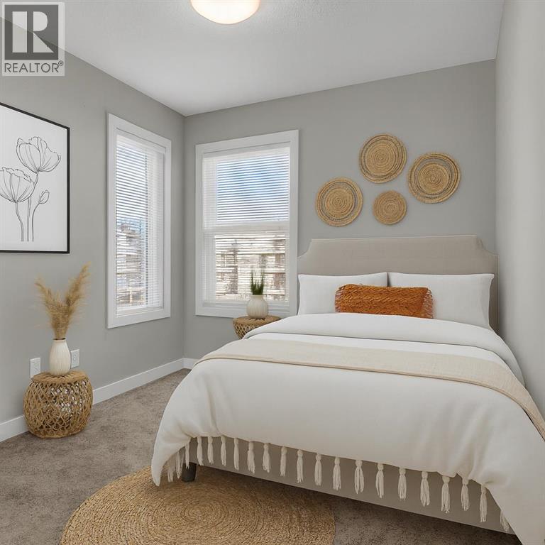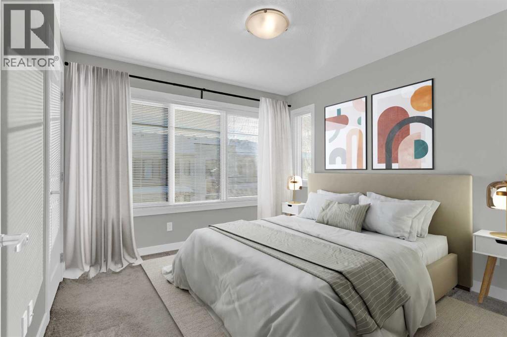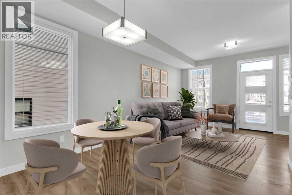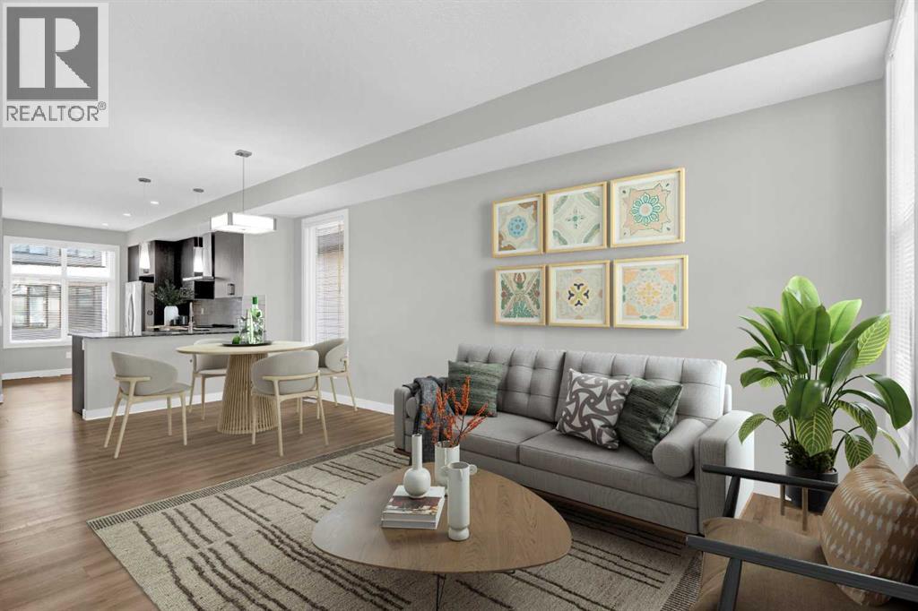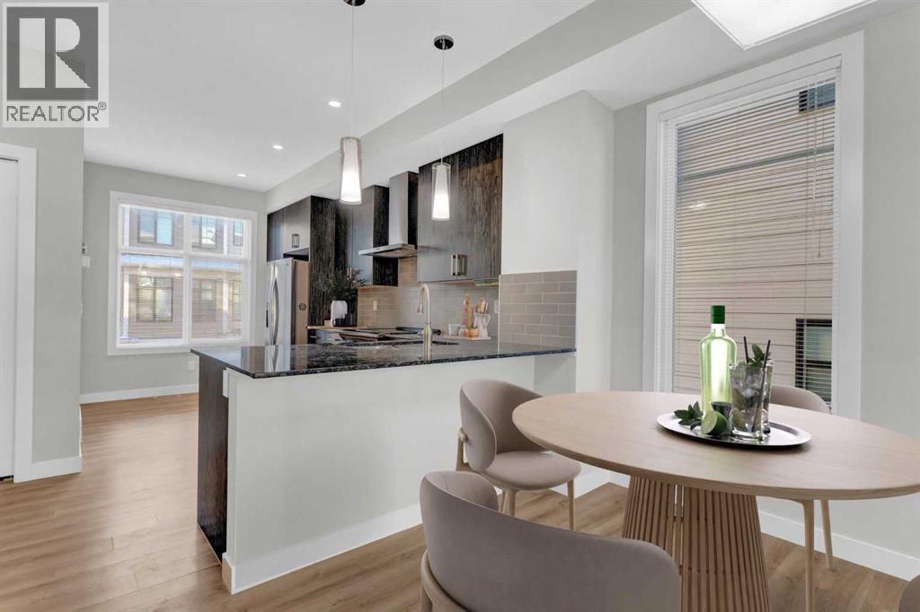END UNIT townhome with 3 BEDROOMS | 2.5 BATHS | DOUBLE ATTACHED TANDEM GARAGE | CENTRAL A/C | TONS OF HIGH END BUILDER UPGRADES | beautifully built by Trico Homes in Calgary’s urban district SETON! Combining functionality with modern luxury, be impressed the moment you set foot the open concept main floor with natural light illuminating through the many oversized windows at every turn, you can only find in an end unit. This flows perfectly into the exquisite kitchen boasting full height cabinets, stainless steel appliances with built-in microwave, quartz countertop and flush eating bar. It seamlessly blends into the cozy dining area and spacious a living room that leads to a balcony ready for BBQs. Main floor also features 9 ft ceiling height, knockdown texture, vinyl flooring that is durable and easy to clean. A half bathroom completes this level. The upper floor offers 3 generously sized bedrooms with the master suite featuring a large walk-in closet and full ensuite. Convenient laundry is also located on the upper floor. Parking will never be a problem, thanks to the double attached tandem garage that is perfect for keeping your car warm with lots of space for storage and a utility room. This unit also has plenty of street parking and close distance to visitors parking. Maintenance-free living in a well managed complex with low condo fee. This property is strategically located within walking distance to YMCA , The South Health Campus hospital, public library, JCS High School, Cineplex Cinema, banks, grocery stores, restaurants, bars, and a huge green space! Book your showing today and don’t miss out on the opportunity to own this beautifully upgraded end unit townhome! Some photos have been virtually staged to help visualize the space ** 3D VIRTUAL TOUR AVAILABLE** (id:51913)