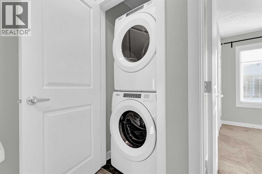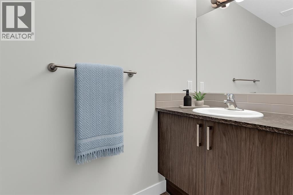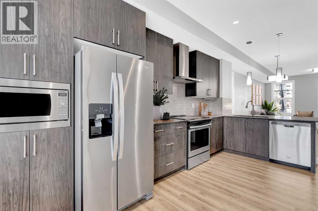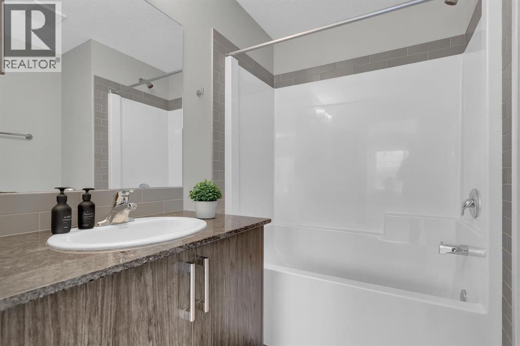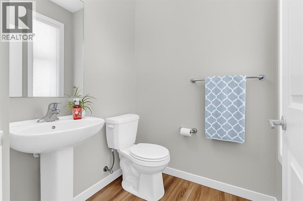 END UNIT townhome with 3 BEDROOMS | 2.5 BATHS | DOUBLE ATTACHED TANDEM GARAGE | CENTRAL A/C | TONS OF HIGH END BUILDER UPGRADES | beautifully built by Trico Homes in Calgary’s urban district SETON! Combining functionality with modern luxury, be impressed the moment you set foot the open concept main floor with natural light illuminating through the many oversized windows at every turn, you can only find in an end unit. This flows perfectly into the exquisite kitchen boasting full height cabinets, stainless steel appliances with built-in microwave, quartz countertop and flush eating bar. It seamlessly blends into the cozy dining area and spacious a living room that leads to a balcony ready for BBQs. Main floor also features 9 ft ceiling height, knockdown texture, vinyl flooring that is durable and easy to clean. A half bathroom completes this level. The upper floor offers 3 generously sized bedrooms with the master suite featuring a large walk-in closet and full ensuite. Convenient laundry is also located on the upper floor. Parking will never be a problem, thanks to the double attached tandem garage that is perfect for keeping your car warm with lots of space for storage and a utility room. This unit also has plenty of street parking and close distance to visitors parking. Maintenance-free living in a well managed complex with low condo fee. This property is strategically located within walking distance to YMCA , The South Health Campus hospital, public library, JCS High School, Cineplex Cinema, banks, grocery stores, restaurants, bars, and a huge green space! Book your showing today and don’t miss out on the opportunity to own this beautifully upgraded end unit townhome! Some photos have been virtually staged to help visualize the space ** 3D VIRTUAL TOUR AVAILABLE** (id:51913)