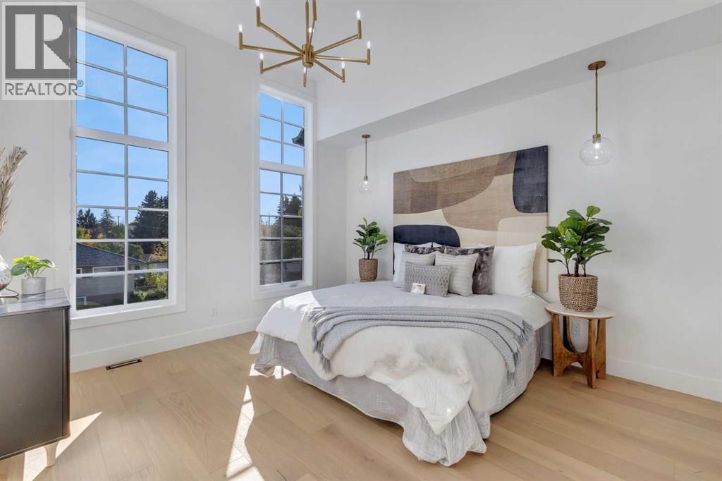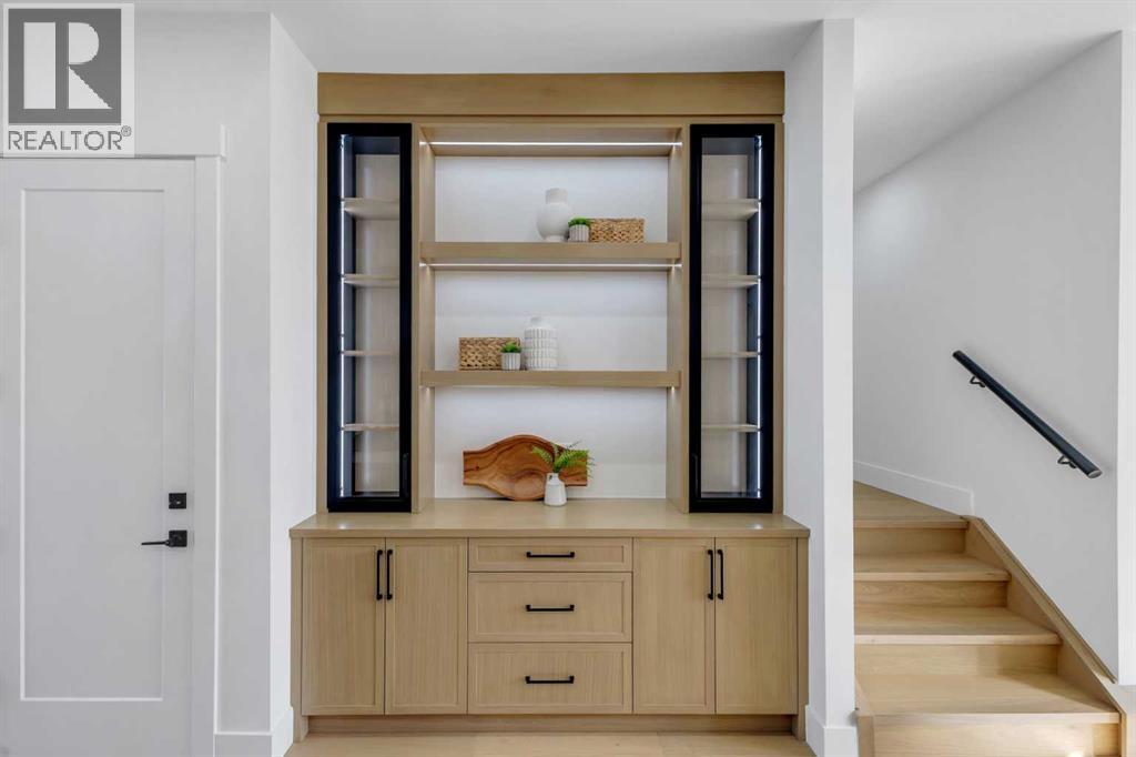 Don’t miss this stunning modern infill in the heart of ROSSCARROCK, designed with HIGH-END FINISHES, a WALKTHROUGH BUTLER’S PANTRY, and a RARE 3-BED, 2-BATH LEGAL LOWER SUITE (approved by the city). With a functional open-concept layout, upscale details, and a prime inner-city location, this home delivers a perfect blend of style and practicality. The spacious foyer welcomes you inside with direct access to the formal dining area, bathed in natural light from oversized windows, making it an ideal space for hosting gatherings or enjoying everyday meals. A walkthrough butler’s pantry seamlessly connects the dining room to the chef’s kitchen, offering custom cabinetry, a beverage fridge, a sink, and additional storage—perfect for entertaining and meal prep. The kitchen itself is a showstopper, featuring ceiling-height cabinetry, quartz counters, a full-height backsplash, and a large central island with bar seating. A stainless-steel appliance package includes a French door fridge, gas cooktop, wall oven, microwave, and dishwasher, ensuring both function and style. More storage is offered by the eye-catching coffee station or wine area, enhanced with LED lighting and glass displays. A main floor home office off the kitchen adds even more convenience for a work-from-home set up. The bright and open living room is designed for comfort and elegance, featuring an inset gas fireplace with a full-height tile surround with built-in cabinetry, and sliding patio doors taking you out to the rear deck. The rear mudroom helps keep daily essentials organized, and an upscale powder room completes the main level. Upstairs, the primary suite is a true retreat with vaulted ceilings, expansive windows, and a spacious walk-in closet. The spa-like 5-pc ensuite is designed for relaxation, featuring heated tile floors, dual sinks, a freestanding soaker tub, and a walk-in shower with full-height tile surround. Two additional secondary bedrooms share a well-appointed 4-pc bath, while a nook on the landing provides the perfect study space and a full laundry room with extra storage ensures everyday convenience. The legal lower suite (approved by the city) is a standout feature, offering a private side entrance and modern finishes as the rest of the home. With 9-ft ceilings, engineered hardwood floors, 2 FULL BATHS AND 3 FULL BEDS, this suite is ideal for tenants, extended family, or additional living space! The 4-pc baths feature tub/shower combos with full-height tile surrounds. The open-concept kitchen and living area include quartz counters, custom cabinetry, a full-size fridge, electric range, and separate laundry. Rosscarrock is a vibrant inner-city neighborhood, offering quick access to downtown via Bow Trail, transit options like Westbrook C-Train Station, and fantastic shopping and dining at Westbrook Mall, 17th Ave, and Killarney. Outdoor lovers will appreciate Edworthy Park, Douglas Fir Trail, and Shaganappi Point Golf Course, plus top-rated schools just minutes away! (id:51913)
