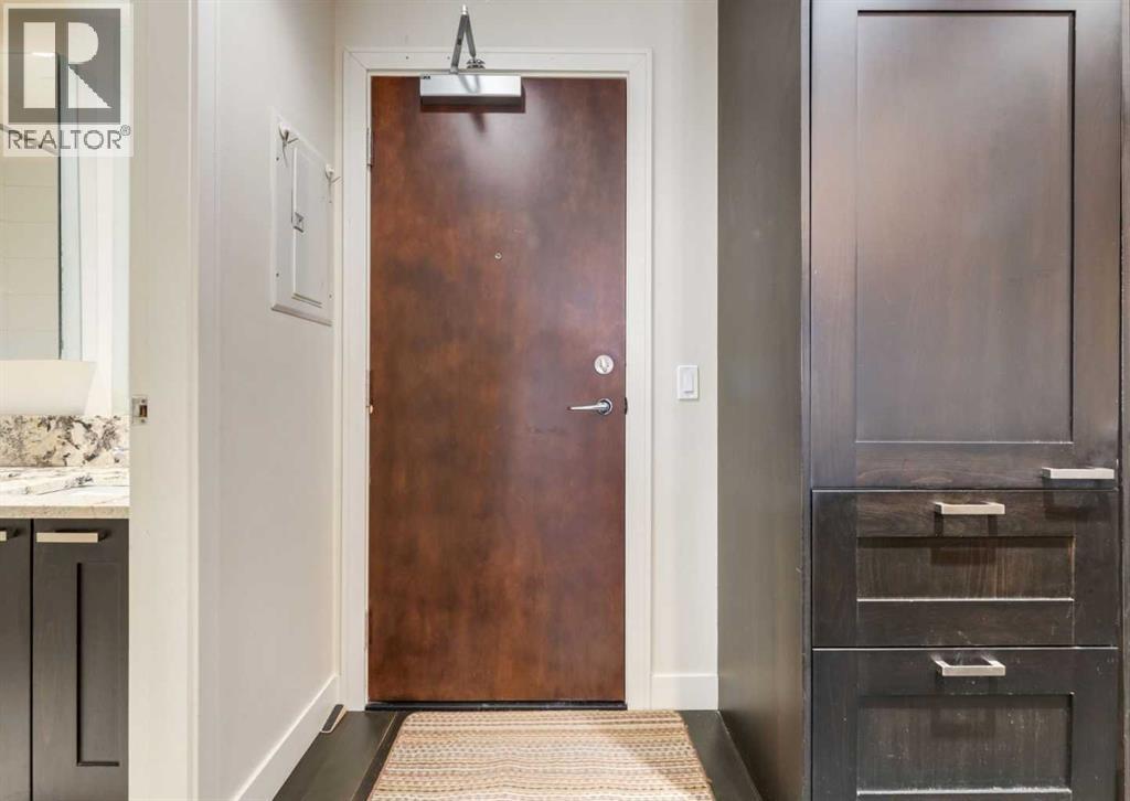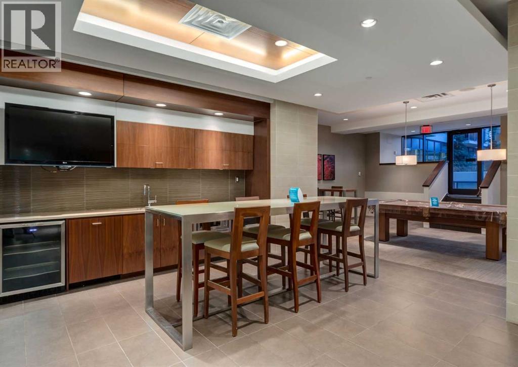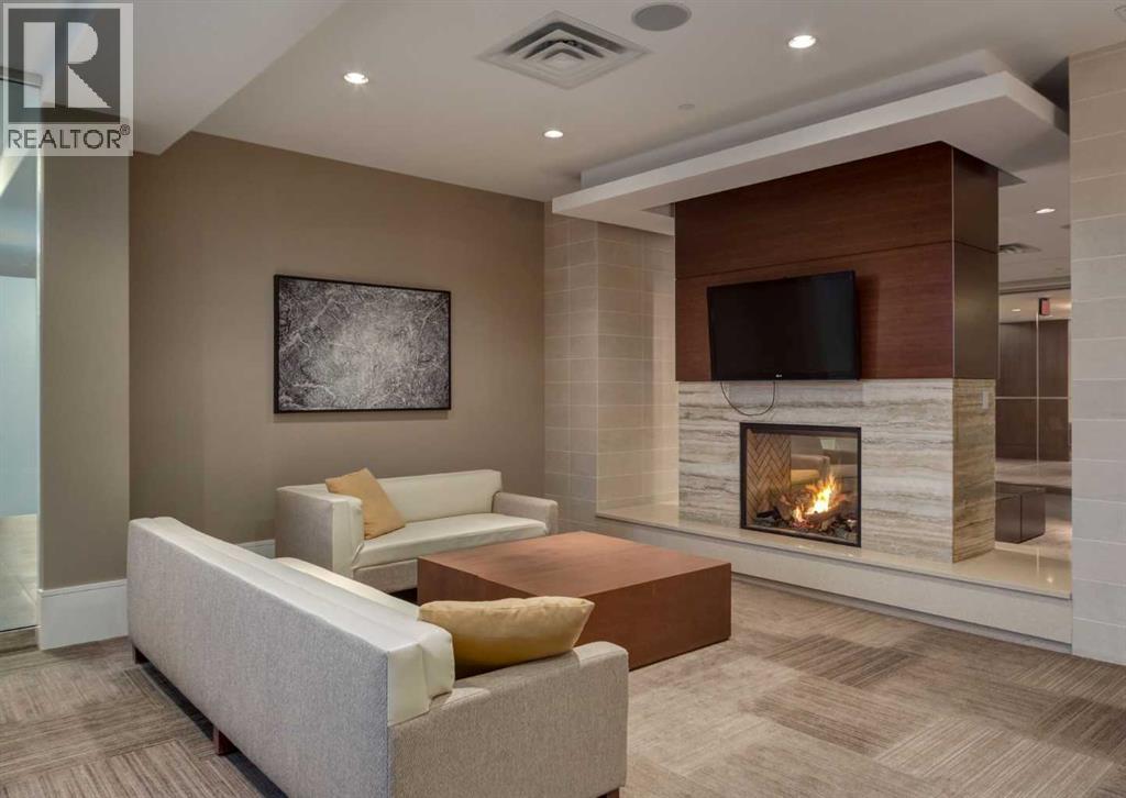 Welcome to Waterfront! Situated just steps away from Princes Island Park, Bow River pathways, Chinatown and minutes from the downtown core, restaurants, shopping and much more. This 1 bedroom + den end unit condo features just under 9ft ceilings, hardwood, tile and carpet flooring. A beautiful kitchen with quartz countertops, stainless steel appliances including built in Sub-zero fridge, gas stove and plenty of cabinet space. Open concept floorplan with a dining room and large living room with gas fireplace and access to a private balcony with views on the Bow River. Large primary bedroom, full 4pc bathroom, great sized den, in suite laundry and central A/C. Two side by side assigned underground parking stalls and a private storage locker on the same floor as the unit. This building has a wide range of amenities including a fitness centre, yoga studio, theatre room, hot tub, party room with a pool table, a 7th floor outdoor courtyard, guest suite, concierge service, secured guest parking and security. Don’t miss out on this opportunity. Make you private showing today. (id:51913)