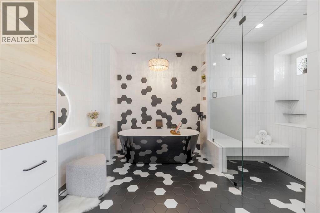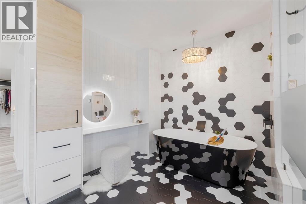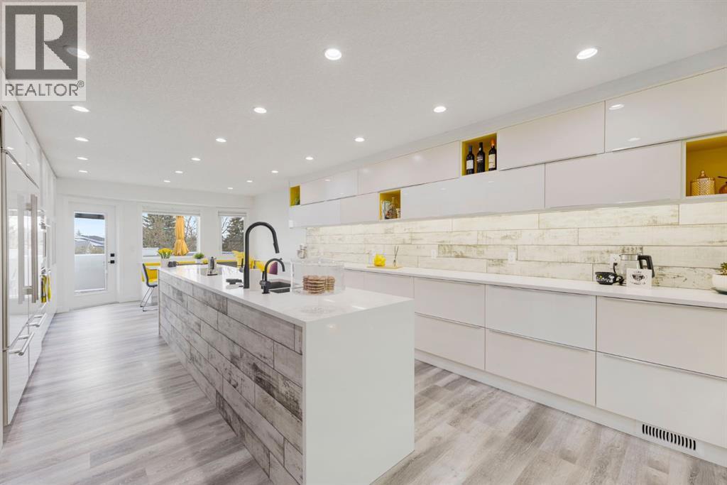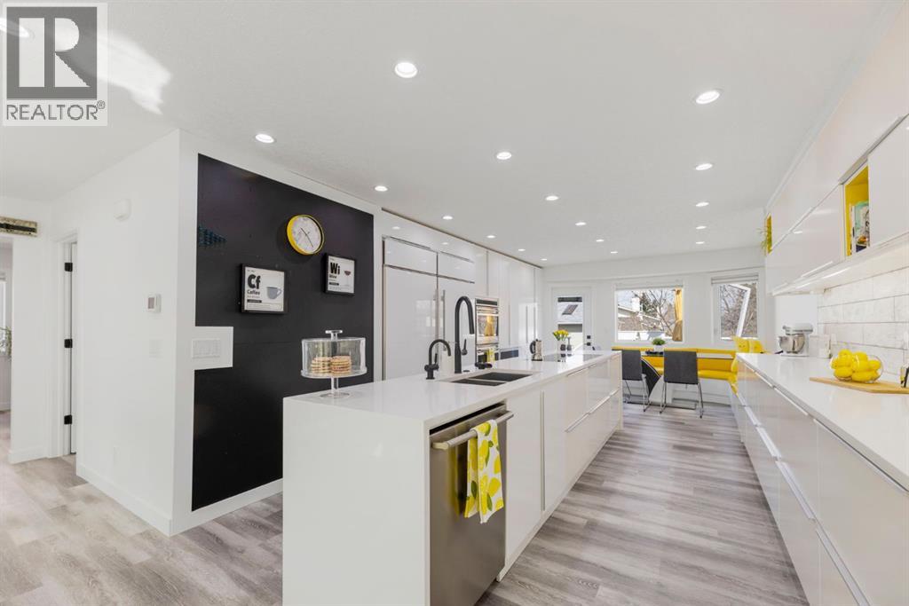 Step into one of Millrise’s most distinctive residences, designed for those who appreciate elevated living without the chaos. This extensively upgraded bi-level blends modern elegance with thoughtful functionality, offering the perfect retreat for busy professionals, empty nesters or couples with adolescent children. From the moment you step inside, soaring ceilings and an abundance of natural light greet you, highlighting the bright, open living room framed by west-facing windows. Modern chef’s kitchen awaits, featuring plenty of sleek cabinetry and two Sub-Zero refrigerators. Some notable kitchen features are pop-up electrical outlets, a built-in glass washer, downdraft range hood and a touch-sensor faucet. Built-in bench seating provides a stylish dining space with convenient access to the outdoor deck for effortless indoor-outdoor entertaining. This level also features a beautifully updated full bathroom for added convenience. Hidden behind the show piece barn door is your primary retreat. Designed for true relaxation, it offers a dream walk-in closet, versatile nook and a spacious bedroom easily accommodating a king-size bed. The opulent ensuite bathroom is a masterpiece, showcasing intricate tile work, a deep soaker tub, and a steam shower equipped with a heated bench, wall, and flooring. A floating vanity and LED mirror complete this spa-like oasis. French doors open directly onto the outdoor deck, blending indoor luxury with outdoor serenity. The fully finished lower level offers two additional large bedrooms, a dry bar, a cozy nook, ideal for an office, gaming/reading area, and a spacious recreation room, complete with an electric fireplace for added ambiance. A full bathroom with heated floors and a beautifully designed laundry room with abundant cabinetry, a sink, and heated floors ensure ultimate comfort and functionality. Storage will never be an issue, thanks to a generous crawlspace. Additional features that elevate this home include tripl e-pane vinyl windows, pot lights throughout, a hot water on demand system, water filtration, and a double attached, insulated, and heated garage, ensure year-round comfort and convenience. Step outside to an expansive backyard, perfectly designed for both relaxation and entertainment. A large deck invites gatherings under the stars, while a designated dog run and green space within the fully fenced yard offer room for every member of the family. For added convenience, there is also plenty of storage space located directly beneath the deck. Located in vibrant Millrise, steps from Fish Creek Park, trails, and the C-Train, this home delivers sophistication with suburban serenity. (id:51913)