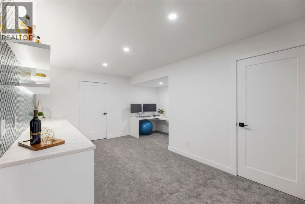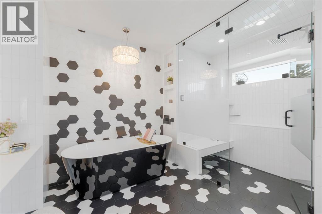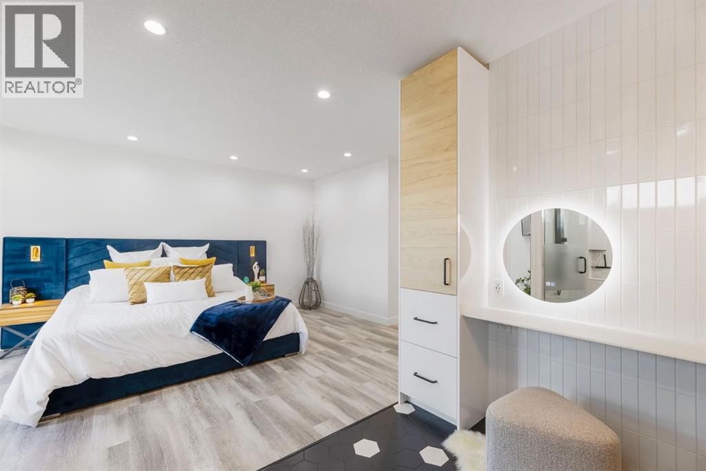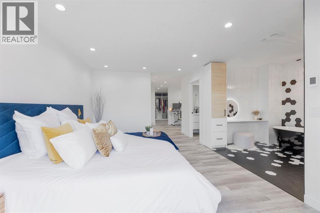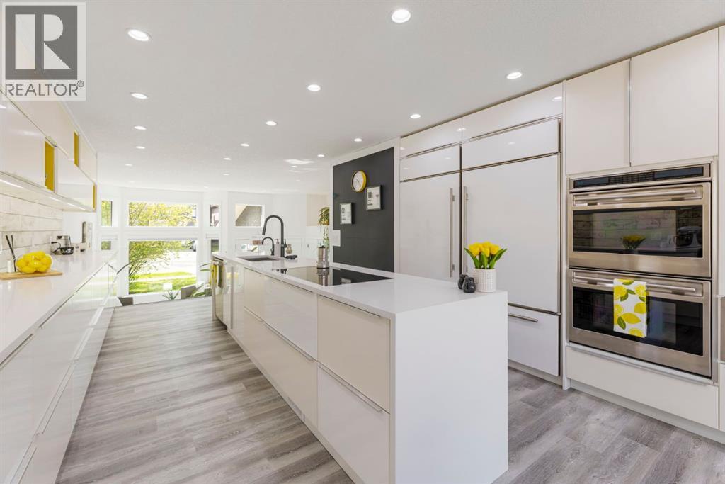 Step into one of Millrise’s most distinctive residences, designed for those who appreciate elevated living without the chaos. This extensively upgraded bi-level blends modern elegance with thoughtful functionality, offering the perfect retreat for busy professionals, empty nesters or couples with adolescent children. From the moment you step inside, soaring ceilings and an abundance of natural light greet you, highlighting the bright, open living room framed by west-facing windows. Modern chef’s kitchen awaits, featuring plenty of sleek cabinetry and two Sub-Zero refrigerators. Some notable kitchen features are pop-up electrical outlets, a built-in glass washer, downdraft range hood and a touch-sensor faucet. Built-in bench seating provides a stylish dining space with convenient access to the outdoor deck for effortless indoor-outdoor entertaining. This level also features a beautifully updated full bathroom for added convenience. Hidden behind the show piece barn door is your primary retreat. Designed for true relaxation, it offers a dream walk-in closet, versatile nook and a spacious bedroom easily accommodating a king-size bed. The opulent ensuite bathroom is a masterpiece, showcasing intricate tile work, a deep soaker tub, and a steam shower equipped with a heated bench, wall, and flooring. A floating vanity and LED mirror complete this spa-like oasis. French doors open directly onto the outdoor deck, blending indoor luxury with outdoor serenity. The fully finished lower level offers two additional large bedrooms, a dry bar, a cozy nook, ideal for an office, gaming/reading area, and a spacious recreation room, complete with an electric fireplace for added ambiance. A full bathroom with heated floors and a beautifully designed laundry room with abundant cabinetry, a sink, and heated floors ensure ultimate comfort and functionality. Storage will never be an issue, thanks to a generous crawlspace. Additional features that elevate this home include tripl e-pane vinyl windows, pot lights throughout, a hot water on demand system, water filtration, and a double attached, insulated, and heated garage, ensure year-round comfort and convenience. Step outside to an expansive backyard, perfectly designed for both relaxation and entertainment. A large deck invites gatherings under the stars, while a designated dog run and green space within the fully fenced yard offer room for every member of the family. For added convenience, there is also plenty of storage space located directly beneath the deck. Located in vibrant Millrise, steps from Fish Creek Park, trails, and the C-Train, this home delivers sophistication with suburban serenity. (id:51913)