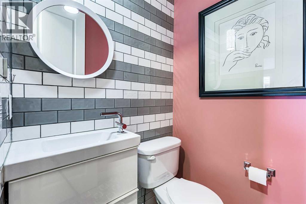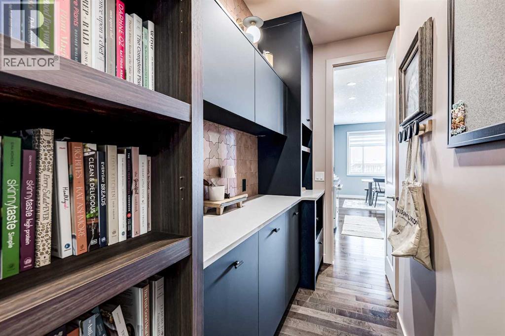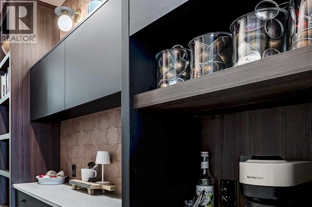 This exceptional, one-of-a-kind home features a fully custom mid-century modern renovation by kitchen designer Denca, showcasing a showpiece kitchen, walkthrough pantry, incredible millwork, and thoughtful design throughout. Oversized front door and 9-foot foyer ceilings set the tone for the bright, open interior. The custom kitchen boasts a leathered granite island, floor-to-ceiling cabinetry with pull-outs and custom inserts, quartz countertops and backsplash, open shelving with under-cabinet lighting, and top-of-the-line appliances including a Wolf induction range and Miele dishwasher. Designer lighting and elegant sconces complete the space.Adjacent is a casual dining area with a built-in credenza and abundant storage. The walkthrough pantry features a hidden spice rack, coffee bar, functional shelving, and a striking terra cotta tiled wall. Hardwood floors flow into the living room with a full-height metal-clad fireplace. A flexible front room can serve as a formal dining area, sitting room, or office, while the boutique-hotel-inspired powder room impresses with elevated finishes.The main level also includes a practical laundry and mudroom with stone counters, custom closets, and detailed tile work. Upstairs, a vaulted bonus room with custom wall units is perfect for family gatherings. The primary suite offers custom woodwork, a spa-like ensuite with soaker tub, 10mm glass shower, and a California Closets walk-in. Two additional bedrooms with custom closets and a full bathroom complete the upper level.Enjoy complete privacy with no rear neighbors in the landscaped backyard featuring an aggregate patio, rundle stone accents, grass, mature trees, and low-maintenance perennials. Exterior finishes include elegant stucco and stone, plus holiday-ready Gemstone lighting. Additional features: on-demand hot water, maintained furnace, water softener, central vacuum, and a basement ready for development with large windows and a bathroom rough-in. Meticulously cared- for by the original owners, on a quiet street, walking distance to schools and near shopping, this home offers exceptional craftsmanship and design unlike any other. (id:51913)