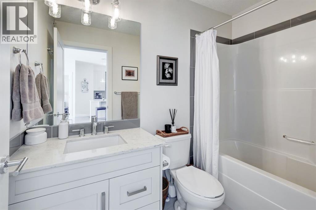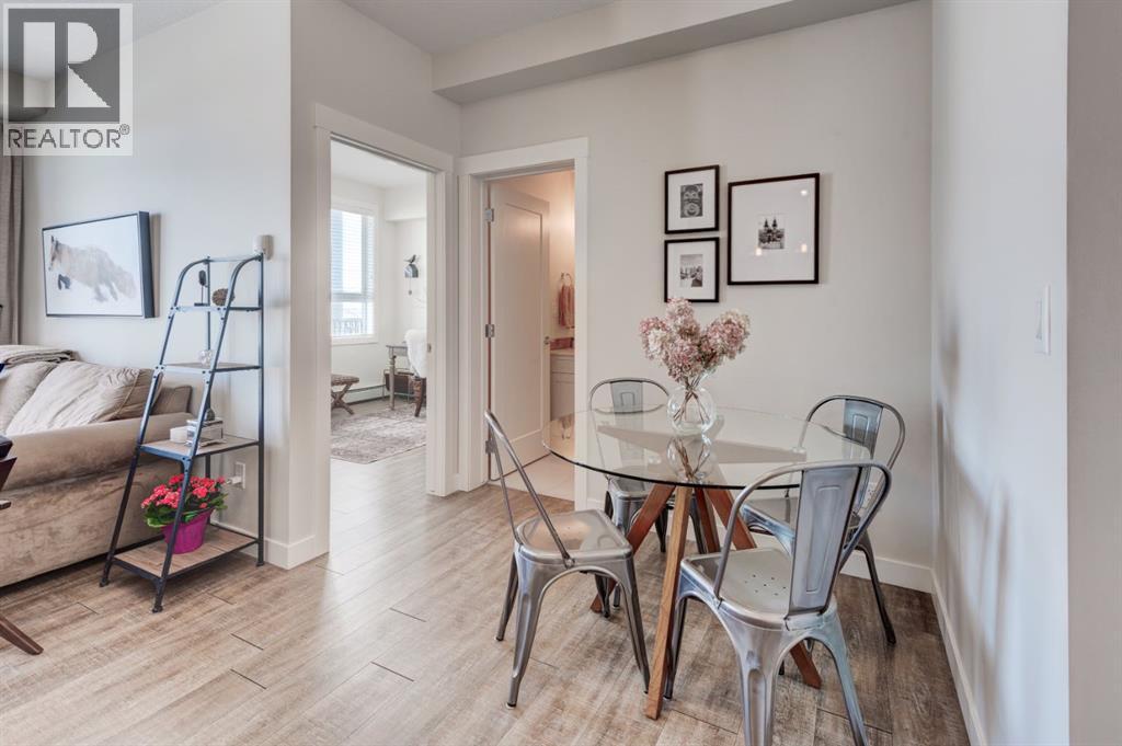 Located in the vibrant, walkable community of Walden, this beautiful top-floor 2-bedroom 763 sq.ft. apartment offers an exceptional combination of privacy, natural light, and stunning views! Enjoy unobstructed views of the park, pond, and pathways, which create a peaceful backdrop that can be appreciated from the comfort of home. As a top-floor residence with a concrete subfloor and only one shared wall, this home provides a remarkably quiet living experience rarely found in apartment living. Inside, the bright and open layout is filled with natural light from large windows throughout the living area and both bedrooms. The living area features a large sliding window with transom, perfectly framing the views while allowing sunlight to pour in throughout the day, and opens onto a spacious balcony ideal for relaxing or entertaining while enjoying the scenery. Rich, warm luxury vinyl plank flooring is complemented by painted shaker cabinetry, upgraded lighting, and approximately $15,000 in thoughtful upgrades that elevate both style and function. The kitchen is designed with everyday convenience in mind, featuring quartz countertops, a large island, built-in microwave, under-mount sink, a corner pantry, and a large French-door refrigerator. This well-designed home offers two bedrooms, including a bright primary retreat with upgraded closet organizers and a walkthrough closet leading to a private 3-piece ensuite with a wide shower. A full 4-piece main bathroom serves the second bedroom and guests. Additional convenience includes a titled underground parking stall, providing secure parking and easy year-round access. Residents enjoy a highly walkable neighbourhood with a variety of shopping and dining options just steps away, while Fish Creek Provincial Park, the Bow River, and nearby golf are just a short distance for your outdoor recreational needs. With quick access to Macleod Trail and Stoney Trail, commuting around the city is simple and efficient. This is a rare opp ortunity to enjoy top-floor living with stunning views, exceptional privacy, a welcoming balcony, and stylish, move-in ready finishes in this bright, quiet home. (id:51913)
