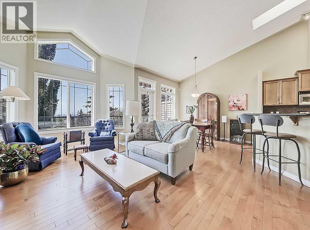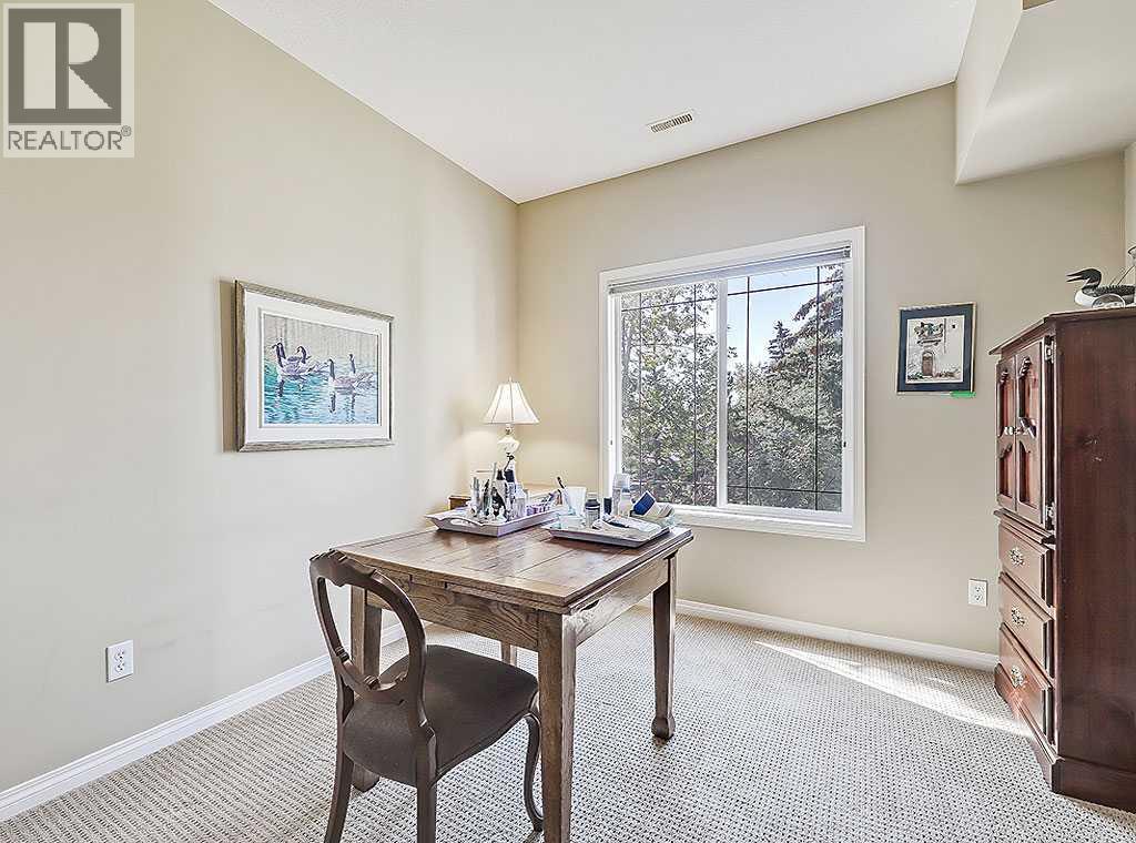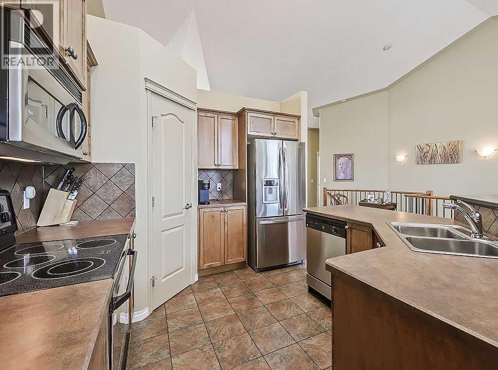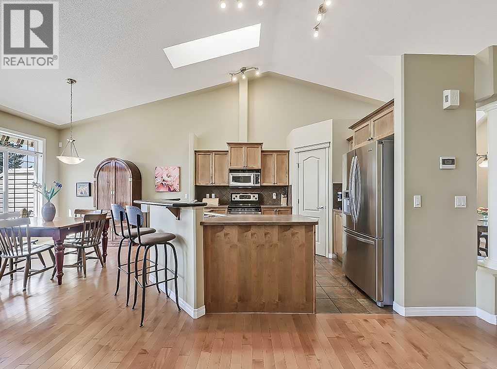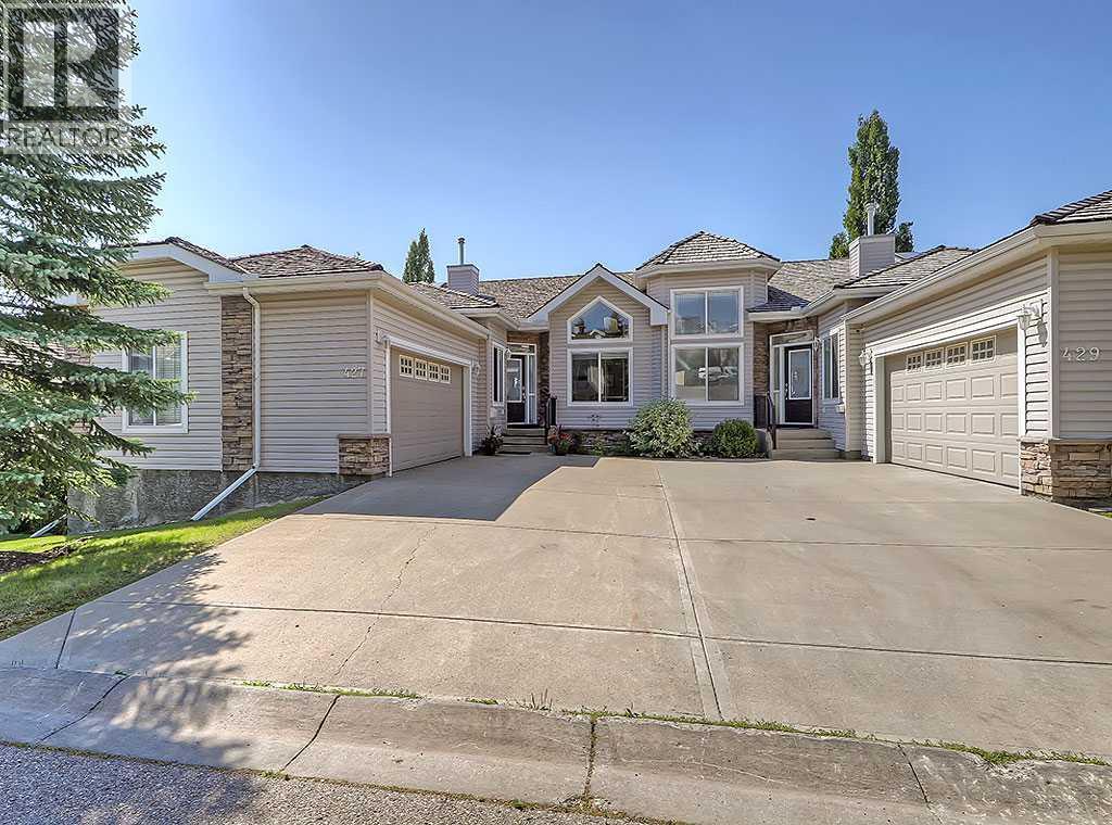 Welcome to Rocky Ridge! Available for the first time since being purchased new in 2004, this gorgeous Villa is a rare offering that features everything you’ve been looking for; Mountain Views, Vaulted Ceilings, fully finished WALK-OUT basement, Double-Garage, a REAL dining room, Air-Conditioning, & all in a quality built BUNGALOW found within one of the most sought-after NW communities. Walking inside you may find it hard to believe that this property isn’t new, as it’s been so lovingly cared for & maintained by the current owner. Gleaming hardwood floors welcome you as you make your way inside, reflecting the outside light & offering just a glimpse of what’s to come. Immediately to your right, a formal dining room awaits, with enough room to host a large family & fill the home with laughter that comes with it. Continuing on, your eyes are instantly drawn to the high pitches of the vaulted ceilings, then to the huge windows & the expansive panoramic views beyond them to the south & west. This open-concept living room & kitchen is so completely filled with natural light from the sunny south exposure & additional skylights above, you’ll rarely need to turn on a lamp before the sun goes down. The central kitchen features an island with sink & eating bar for room for two to sit, along with a closed pantry & a suite of stainless appliances. It overlooks the living room & breakfast nook, allowing the conversations to flow no matter where you or your guests are. A cozy fireplace completes this perfect setting & (almost) makes you excited for that next big snowfall. Step outside onto the deck & bask in that full day of sunlight, but if it becomes too much, the awning provides relief when needed. The primary bedroom is found off the living room, featuring more of those vaulted ceilings & with its own views to the SW. A luxurious 5-pc ensuite bathroom awaits, also featuring it's own skylight. Back near the front of the home, a 2nd bedroom is found & could easily be a fle xible space used as a den or office. A 2pc bathroom is tucked away discretely before the laundry room that gives access to the garage. Take the stairs to the lower walk-out level & you won’t believe how much space you’ll find! First an expansive second living room, w/additional fireplace & plenty of room for all types of furniture/games/pool table or gym equipment. This level makes for an ideal place for guests or long term visitors with TWO additional bedrooms, one of which being an impressive 18 1/2 x 16’ size & an additional full 4pc bathroom.Living in this complex means you also get access to the Manor Village building across the street & its many amenities, including a gymnasium, games & movie rooms, and outside you’ll find tennis courts,& half basketball court. Across the street you’ll love taking a stroll around the neighbourhood pond! Only a 5 minute walk to the Tuscany LRT station, & 2 min drive to the YMCA & Royal Oak Shopping centres. Must be seen in person! (id:51913)