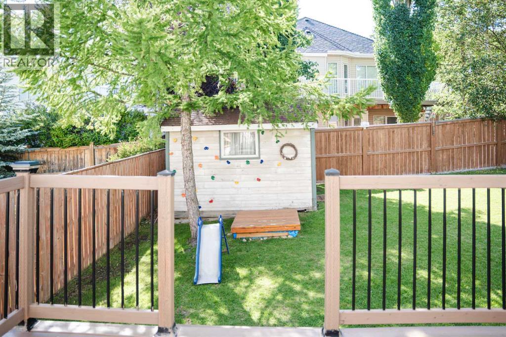 Rare 4-Level Split in Rocky Ridge and Royal Oak – Over 2,250 sq. ft. of living space! This beautifully maintained home with double attached garage is perfectly situated at the end of a quiet cul-de-sac with a park and green space right across the street. This home is within walking distance to the Tuscany LRT station and the Rocky Ridge Ranch House with its activity rooms, children’s pool, tennis and basketball courts. The main floor is bright and inviting with hardwood floors, vaulted ceilings, and large windows that flood the living and dining areas with natural light. The kitchen features a 10' ceiling, stainless steel appliances, an oversized pantry, and a sunny eating nook overlooking the 3rd level. The 3rd level offers a cozy family room with a corner fireplace, a 3rd bedroom, and a full bathroom. Upstairs, you’ll find two spacious bedrooms, each with its own bathroom, including the primary suite with walk-in closet and private ensuite. The fully finished basement includes a large rec room, office space, laundry, and ample storage. Outside, enjoy a large west-facing backyard with a deck and storage shed. Recent updates include triple-pane windows, hot water tank, and refreshed bathrooms with new vanities, toilets, and vinyl plank flooring. This is a fantastic family home in a great location with wonderful neighbors — a true gem in the border of Rocky Ridge and Royal Oak! (id:51913)