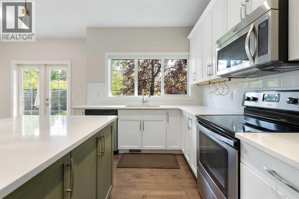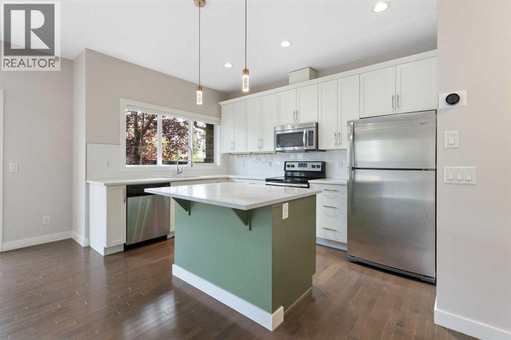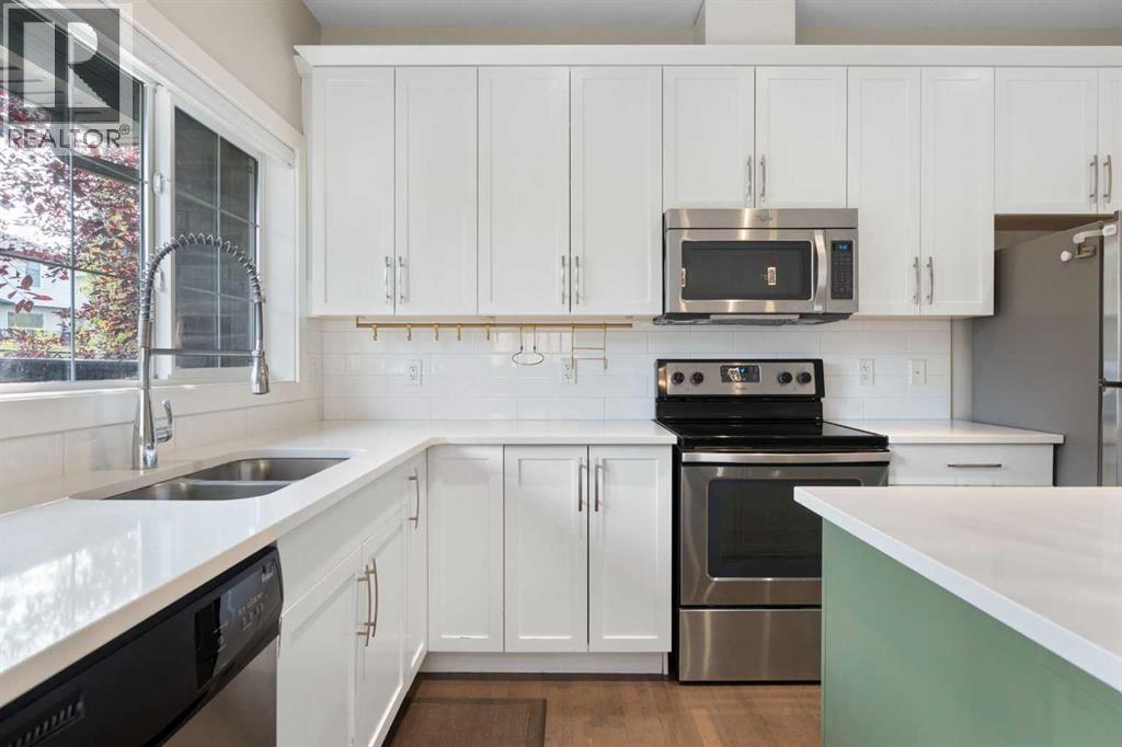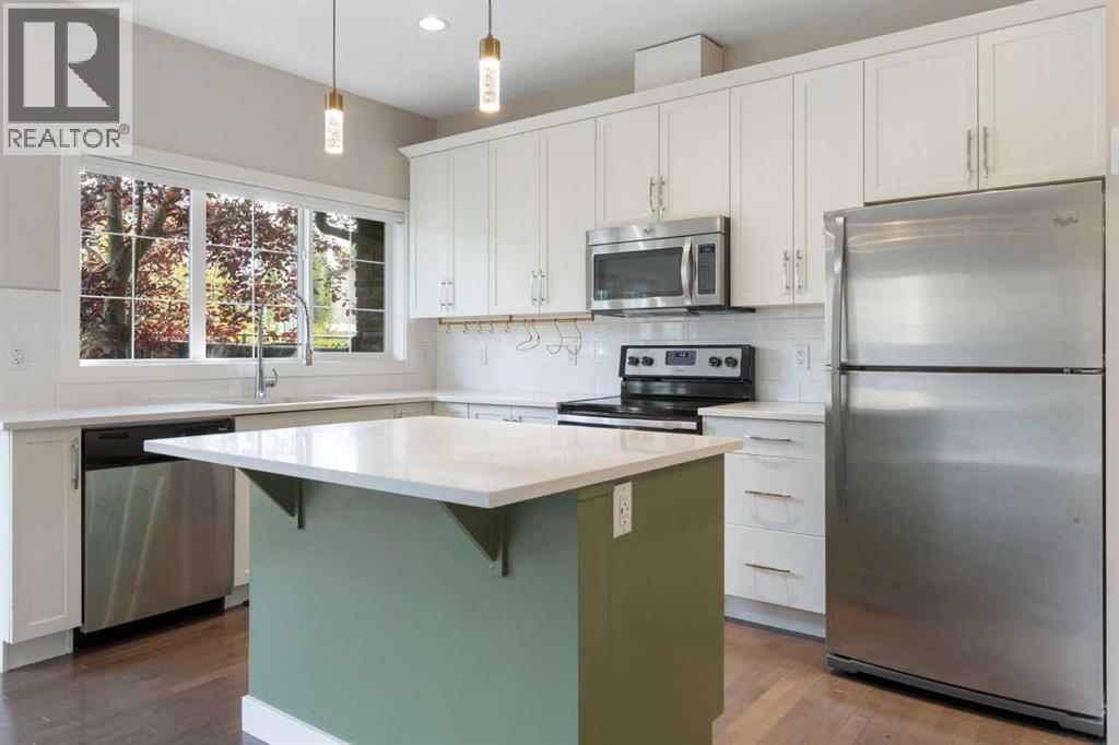 Welcome to this stylish townhome in the desirable community of Quarry Park. Set within a thoughtfully designed complex, this home blends comfort, convenience, and modern living. The main floor offers an attached garage and an open-concept living, dining, and kitchen area that connects seamlessly to a sunny, south-facing fenced backyard — perfect for entertaining or relaxing.Upstairs, the primary suite features a walk-in closet and private 3-piece ensuite, joined by two additional bedrooms, a full 4-piece bath, and convenient upper-level laundry, all enhanced with custom built-ins.The fully finished basement extends your living space with a spacious recreation room with built-ins and another full bath, ideal for gatherings, a media room, or a home office. Central A/C provides year-round comfort.Located just steps from playgrounds, parks, and trails, this Quarry Park gem offers the perfect mix of style, function, and an unbeatable location. (id:51913)