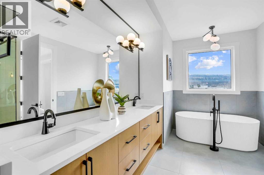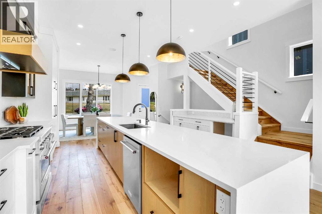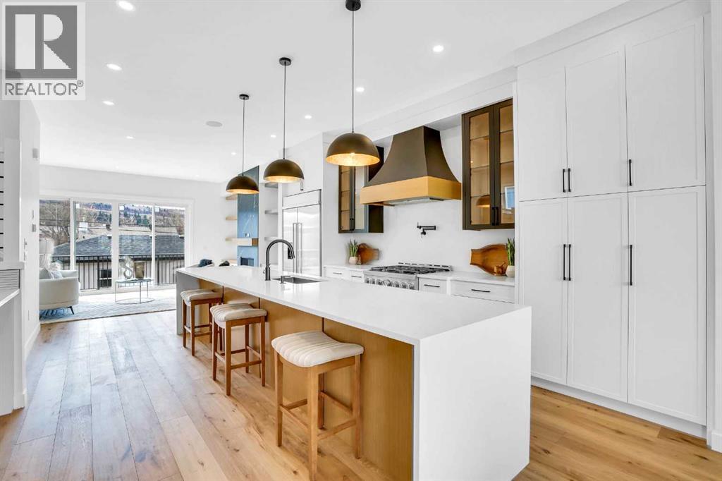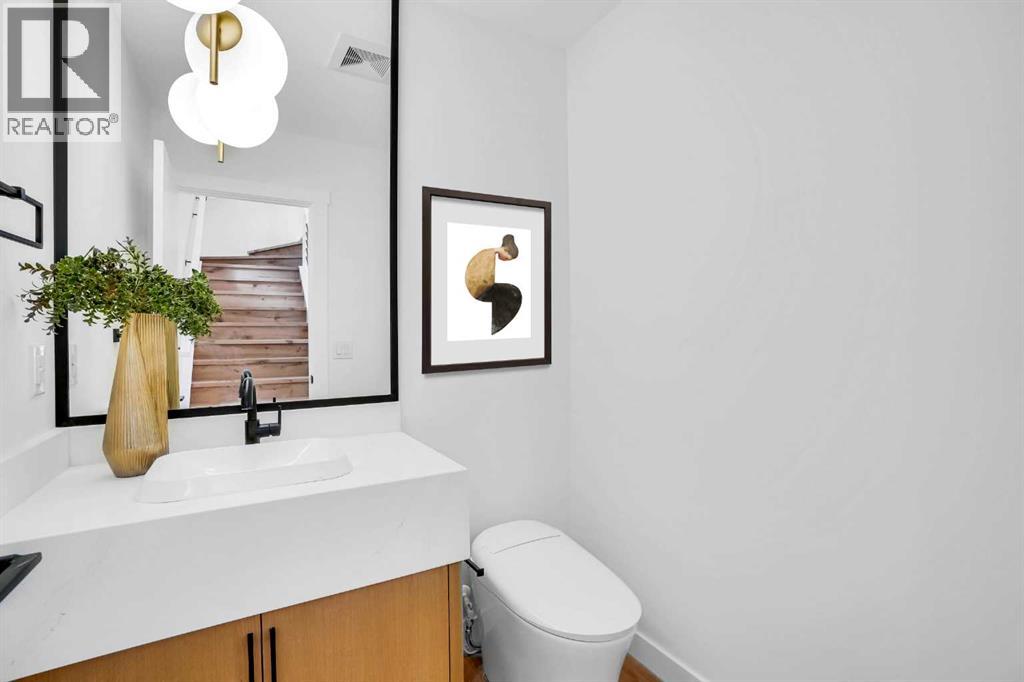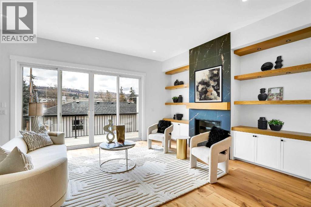 This BRAND NEW, MOVE-IN READY infill in MONTGOMERY checks all the boxes for stylish, functional inner-city living—with the added bonus of a fully private 1-BED WALKOUT SUITE (approved with permits and subject to final inspection). Whether you're looking for extra income, space for guests, or a little more flexibility in your day-to-day, this one delivers. Step inside to a bright, welcoming foyer with a full coat closet—simple, clean, and easy to come home to. At the front of the home, the dining area offers space for a full-size table and flows naturally into the heart of the home: the kitchen. The kitchen brings a timeless feel with classic SHAKER-STYLE CABINETS, a custom-built hood fan with oak accents, glass display shelves with LED lighting, and a quartz-topped island with waterfall edges. You’ll also find an upgraded KITCHENAID APPLIANCE PACKAGE, including a gas range with pot filler and a large KitchenAid French door fridge. There’s also a convenient coffee or beverage station, complete with room for a beverage fridge. The living room is warm and elevated, featuring an INSET GAS FIREPLACE with full-height tile surround and built-in display shelving with closed cabinetry for extra storage. Natural light pours in through large rear sliders, leading out to the sunny SOUTHWEST-facing back deck with privacy screens already installed. Off the rear entry, the mudroom includes built-in shelving, a bench, and cubbies, with access to the powder room—private, polished, and finished with a skirted quartz counter and decorative framed mirror. Upstairs, the primary suite is a calm retreat with a tray ceiling, spacious walk-in closet, and a stunning ensuite that includes a freestanding soaker tub, walk-in shower with DUAL RAIN HEADS, and double vanity. Two more bedrooms, a full bath with attractive STACKED HORIZONTAL TILE, and a laundry room with designer tile flooring complete the upper level. Downstairs, the WALKOUT SUITE (approved, subject to final inspection) is bright, smartly designed, and full of quality finishes. The living room has a BUILT-IN FLOATING MEDIA CENTRE, and the full kitchen mirrors the same modern style as upstairs, with warm oak flat panel cabinetry and quartz countertop. There’s a full bathroom, stacked laundry, and a large bedroom with walk-in closet—plus its own separate entry for total independence. Set just off Home Road, this location offers easy access to main routes like 16th Ave and Memorial Drive while keeping you steps from nature. Walk to Shouldice Park, Bowmont Park, and the Bow River Pathway system for daily runs, dog walks, or weekend bike rides. You're minutes from Montalcino Ristorante, NOtaBLE, and lots of local coffee shops, restaurants, and bars for food and coffee favoUrites. Groceries, schools, Market Mall, U of C, and Foothills Hospital are all close by, making this one of Calgary’s most livable and up-and-coming inner-city communities. Photos and Room Size are from Showsuite. Call today to view! (id:51913)
