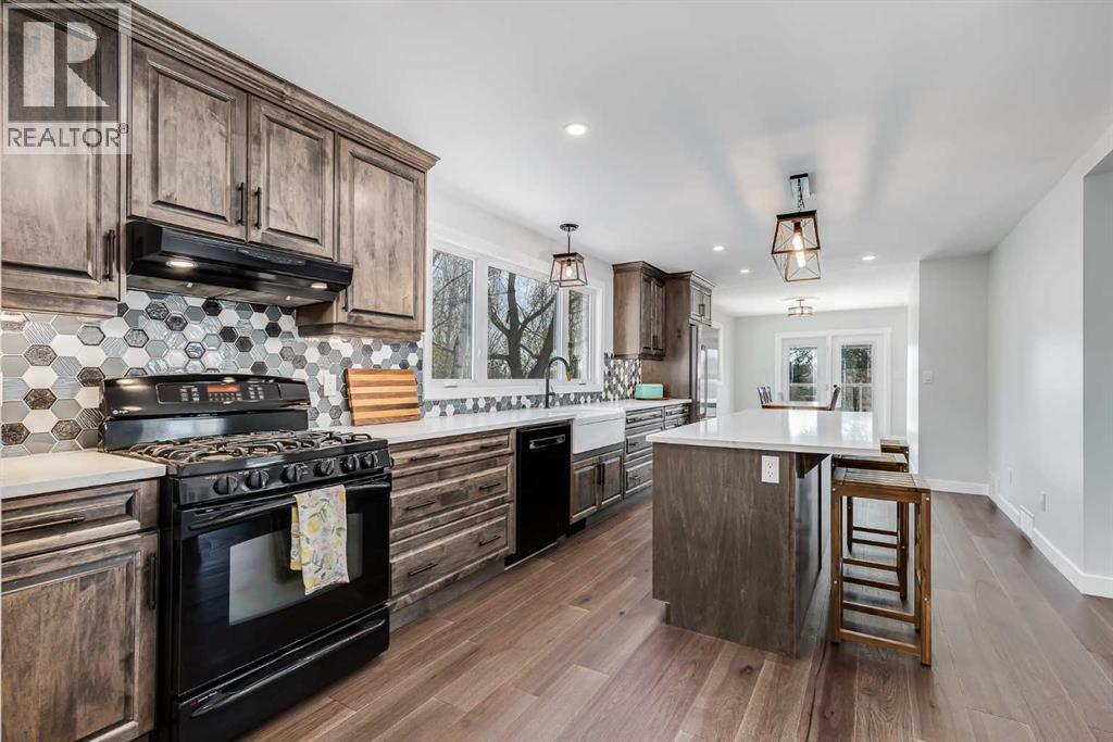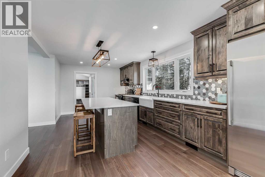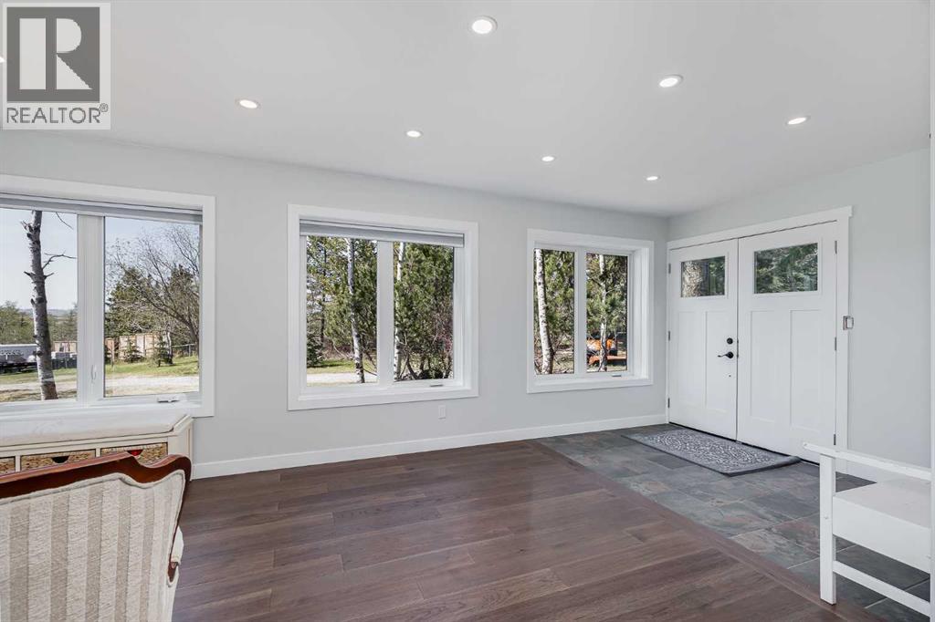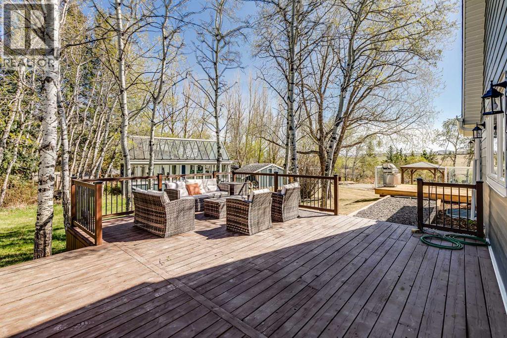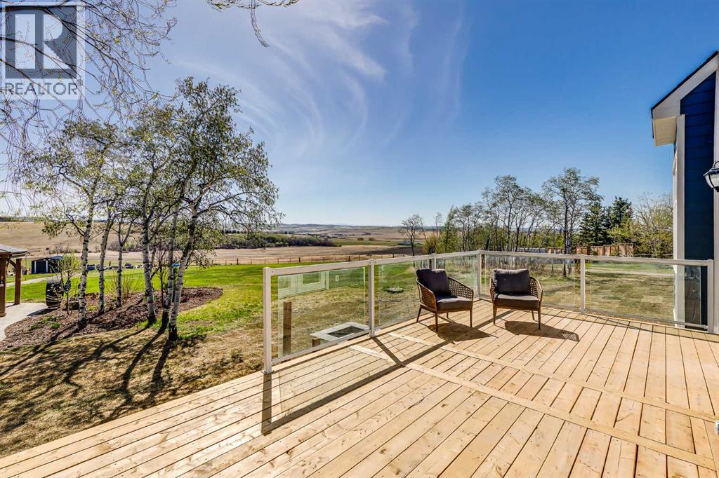 Welcome to your private slice of heaven in De Winton. This beautifully renovated 5-bedroom, 2.5-bathroom home with over 3100 square feet of developed living space is nestled on 2 acres in a quiet cul-de-sac. With unobstructed mountain views, total privacy and just a short drive from Calgary, this stunning property offers the best of rural serenity with urban convenience. Curb appeal is undeniable, featuring professional landscaping, Hardie Board siding, new shingles, upgraded soffits and eaves, and meticulously designed pavers all framed by a gated and fully fenced perimeter. Over $100,000 in landscaping, new decks and patios, and thoughtful exterior lighting make this home shine from every angle. Step inside to a spacious foyer and sitting area where engineered hardwood flooring immediately sets a tone of quality. From there, the home opens into a massive living room with panoramic windows showcasing the rolling countryside and distant mountain peaks. The space flows effortlessly into the fully updated kitchen, featuring ceiling-height maple cabinetry, quartz counters, and sleek modern lighting. The adjoining dining area leads directly onto a large back deck, perfect for morning coffee or evening gatherings. The mudroom offers custom cabinetry designed to keep boots, coats, and everyday essentials organized. From here, you have access to both the heated, insulated triple-car garage and a large side deck, making it a perfect entry point for busy households and outdoor enjoyment. The entire home has been transformed with all-new windows, interior doors, and light fixtures, offering a fresh and contemporary feel throughout. The upper levels are split for privacy and function. One level up features a large bedroom, while the next includes the master, an expansive bedroom with beautiful views, plus another well sized bedroom and a full bath. One level below the main is a cozy, private bedroom with a large closet, ideal for kids, guests or a home office. The walkout ba sement is made for entertaining, with a spacious rec room that opens onto a renovated patio. Down here, you’ll also find a fifth bedroom, laundry area, and an oversized crawl space perfect for storage. Outside, enjoy two massive decks, a gas outlet for your BBQ, a greenhouse, three large storage sheds, and a charming gazebo, all thoughtfully arranged for both beauty and utility. Water is supplied through a Co-Op system, so no need to maintain your own well. This home offers privacy, peace, and pride of ownership at every turn, with close proximity to schools, shopping, major traffic routes, and only minutes from Strathcona-Tweedsmuir School. You truly have to experience it to believe it. Book your private viewing today! Please do not enter yard without an appointment. (id:51913)