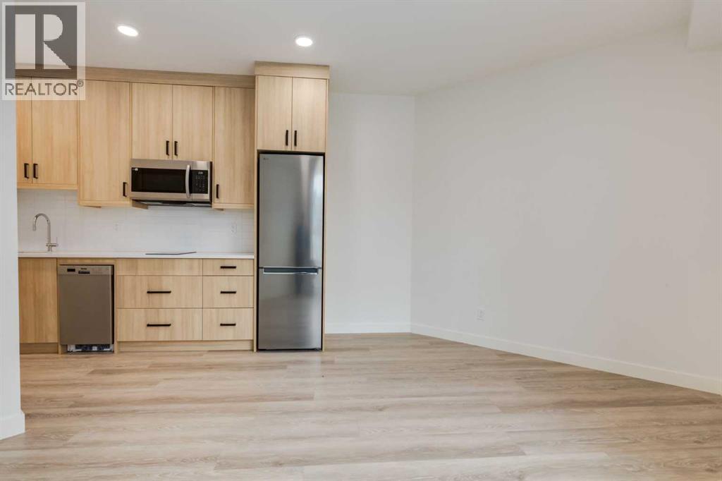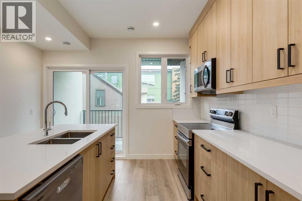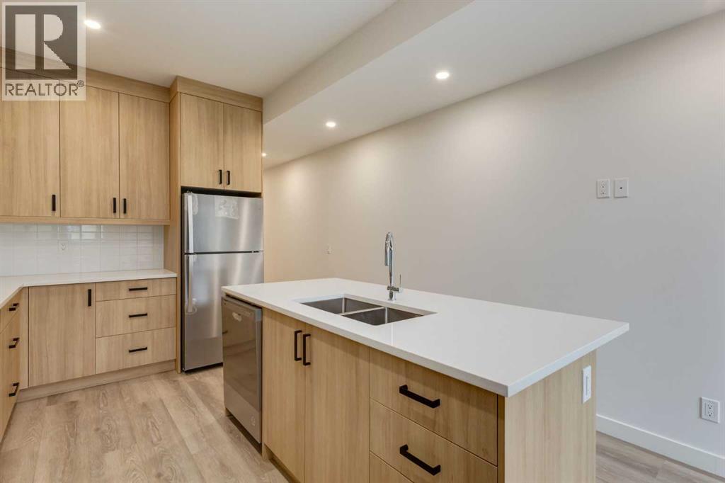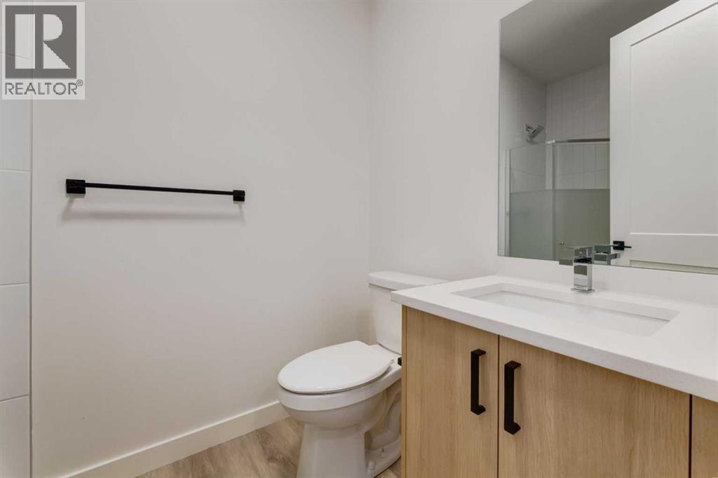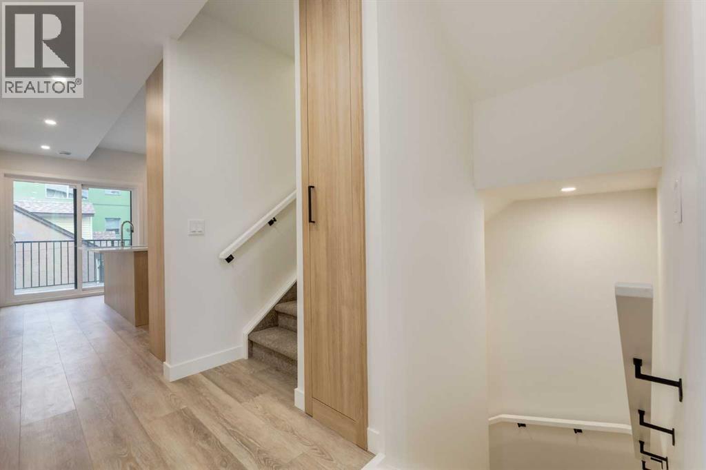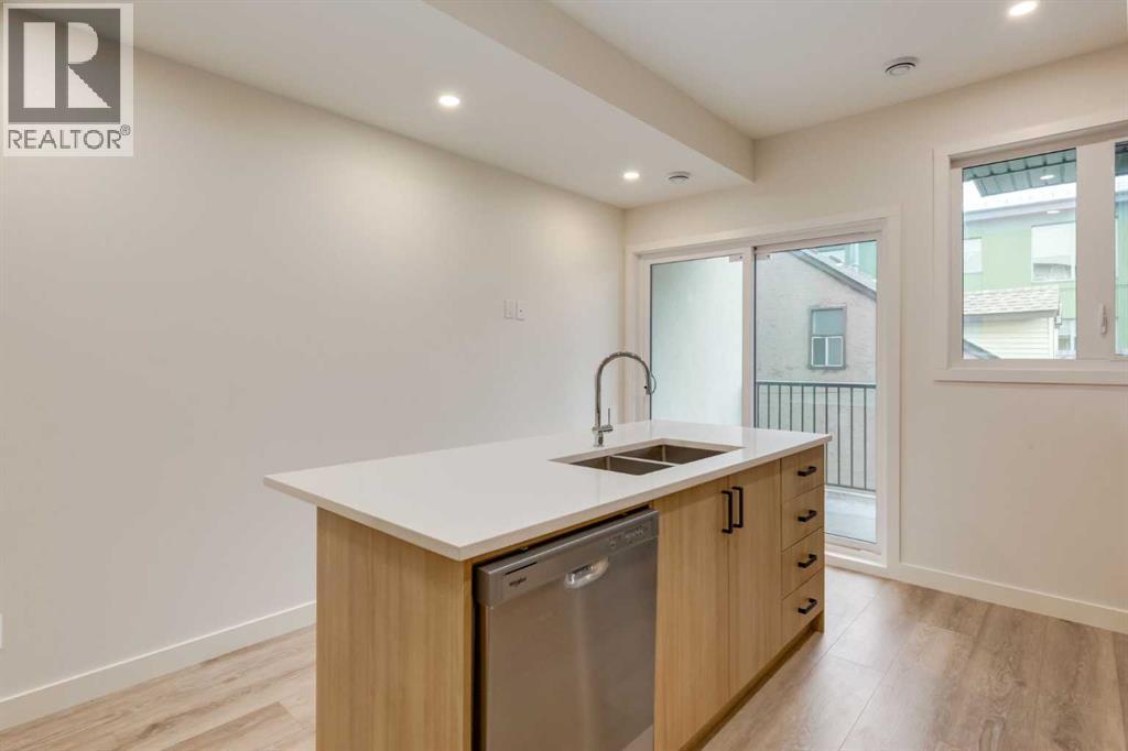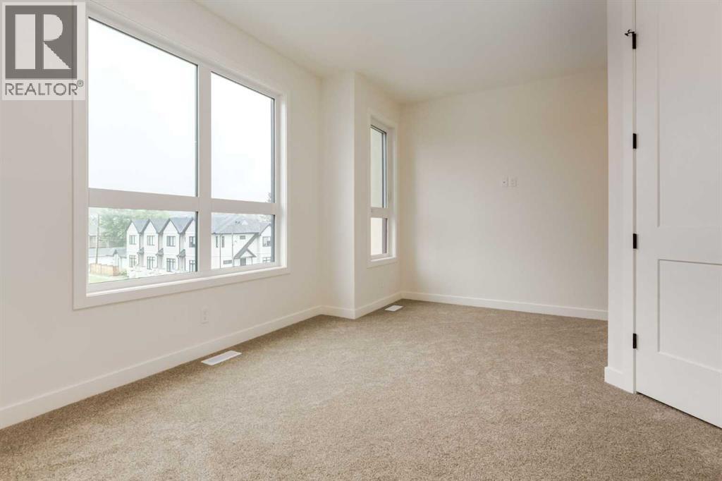 Experience Contemporary Living in Calgary’s Vibrant West EndThis newly built townhouse blends modern design with everyday functionality, nestled in a dynamic inner-city neighbourhood.Step inside through the ground-level entrance to a spacious foyer that connects to a single attached garage and a versatile self-contained studio—ideal for guests, remote work, or generating rental income.Upstairs, luxury vinyl plank stairs lead to a bright and open main floor. The sleek kitchen is outfitted with full-height cabinetry, stainless steel appliances, quartz countertops, and a built-in buffet for additional storage. A cozy dining nook offers the perfect setting for relaxed meals or casual entertaining.The airy living area features two oversized windows that flood the space with natural light, along with a convenient two-piece powder room for guests.On the upper level, you’ll find two large primary suites, each with its own four-piece ensuite and generous closet space. A dedicated laundry area on this floor adds to the home’s practical appeal.Located steps from local cafes, shops, and services, and offering quick access to the Trans-Canada Highway, Stoney Trail, Shouldice Park, and the Bow River, this move-in ready home offers exceptional lifestyle and investment potential. (id:51913)