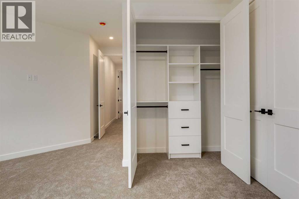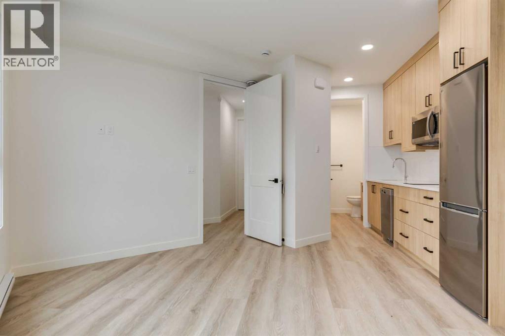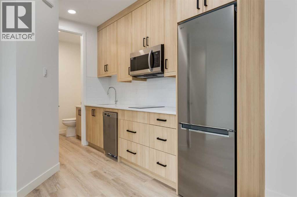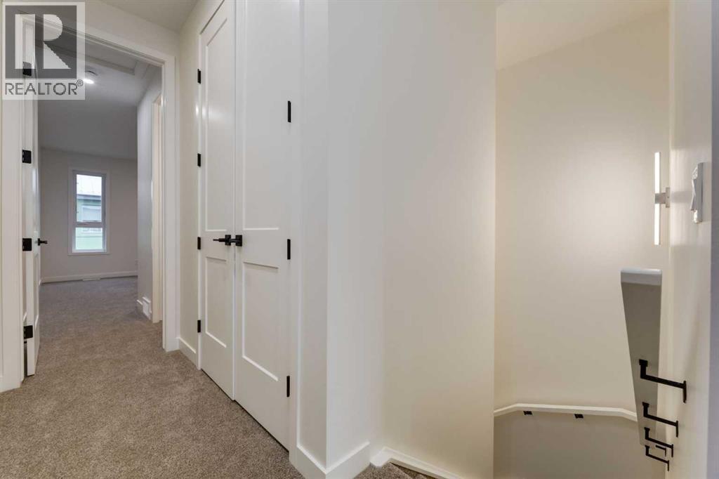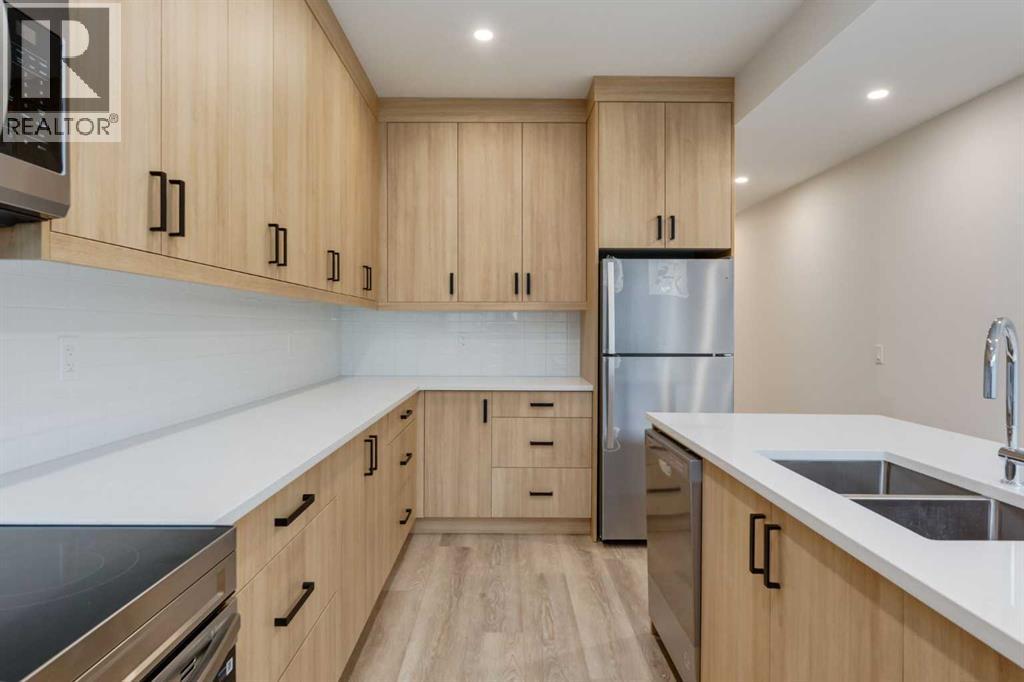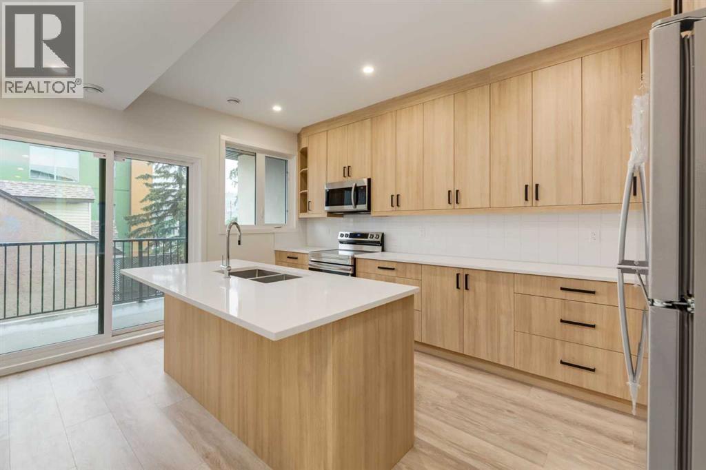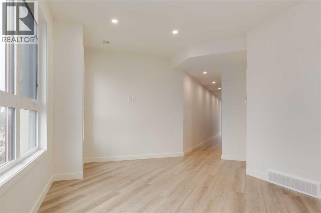 Experience Contemporary Living in Calgary’s Vibrant West EndThis newly built townhouse blends modern design with everyday functionality, nestled in a dynamic inner-city neighbourhood.Step inside through the ground-level entrance to a spacious foyer that connects to a single attached garage and a versatile self-contained studio—ideal for guests, remote work, or generating rental income.Upstairs, luxury vinyl plank stairs lead to a bright and open main floor. The sleek kitchen is outfitted with full-height cabinetry, stainless steel appliances, quartz countertops, and a built-in buffet for additional storage. A cozy dining nook offers the perfect setting for relaxed meals or casual entertaining.The airy living area features two oversized windows that flood the space with natural light, along with a convenient two-piece powder room for guests.On the upper level, you’ll find two large primary suites, each with its own four-piece ensuite and generous closet space. A dedicated laundry area on this floor adds to the home’s practical appeal.Located steps from local cafes, shops, and services, and offering quick access to the Trans-Canada Highway, Stoney Trail, Shouldice Park, and the Bow River, this move-in ready home offers exceptional lifestyle and investment potential. (id:51913)
