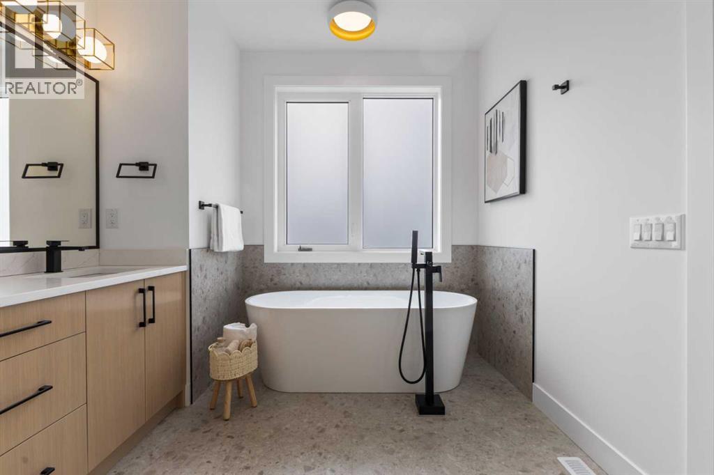 Welcome to a home where contemporary elegance meets everyday comfort in the heart of MONTGOMERY. Situated on a quiet street in this sought-after inner-city community, this stunning new build is designed with both style and function in mind, offering a thoughtfully crafted layout including a WALKOUT BASEMENT w/ COVERED PATIO SPACE, high-end finishes, and incredible natural light throughout. From the moment you step inside, the open-concept main floor makes an immediate impression. You’re greeted by a lovely glass wall in the front foyer, looking into the main floor home office with a built-in desk. The heart of the home is the designer kitchen—a perfect blend of modern aesthetics and practicality. A waterfall island anchors the space, complemented by custom cabinetry, quartz countertops, and top-tier appliances, including a gas range and French door fridge. A built-in pantry offers storage space, while a built-in coffee counter adds more cabinetry and room for small appliances. The front dining area is spacious enough for large gatherings, while the living room is designed for relaxation and entertaining, featuring a sleek gas fireplace and oversized patio doors that open to the upper deck and SOUTHWEST-FACING BACKYARD. A stylish built-in bench and hooks in the mudroom provide everyday convenience, and a chic powder room completes the main level. Upstairs, the primary suite is stylishly finished with a tray ceiling and a spacious walk-in closet with custom built-ins. The generous ensuite is a masterpiece, featuring a freestanding soaker tub, a walk-in shower with a bench, dual vanities, and elegant finishes. Two additional bedrooms each have built-in closets, while a beautifully finished main bath adds even more functionality along with the full laundry room with tile floor and built-in cabinetry. The legal 2-BED LOWER SUITE (subject to permits and approval by the city) is a fully independent living space featuring a modern kitchen with full-height cabinetry, quartz countertops, and a stainless steel appliance package. The thoughtful layout includes a bright living room, two spacious bedrooms with built-in closets, a stylish 4-piece bath, dedicated laundry, and a private backyard entrance. The highlight of this space, though, is the full WALKOUT PATIO – the covered space is perfect for enjoying the outdoors year-round, with the additional convenience of a fully private entrance! Located in Montgomery, this home offers an unbeatable lifestyle. Enjoy quick access to the Bow River pathways, Shouldice Park, and Winsport, perfect for outdoor enthusiasts. The community is home to fantastic local restaurants, trendy coffee shops, and boutique shopping while offering easy access to Market Mall, Foothills Hospital, the University of Calgary, and major roadways for a seamless commute. Don’t miss your chance to own this beautifully designed home in one of Calgary’s most desirable neighbourhoods! (id:51913)