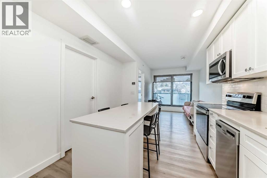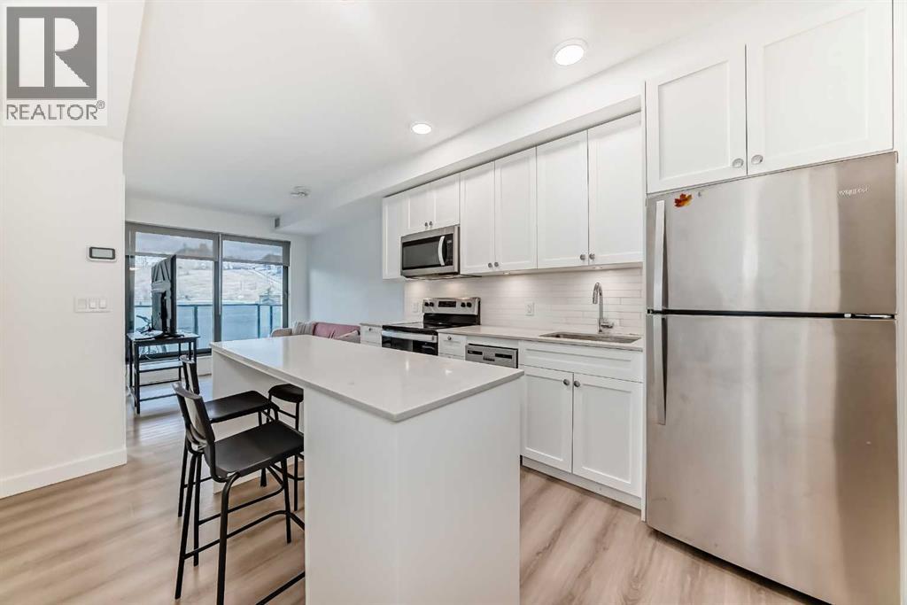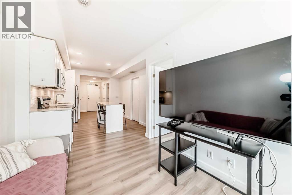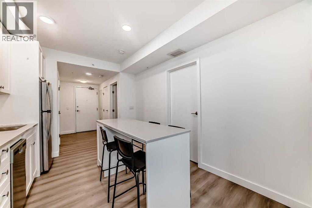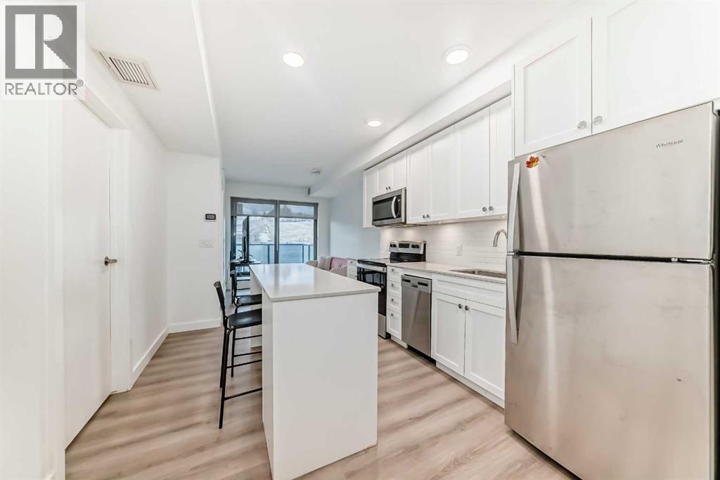 Welcome to this contemporary 2-bedroom, 1-bathroom condo located on the 5th floor of Era—a thoughtfully designed building by Minto Communities, ideally positioned between Bridgeland and Crescent Heights. This sleek urban home offers the perfect blend of comfort, style, and convenience in one of Calgary’s most desirable neighbourhoods.The open-concept layout seamlessly connects the modern kitchen, dining, and living areas, leading to a private balcony that’s perfect for morning coffee or evening relaxation. The kitchen features quartz countertops, stainless steel appliances, a functional island, and elegant cabinetry—ideal for both everyday living and entertaining.This unit is complete with durable vinyl plank flooring, air conditioning, and in-suite laundry for added comfort. You’ll also enjoy a titled underground parking stall and a dedicated storage locker for your extra belongings.Era was sustainably built with LEED certification in mind and features state-of-the-art smart technology including facial recognition access, one-way video calling, package locker integration, community messaging, and a virtual concierge system.Residents can unwind on the rooftop patio with its panoramic views of the Calgary skyline, firepits, BBQ stations, and indoor workspaces—an ideal setting for gatherings or working from home.Located steps from the Bridgeland LRT station, river pathways, parks, local restaurants, shops, and downtown Calgary, this is inner-city living at its best. (id:51913)