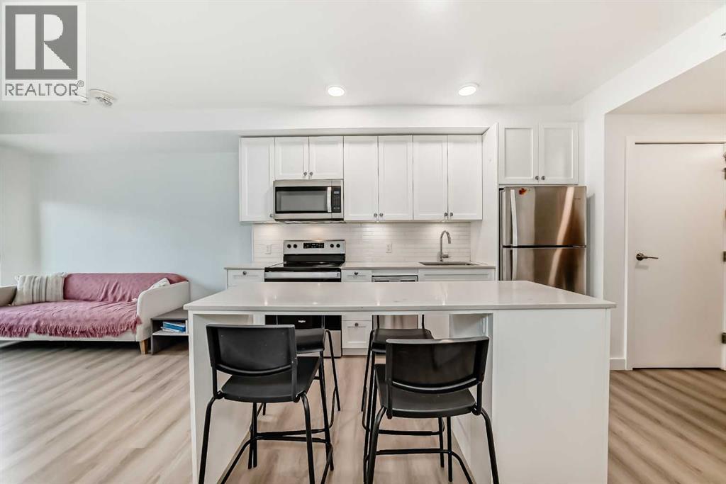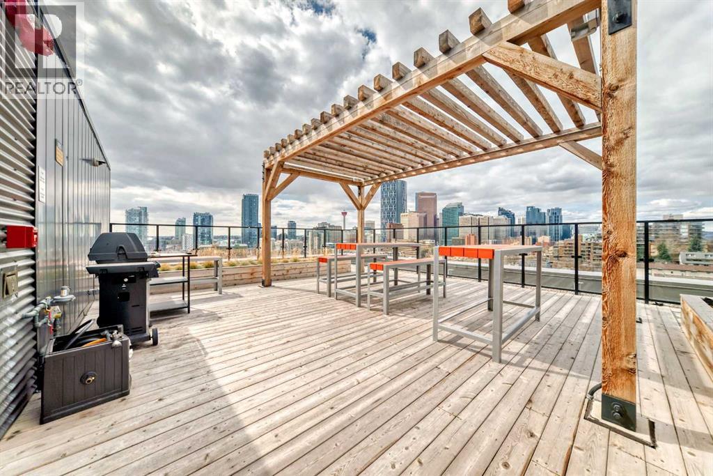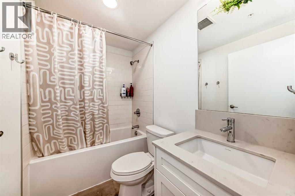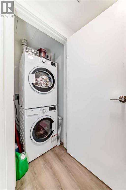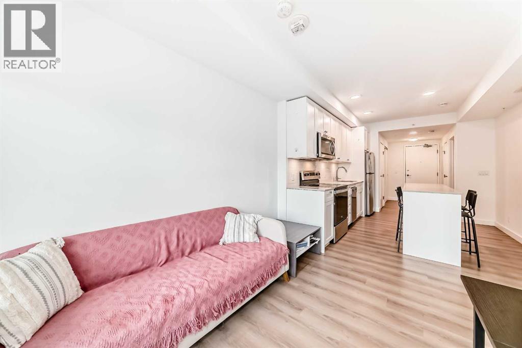 Welcome to this contemporary 2-bedroom, 1-bathroom condo located on the 5th floor of Era—a thoughtfully designed building by Minto Communities, ideally positioned between Bridgeland and Crescent Heights. This sleek urban home offers the perfect blend of comfort, style, and convenience in one of Calgary’s most desirable neighbourhoods.The open-concept layout seamlessly connects the modern kitchen, dining, and living areas, leading to a private balcony that’s perfect for morning coffee or evening relaxation. The kitchen features quartz countertops, stainless steel appliances, a functional island, and elegant cabinetry—ideal for both everyday living and entertaining.This unit is complete with durable vinyl plank flooring, air conditioning, and in-suite laundry for added comfort. You’ll also enjoy a titled underground parking stall and a dedicated storage locker for your extra belongings.Era was sustainably built with LEED certification in mind and features state-of-the-art smart technology including facial recognition access, one-way video calling, package locker integration, community messaging, and a virtual concierge system.Residents can unwind on the rooftop patio with its panoramic views of the Calgary skyline, firepits, BBQ stations, and indoor workspaces—an ideal setting for gatherings or working from home.Located steps from the Bridgeland LRT station, river pathways, parks, local restaurants, shops, and downtown Calgary, this is inner-city living at its best. (id:51913)