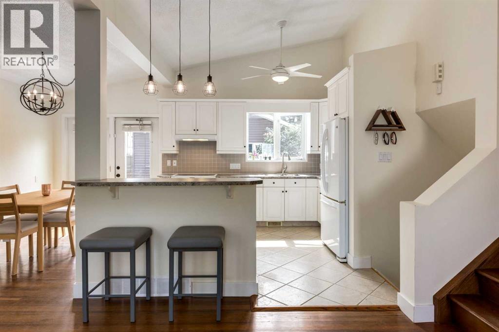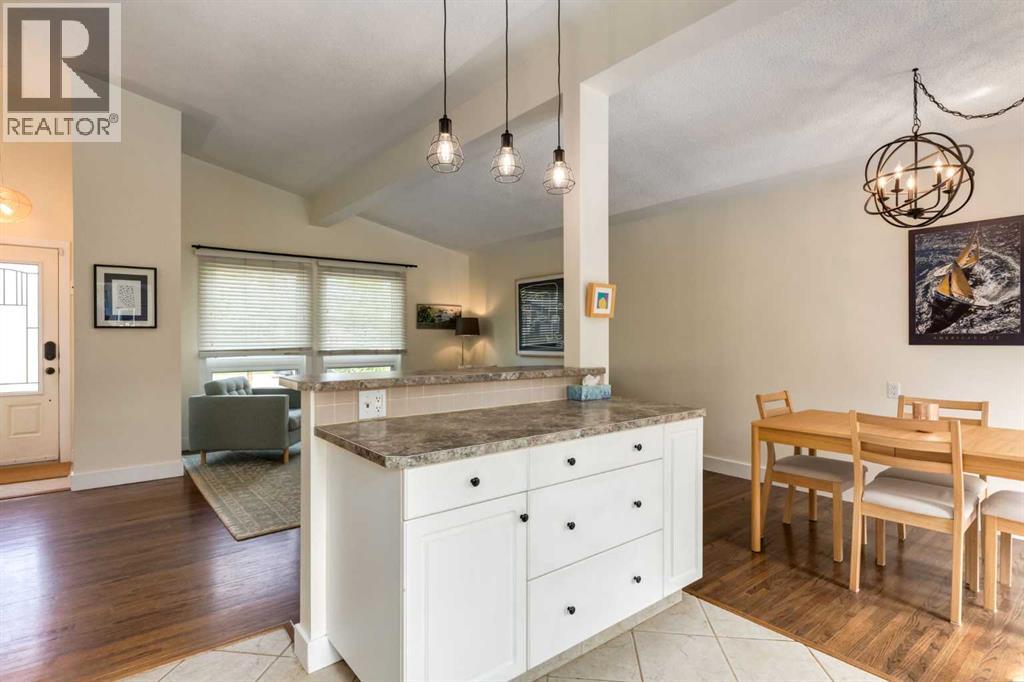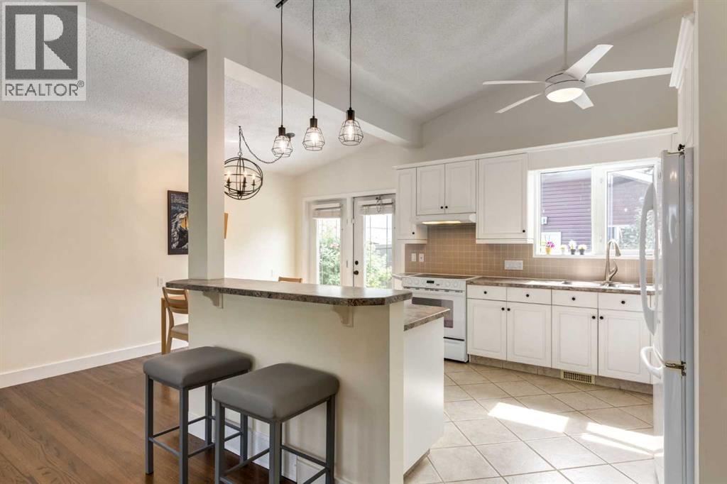 Light-filled and inviting, this home showcases sought-after mid-century style, highlighted by soaring vaulted ceilings on the main level. Thoughtfully updated, it blends modern finishes with a functional, open design, and a total of 1452 square feet of developed living space.The kitchen features ample cabinetry, a center island perfect for both entertaining and everyday use, and is complemented by pendant lighting. A custom chandelier accents the dining area, while the spacious living room enhances the open, airy atmosphere—creating a relaxing and inspiring space to call home.Rear doors open to a freshly painted deck overlooking a massive south-facing backyard. Fully fenced and landscaped with mature trees, easy-care gardens, and bursts of sunflowers, it also includes an outdoor storage shed.An oversized double detached garage offers abundant storage and a workbench, ideal for hobbies or projects.Inside, the home includes 3 bedrooms and 2 full bathrooms, with beautiful hardwood floors on the main and a newly developed basement. The lower level features luxury vinyl plank flooring, a large recreation room, and stylish barn-style doors that create a flexible semi-private space—perfect as a guest suite—alongside a newly built full bathroom and downstairs laudry. Set in the popular community of Acadia, residents enjoy tree-lined streets, excellent schools, and an active community association with year-round programs. With nearby parks, recreation centres, and convenient shopping and dining, Acadia offers a vibrant, family-friendly lifestyle in the heart of Calgary. (id:51913)