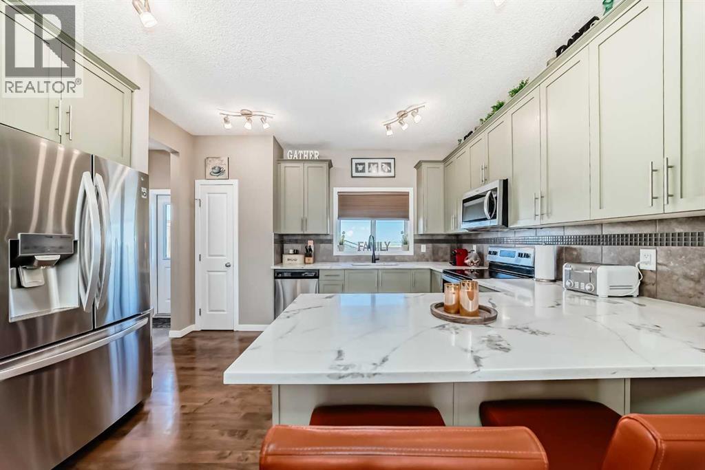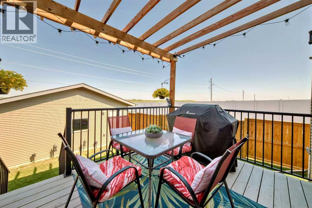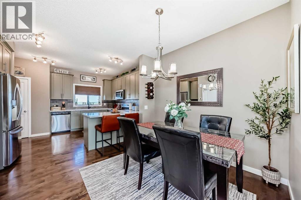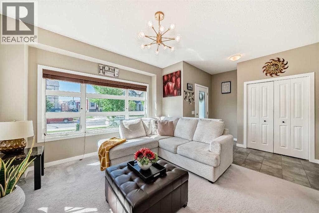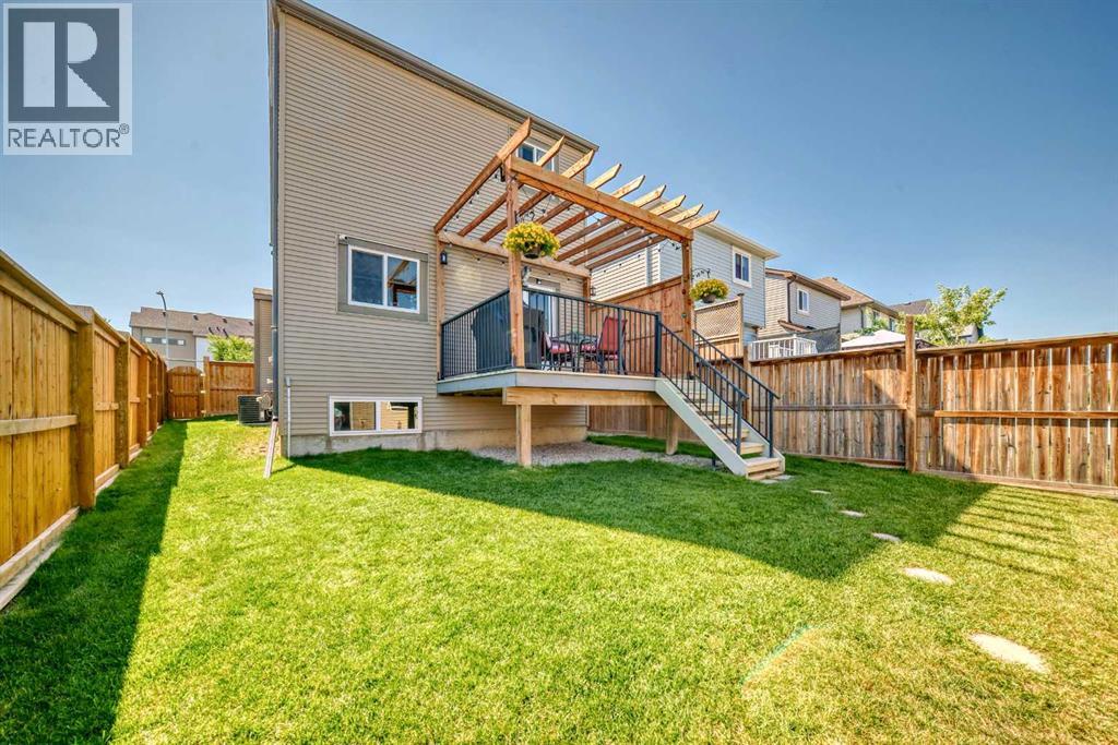 This stunning detached home sits on a desirable corner lot in the vibrant community of Copperfield. As you step inside, you're greeted by a bright open-concept floor plan with soaring 9-foot ceilings. The main level features a spacious living room with a cozy fireplace feature wall, a welcoming dining area with an eating bar, and stylish tiled entries at both the front and rear. The heart of the home is a modern chef's kitchen, complete with ample cabinetry, quartz countertops, stainless steel appliances which were all replaced in 2021. Just off the kitchen, you'll find access to a beautiful deck with a pergola-perfect for morning coffee sips and BBQ with family and friends. A powder room completes the main level. Upstairs, the impressive primary bedroom boasts a walk-in closet and a 4-piece ensuite, plus two additional well-sized bedrooms and a full bathroom. The laundry is also located in the upper floor for easier access. Washer and dryer was replaced in 2022. The fully developed basement offers a large family or recreation room with laminate flooring, plus a versatile den area-ideal for a home office or computer nook. Live comfortably with your centralized airconditiong installed in 2023. Hot water tank was also replaced in 2024. Additional upgrades include the gemstone lights at the front, side and back of the house. With a double detached garage, fenced yard, and backing onto wetlands, this is the perfect family home- move-in ready and packed with value. Close to Stoney Trail and Deerfoot Trail, a must-see home! (id:51913)