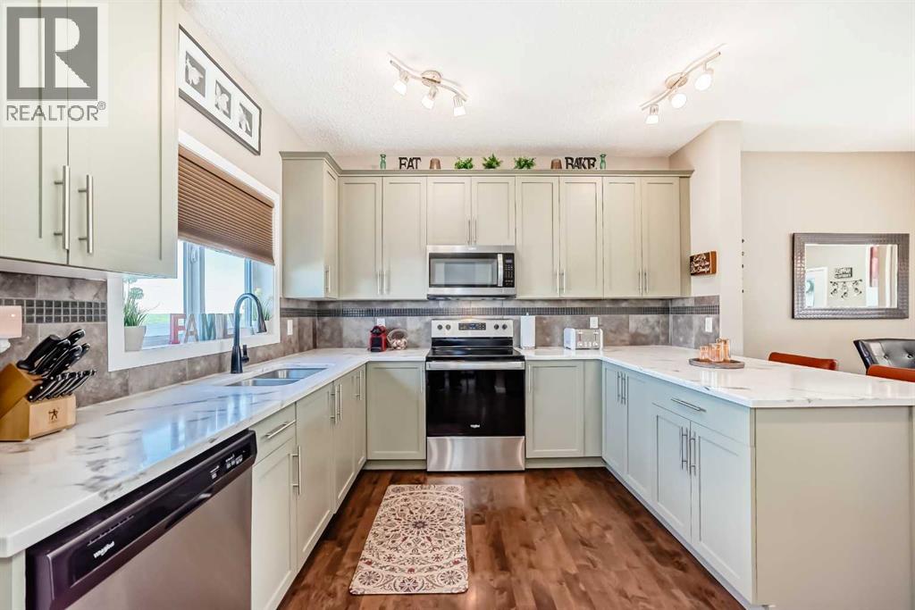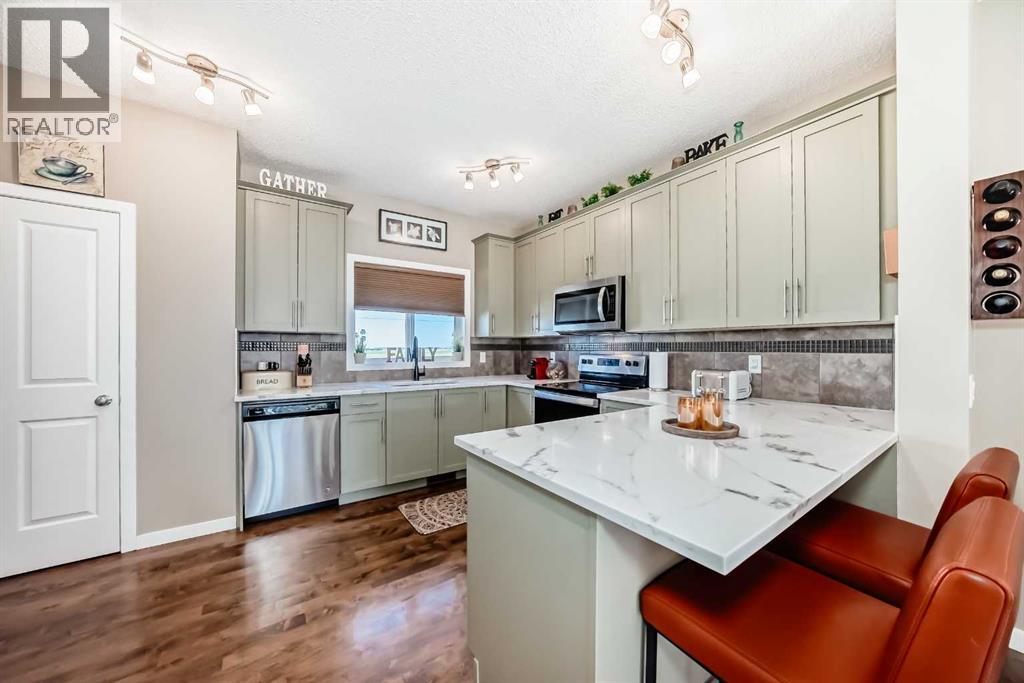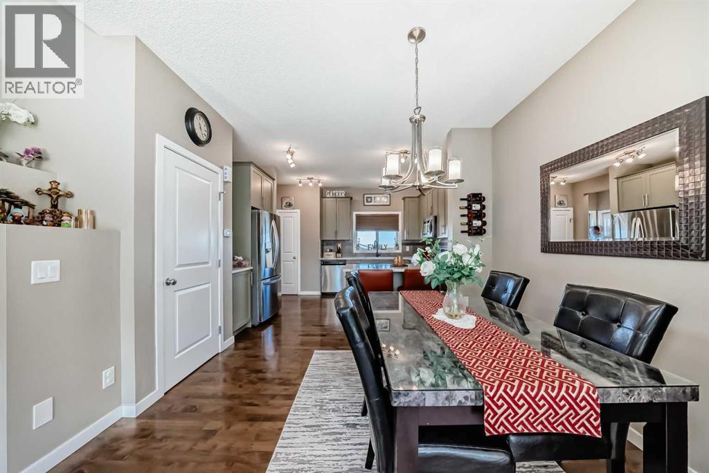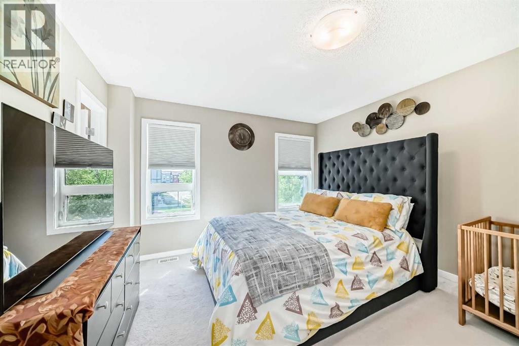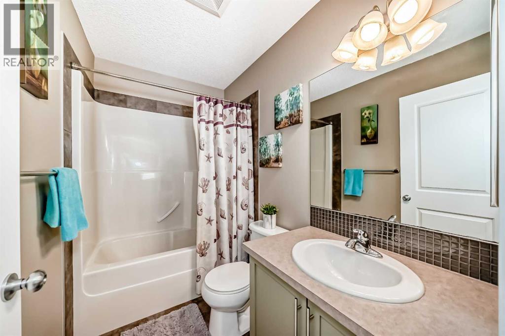 This stunning detached home sits on a desirable corner lot in the vibrant community of Copperfield. As you step inside, you're greeted by a bright open-concept floor plan with soaring 9-foot ceilings. The main level features a spacious living room with a cozy fireplace feature wall, a welcoming dining area with an eating bar, and stylish tiled entries at both the front and rear. The heart of the home is a modern chef's kitchen, complete with ample cabinetry, quartz countertops, stainless steel appliances which were all replaced in 2021. Just off the kitchen, you'll find access to a beautiful deck with a pergola-perfect for morning coffee sips and BBQ with family and friends. A powder room completes the main level. Upstairs, the impressive primary bedroom boasts a walk-in closet and a 4-piece ensuite, plus two additional well-sized bedrooms and a full bathroom. The laundry is also located in the upper floor for easier access. Washer and dryer was replaced in 2022. The fully developed basement offers a large family or recreation room with laminate flooring, plus a versatile den area-ideal for a home office or computer nook. Live comfortably with your centralized airconditiong installed in 2023. Hot water tank was also replaced in 2024. Additional upgrades include the gemstone lights at the front, side and back of the house. With a double detached garage, fenced yard, and backing onto wetlands, this is the perfect family home- move-in ready and packed with value. Close to Stoney Trail and Deerfoot Trail, a must-see home! (id:51913)