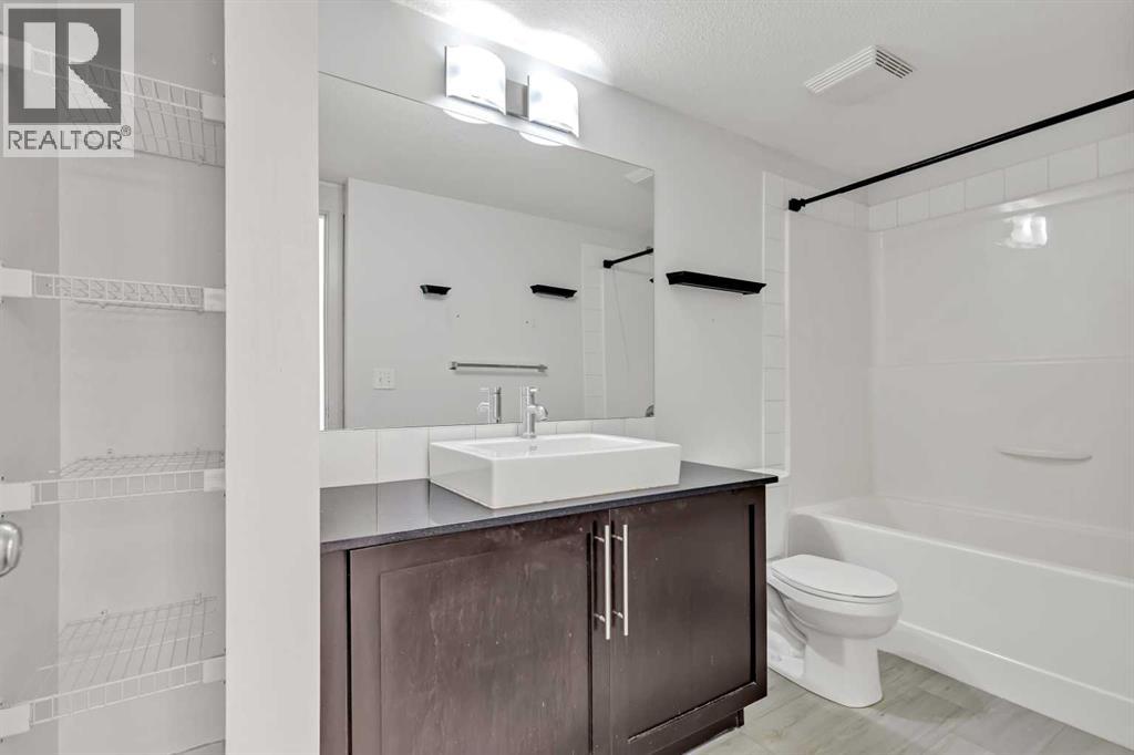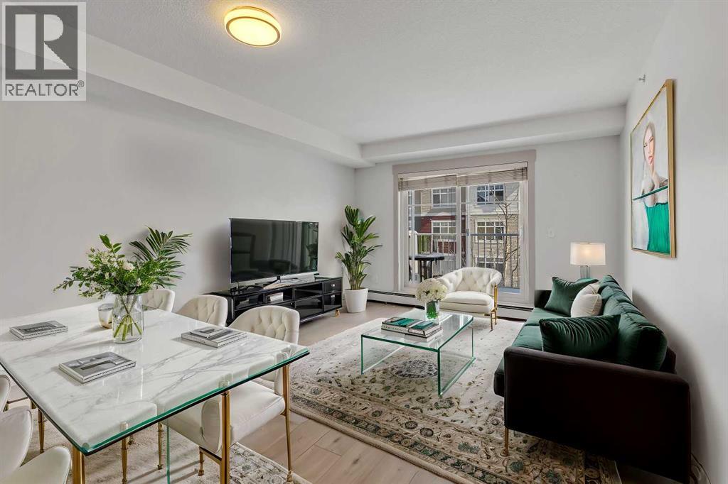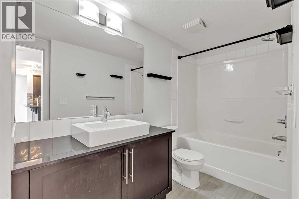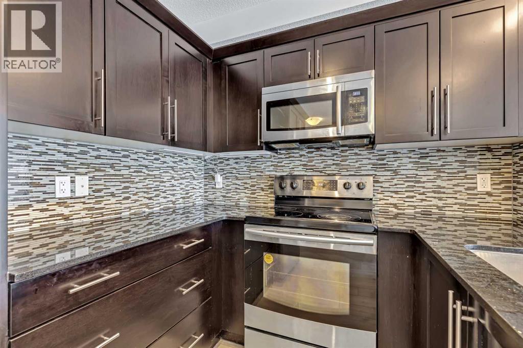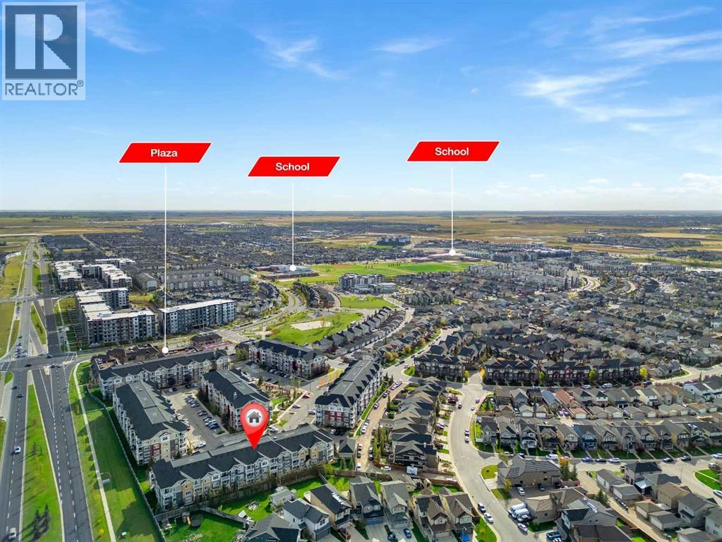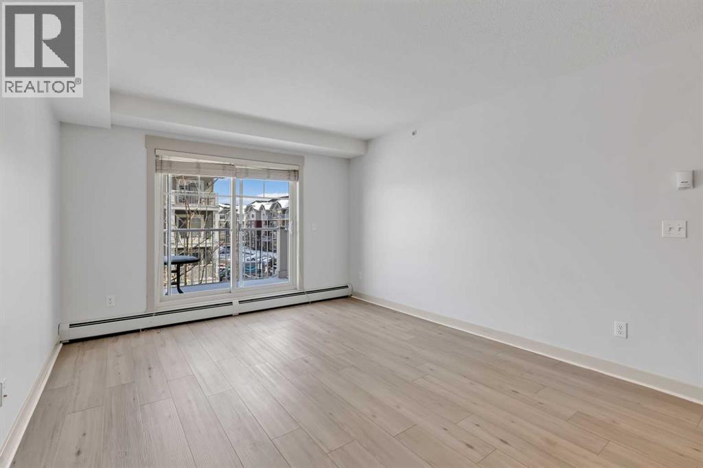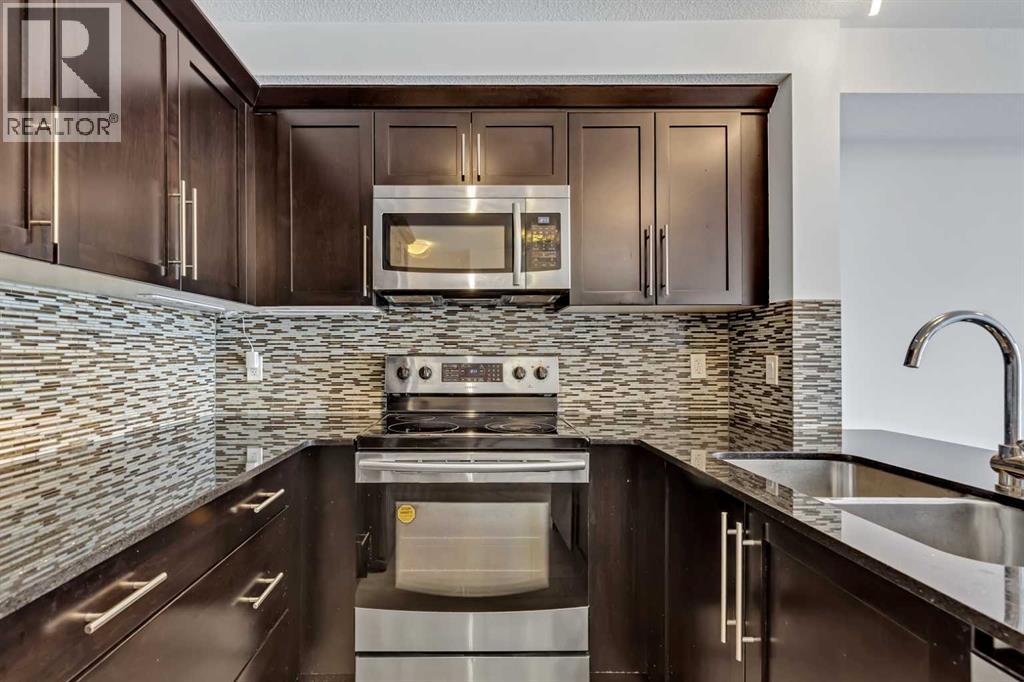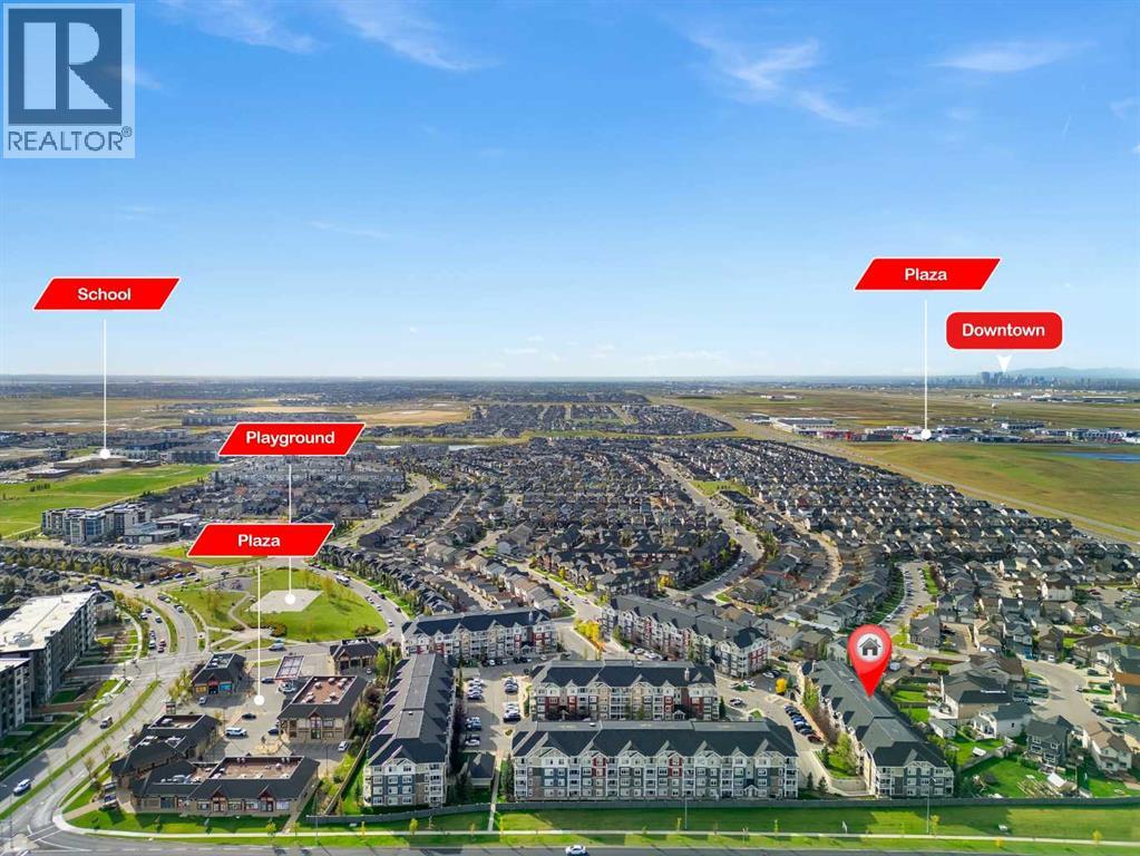 Welcome to SkyWest Condominiums!This immaculate, move-in-ready condo is tucked away in the highly sought-after community of Skyview Ranch, offering the perfect balance of style, comfort, and convenience.Step inside to an inviting open-concept layout bathed in natural light and enhanced by soaring 9-ft ceilings. Durable Luxury Vinyl Plank flooring flows seamlessly through the main living areas, while plush carpet in the spacious primary bedroom adds warmth and comfort.The showpiece kitchen is a true delight, featuring gleaming granite countertops, an undermount sink, ample cabinetry, and a premium stainless steel appliance package. An eat-up breakfast bar provides the ideal spot for quick meals or entertaining guests.Your east-facing balcony is perfect for morning coffee or summer BBQs, complete with a gas hookup. The primary bedroom easily fits a king-size bed and includes a generous walk-in closet. The 4-piece bathroom offers a stylish vessel sink and a relaxing soaker tub.Additional highlights include in-suite laundry, a titled underground parking stall with storage, and plenty of visitor parking. The beautifully landscaped SkyWest complex offers lush green spaces and is just minutes from Metis Trail, Stoney Trail, Calgary International Airport, shopping, and schools. (id:51913)