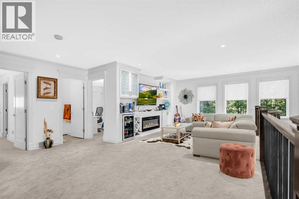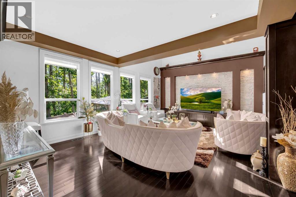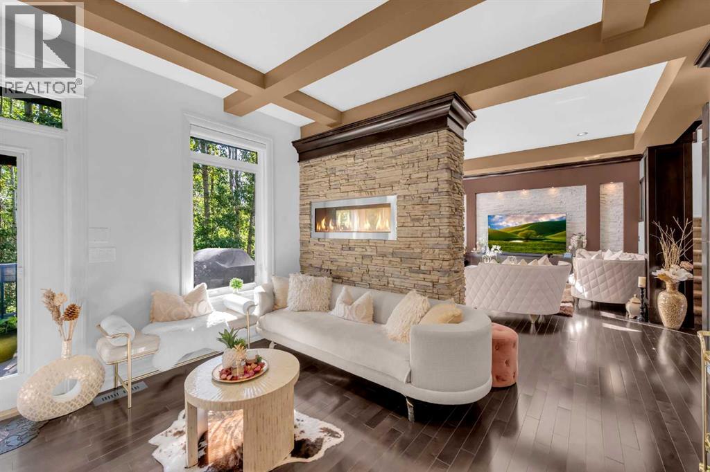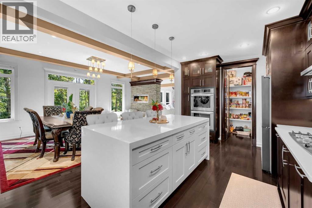 *** OPEN HOUSE SUNDAY OCTOBER 19TH 11 AM - 4 PM*** Discover a haven of refined living nestled against a tranquil forest in this former show home, where captivating stone and stucco exterior architecture meets a bespoke wooden trim lined interior that radiates timeless elegance. With over 4900 total square feet throughout this luminous five bedroom, three full bath residence it features an attached triple car garage, two powder rooms, and a main floor defined by soaring 9 foot ceilings, a gracious den, and a majestic 3D gas fireplace. The gourmet kitchen, ensconced beneath a chauffeured ceiling over the dining area offers floor to ceiling cabinetry, built in appliances, a vast pantry, Samsung smart fridge, and colossal island, all crafted for both culinary excellence and effortless entertaining. Upstairs, a sun drenched open-to-below bonus room with an electric fireplace overlooks the living area on the main floor and is accompanied by two bedrooms that share a Jack and Jill style bath with an additional common powder room upstairs. The luxurious master suite serves as an elegant retreat with a cathedral ceiling, pot lights, cozy gas fireplace, and spa-inspired ensuite featuring dual vanities, a two-person air tub, an opulent steam shower, and his and hers walk in closets creating a truly one of a kind space and atmosphere. The walkout lower level beckons as a radiant entertainment sanctuary, offering ample natural light through oversized windows, a near full kitchen including high end Electrolux appliances and combo oven/microwave, two additional bedrooms, and another versatile space ideal for a den or media lounge. Premium amenities within the home encompass central air conditioning, dual furnaces, water filtration system, abundant pot lighting and much much more. The southeast facing backyard flows seamlessly into a private wooded backdrop, crafting an idyllic extension of your indoor sanctuary and presenting the perfect space for any gathering you could have. Jus t minutes from top tier schools such as William D. Pratt School and Royal Oak School, the YMCA, shopping centers, and grocery stores, this residence delivers an extraordinary fusion of elevated design, sophistication, and effortlessly accessible community luxury that can only be gained by making this home yours. (id:51913)