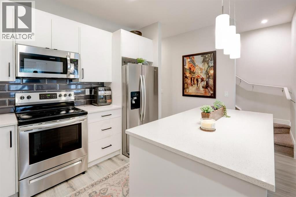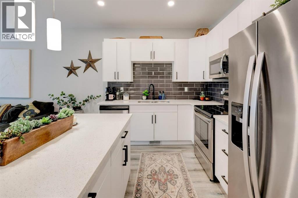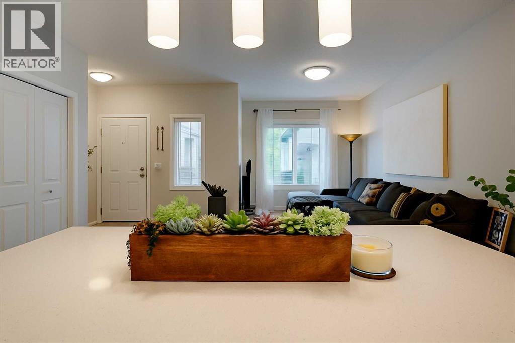 If you’ve been waiting for a townhouse that feels like home from the moment you step inside, this is it. Immaculate, upgraded, and styled to perfection, this 1,170 sq. ft. 2-bedroom, 2.5-bath home stands out from the rest.The main floor’s open concept layout is bright and airy, anchored by a designer kitchen with quartz counters, a large island, and quality finishes. Even the flooring and tile have been upgraded, adding style and durability throughout. A welcoming front porch, custom feature walls, and a rear mud room leading to the attached garage add both function and flair.Upstairs, two spacious bedrooms each have direct access to a full bathroom. The primary suite boasts a walk-through closet and private ensuite with an oversized stand-up shower. Convenient upper laundry and thoughtful storage make everyday life easier.The basement is ready for your future plans, while low condo fees and remaining builder’s warranty give you peace of mind. Outside, you’re steps to walking paths, parks, playgrounds, and the canal, with schools, shopping, and dining nearby.Every detail is done, all that’s left is for you to move in and enjoy. (id:51913)