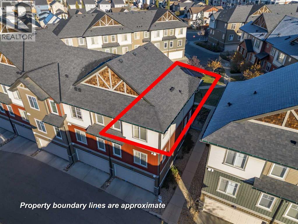 WELCOME TO SKYVIEW RANCH! This is the spacious, well-appointed home you have been waiting for—a true corner unit masterpiece ready for immediate enjoyment. Built in 2011, this bright and beautiful townhome was a former show-home, featuring an attached double car garage and a large, inviting front patio. Inside, the generous 1,100 sq. ft. floor plan is designed for modern living. The main level boasts beautiful hardwood floors throughout and an open-concept layout centered around a functional kitchen. This space is equipped with elegant granite countertops, ample cabinet storage, and flows perfectly into a generously sized dining room. Large windows flood the living space with natural daylight, and a versatile nook offers the ideal spot for a home office or den. Upstairs, a large primary bedroom awaits, complete with its own private ensuite and loads of closet space. Down the hall, two wonderfully arranged bedrooms share a full bathroom. Located in the heart of Skyview Ranch, this home offers an unbeatable lifestyle. You are just steps away from local playgrounds, schools, and shopping. Combining convenience, space, and a premium location, this home truly is perfect for everyone! (id:51913)