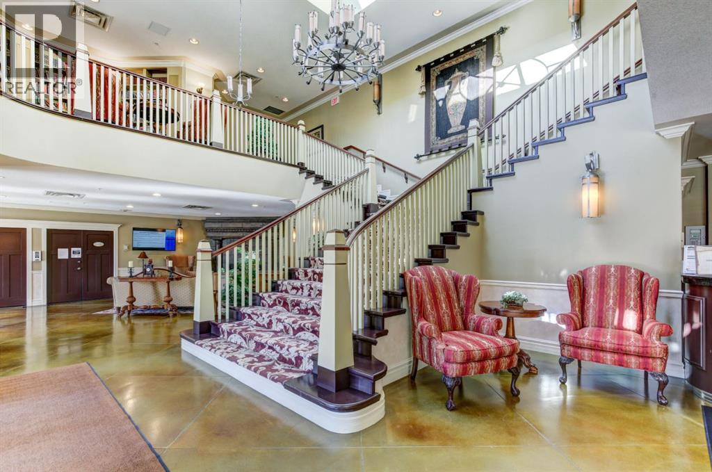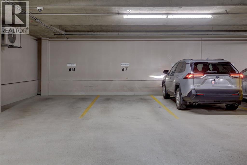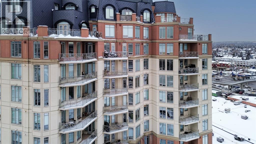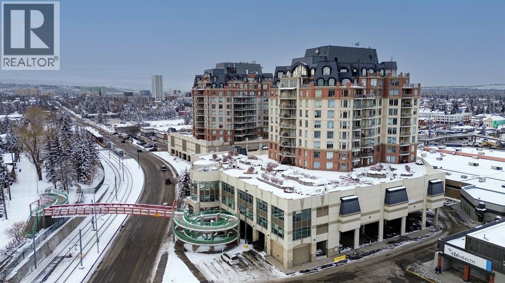 Welcome to the East Tower of the Renaissance 18+ condominium complex! This 2-bedroom, 2-bathroom condo has a very homey feel with hardwood floors, oak cabinets and a gas fireplace. The kitchen has stainless steel appliances, plenty of countertop area, and a cutout window that allows natural light into the kitchen from the large east facing living room windows and balcony door! There is a den conveniently located at the front door that has a coat closet. The living room and dining room areas have a bright and open concept. The spacious primary bedroom has access to the balcony that has an unobstructed view to the east. The 5-piece ensuite has a deep soaker tub, and a separate shower. A second bedroom offers private access to the 4-piece main bathroom with a stacked washer and dryer. This home also includes one titled, heated underground parking stall. The assigned storage unit is located on the main floor. Residents of the Renaissance enjoy exclusive access to amenities, including a 24 hour concierge, fitness centre, games and craft rooms, a movie theatre, meeting room, outdoor terrace, and guest suite. There is an elevator with direct indoor access to North Hill Shopping Centre. The Lions Park C -Train station is nearby. Easy access to downtown, SAIT, Jubilee Auditorium, and 16th Ave. Call your favourite Realtor to view this lovely property. Click on the 3D symbol at the top of the listing page to view the entre virtual tour. (id:51913)