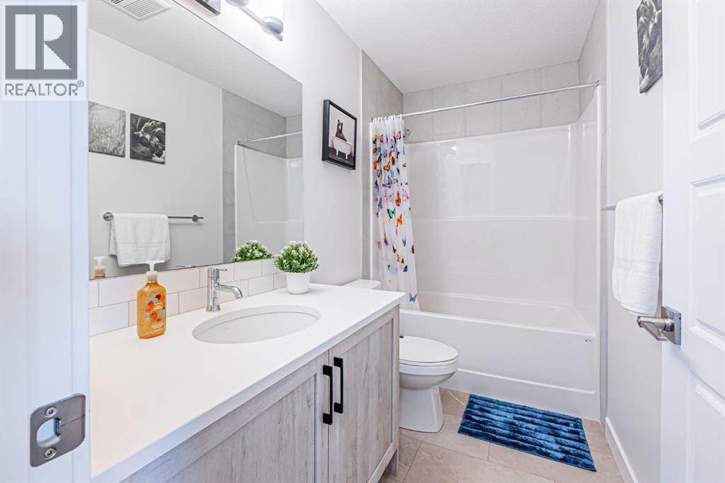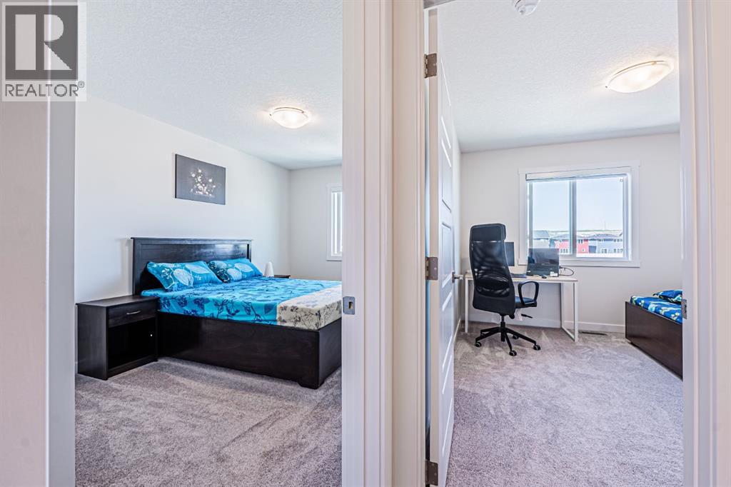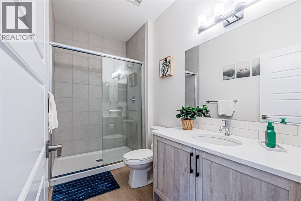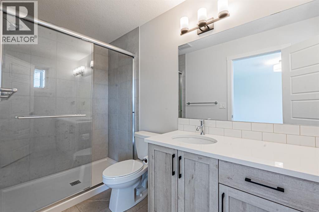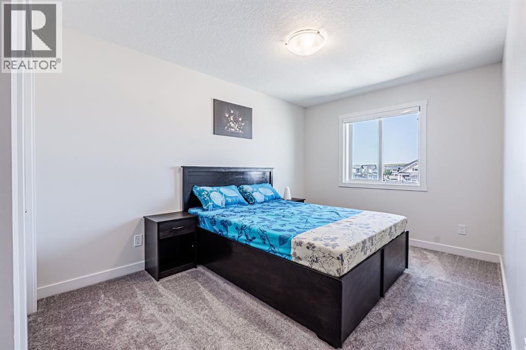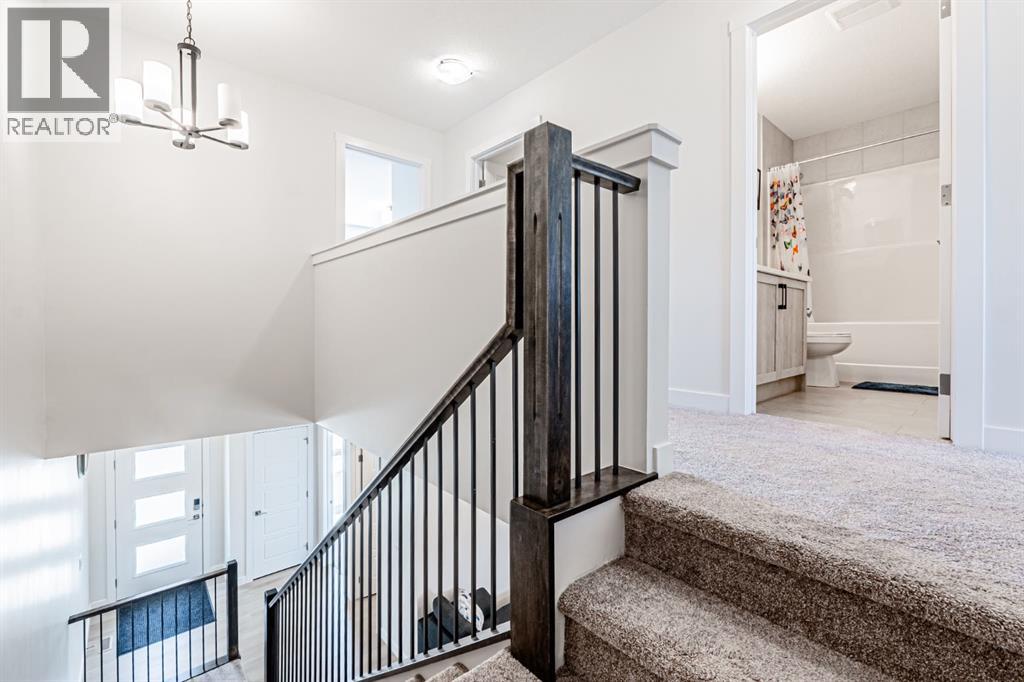 Welcome to this fully upgraded 4 bedroom, 3 full bathroom home located in the desirable Bayside community of Airdrie, close to schools, shopping, walking pathways, parks, and all amenities. The main floor features an open concept layout with a large upgraded kitchen that includes stainless steel appliances, upgraded cabinets, a spacious island, and a big pantry, along with a full bedroom and full bathroom that add flexibility for guests or extended family. Upstairs you will find a spacious primary bedroom with a walk-in closet, two additional bedrooms, another full bathroom, and a convenient laundry area. The basement offers a separate side entry, 9 foot ceilings, and excellent potential to be developed to suit your needs. The exterior is complete with front and back landscaping, a paved back lane, and a concrete garage pad at the back that provides parking and future garage development potential. Don’t miss out on this incredible opportunity—schedule your viewing today. (id:51913)