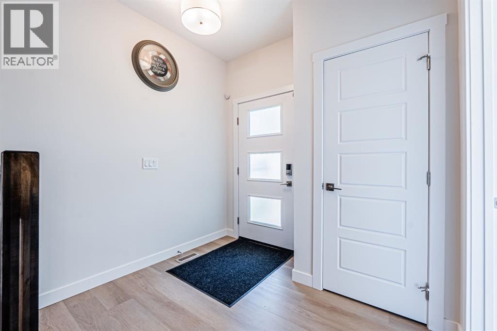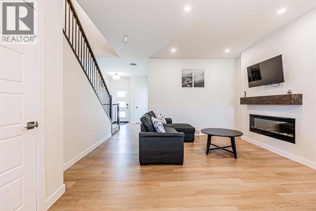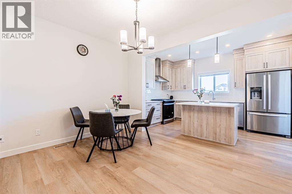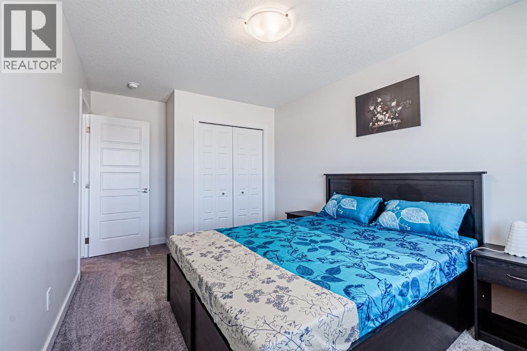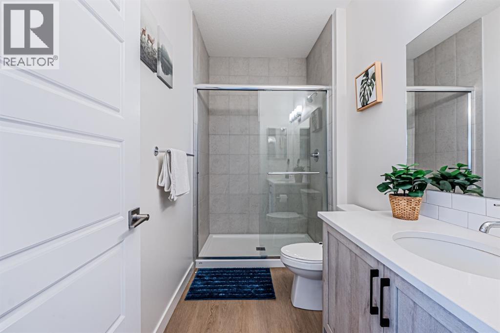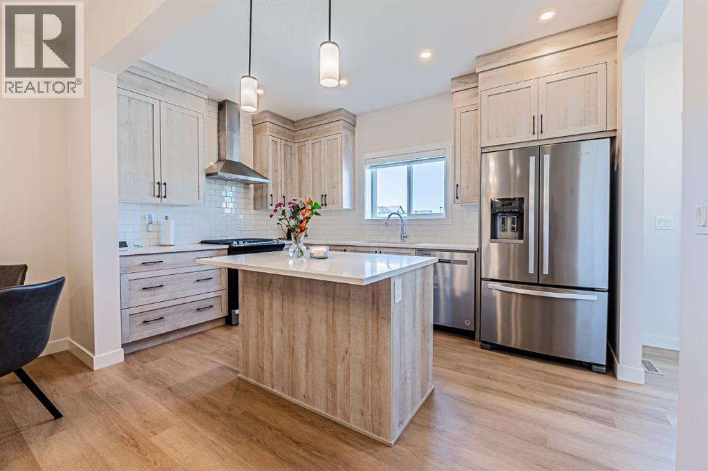 Welcome to this fully upgraded 4 bedroom, 3 full bathroom home located in the desirable Bayside community of Airdrie, close to schools, shopping, walking pathways, parks, and all amenities. The main floor features an open concept layout with a large upgraded kitchen that includes stainless steel appliances, upgraded cabinets, a spacious island, and a big pantry, along with a full bedroom and full bathroom that add flexibility for guests or extended family. Upstairs you will find a spacious primary bedroom with a walk-in closet, two additional bedrooms, another full bathroom, and a convenient laundry area. The basement offers a separate side entry, 9 foot ceilings, and excellent potential to be developed to suit your needs. The exterior is complete with front and back landscaping, a paved back lane, and a concrete garage pad at the back that provides parking and future garage development potential. Don’t miss out on this incredible opportunity—schedule your viewing today. (id:51913)