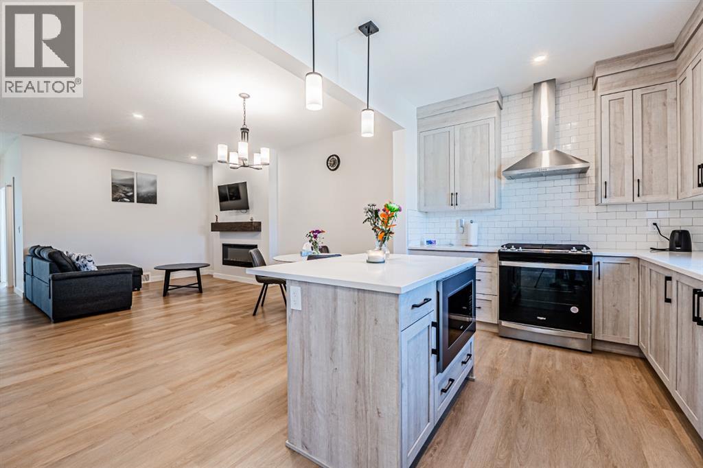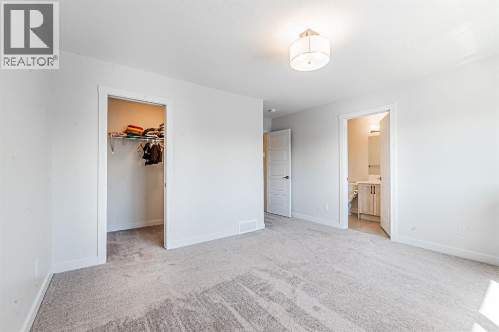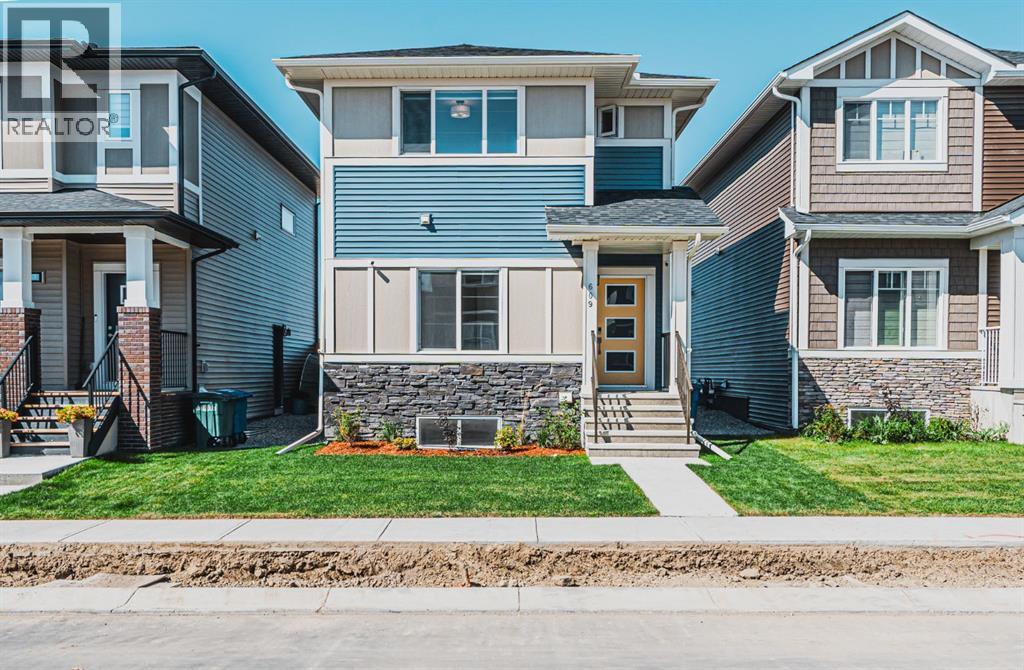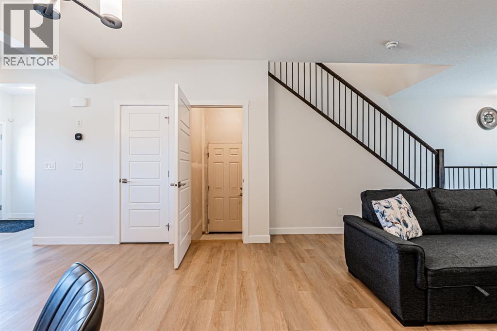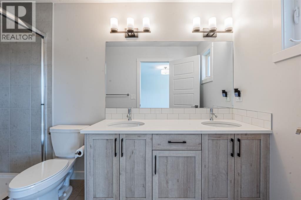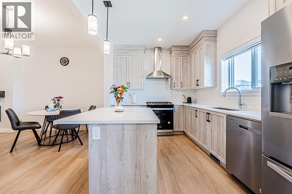 Welcome to this fully upgraded 4 bedroom, 3 full bathroom home located in the desirable Bayside community of Airdrie, close to schools, shopping, walking pathways, parks, and all amenities. The main floor features an open concept layout with a large upgraded kitchen that includes stainless steel appliances, upgraded cabinets, a spacious island, and a big pantry, along with a full bedroom and full bathroom that add flexibility for guests or extended family. Upstairs you will find a spacious primary bedroom with a walk-in closet, two additional bedrooms, another full bathroom, and a convenient laundry area. The basement offers a separate side entry, 9 foot ceilings, and excellent potential to be developed to suit your needs. The exterior is complete with front and back landscaping, a paved back lane, and a concrete garage pad at the back that provides parking and future garage development potential. Don’t miss out on this incredible opportunity—schedule your viewing today. (id:51913)