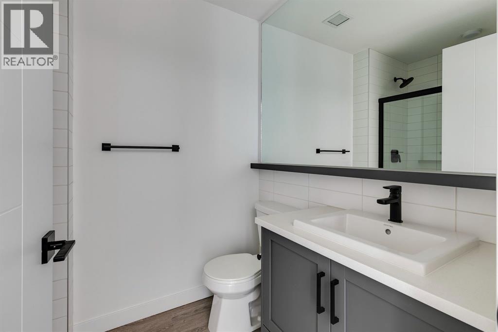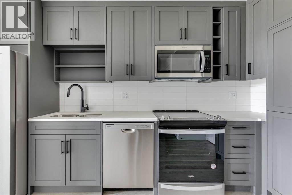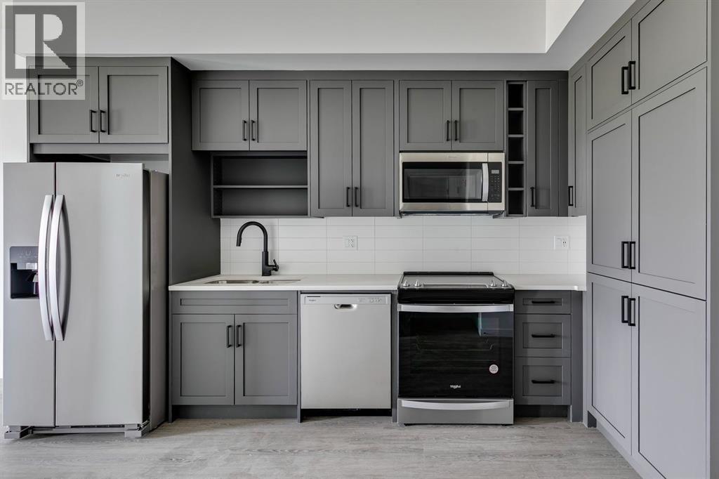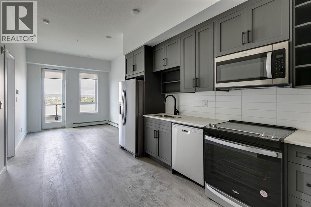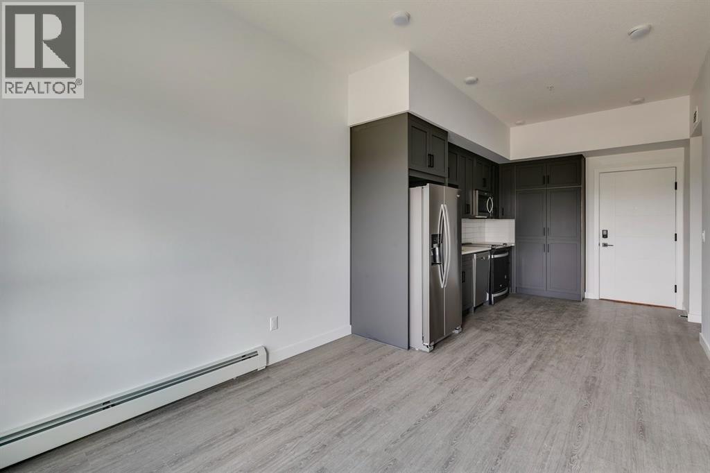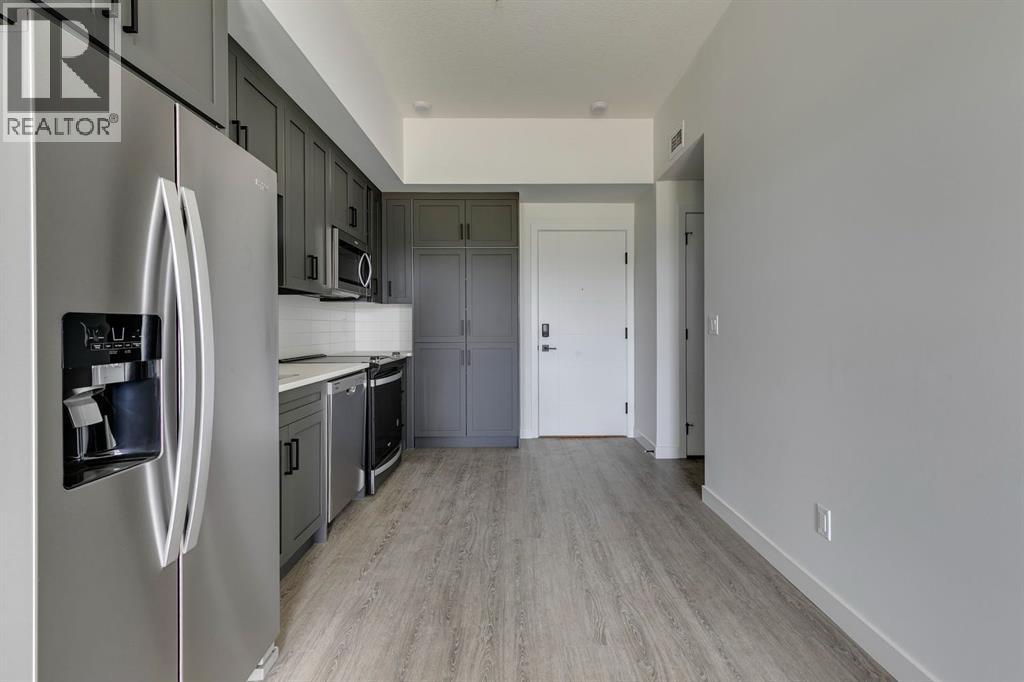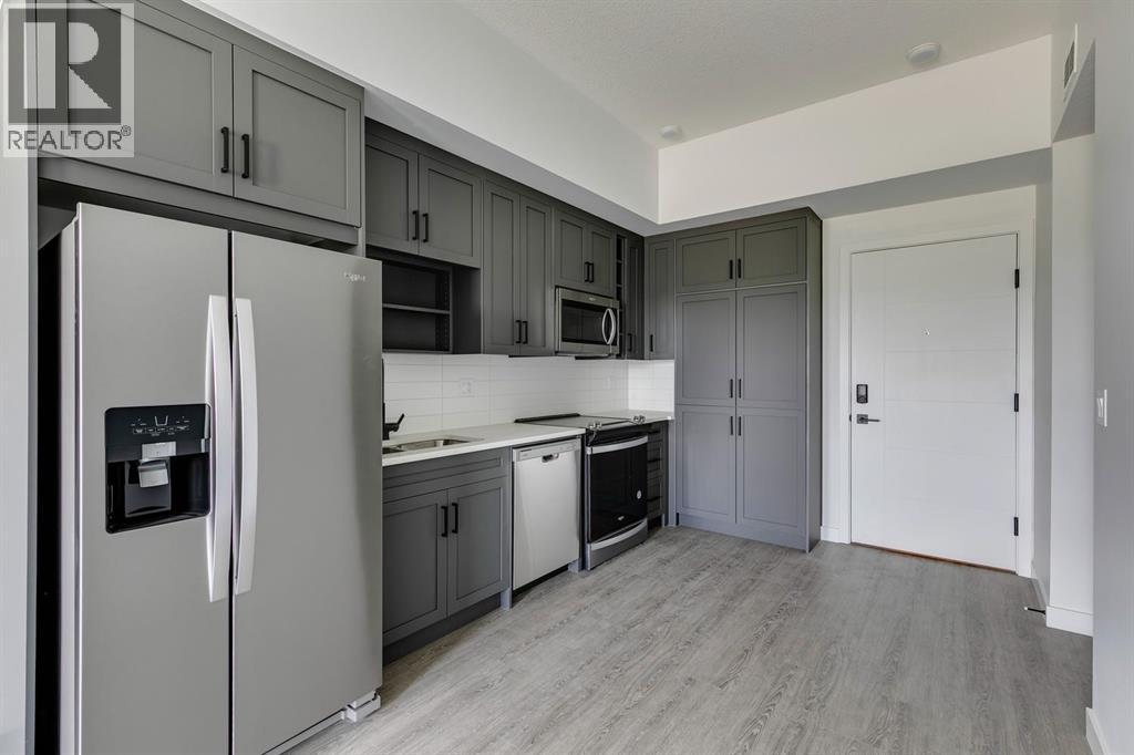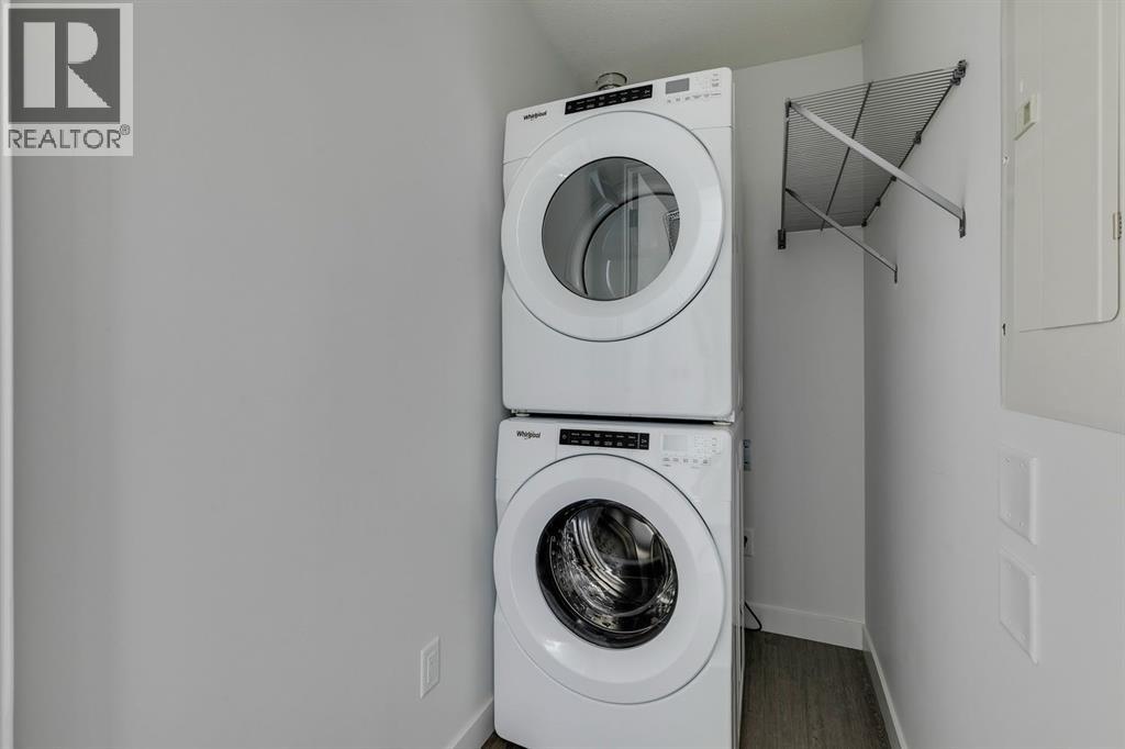 Urban living is at its finest with this modern condo nestled in the confines of the young and bustling University District. This stylish 1 bed/1 bath unit features 9' ceilings and sleek vinyl plank flooring throughout the open concept layout amicably blending an open and airy atmosphere. A crisp white kitchen boasts a plethora of full height cabinetry, built-in pantry maximizing storage efficiency, and stainless steel appliances. The bedroom is highlighted by a large picture window and walk-in closet while the full bathroom showcases a glass enclosed shower with bench. The modern convenience of in-suite laundry is at your fingertips and a private balcony offers a special place to create an outdoor oasis for relaxing or entertaining with its wood panelled ceiling and BBQ gas line hookup. The well managed building includes an on-site gym and the unit is completed with an assigned storage locker. The enveloping streetscape offers a vast array of entertainment from trendy restaurants, movie theatres, skating rink, and convenient grocery. This prime location is minutes away from the University of Calgary, Market Mall, and the Foothills and Children’s Hospital. Elevate your lifestyle with this thoughtfully designed modern condo and don’t miss your chance to live in this trendy community. (id:51913)