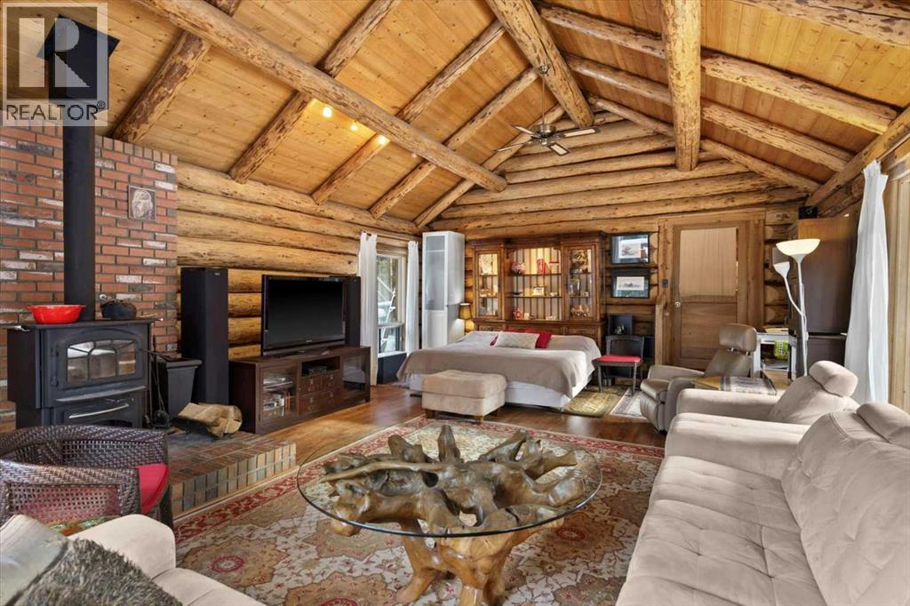 This incredible one-of-a-kind property on over 5 acres amidst towering spruce, pine, and poplar in stunning West Bragg Creek, offers endless outdoor adventures with Bragg Creek Provincial Park and Kananaskis Country minutes away and Calgary under 30 minutes for commuters. With two extremely strong water wells, no community restrictions, and over 4200 sqft of developed living space, it’s a rural living dream. The residence's versatile layout suits both couples and large families, featuring multiple decks, patios, and balconies that invite wildlife. The detached double garage, "The Cabin," serves as a converted living space with stunning nature views. This property, formerly Kruger’s Guest House, has income generating potential for B&B or AirBnB, having been a licensed B&B in the past with five private spaces for shared accommodation. Highlights include "The Grand Room" with vaulted ceilings and a wood-burning stove, "The Eagle’s Nest" with a secluded balcony, "The Hideaway" with private ensuite and secluded access, and "The Walk-Out" with a 2 person bubbling tub and private patio. The central kitchen with picture windows and a generous dining room are perfect for gatherings. Developed for functionality, this property includes two legal driveway entrances joining at a massive loop, RV parking, a detached pavilion with a party room doubling as a carport, an outdoor kitchen, a workshop, an enormous firepit, and a handcrafted log picnic table. Gardens brimming with flowers frame the natural setting, offering relaxation and tranquility. This property is a country haven and a unique opportunity not to be missed! (id:51913)
