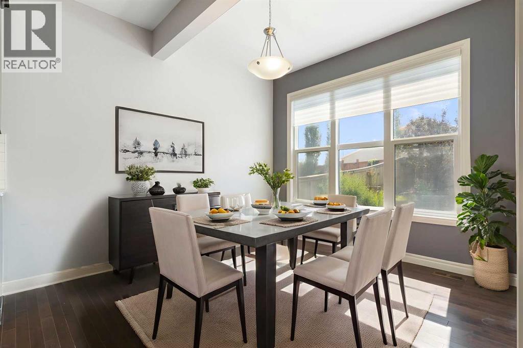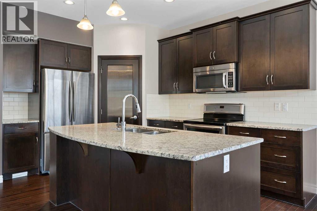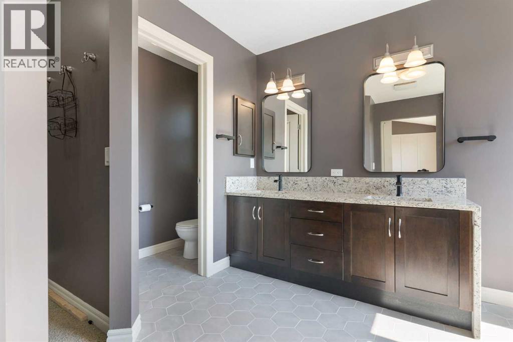 Beautifully maintained and move in ready, this home is located steps away from a peaceful green space and just minutes from shopping, dining, and other amenities. The main floor features a bright open layout with a kitchen that includes a center island and walk through pantry, leading to the mudroom and heated attached garage with workbench. Large windows fill the space with natural light and overlook the south facing backyard. This beautiful home is equipped with modern upgrades and thoughtful details throughout. The property features a central automated irrigation system with sprinklers in both the front and back yard, providing convenience and a lush, green landscape during the summer days. The backyard has been upgraded with over $40,000 in enhancements, including a spacious deck, a gas outlet for a BBQ and heater, and a dedicated connection for a hot tub — creating an exceptional outdoor space perfect for entertaining and relaxation.Upstairs, you will find three bedrooms, including a vaulted primary suite that adds elegance and space. The suite features a walk in closet and a luxurious ensuite with double vanity and oversized open shower. Additionally, the master bathroom boasts heated floors, offering comfort and luxury in every season. A vaulted bonus room provides additional living space, while upper level laundry and a second four piece bathroom complete the floor.The fully finished basement offers a family room, bright bedroom with large window, four piece bathroom, and wet bar. Additional highlights include air conditioning and abundant natural light throughout. For added convenience, the garage is also heated, making winter mornings easier and providing extra usability all year long. This home is ready to welcome its new owners. (id:51913)