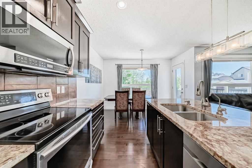 Perfect family home in the heart of Cranston with walking distance to schools (Catholic, Christian, Public) and close to hospital, YMCA, library, shopping mall of Superstore, Save-On-Foods, Sobey) nearby. This beautiful floor plan (1,705 sq.ft plus finished basement) features maple hardwood floorings on the main floor, full height maple cabinets and upgraded stainless-steel appliances make up the beautiful kitchen alongside your cozy living room with Fireplace. Hugh carpeted Bonus room featuring 10' ceilings, 3 bedrooms and 2 full bathrooms upstairs. The primary bedroom features a large soaker tub and separate shower. You'll love your Summers spent out back on your 372 sq.ft deck, the accompanying large yard and dog run. The Finished Basement is perfect for a home gym, play area or secondary living space with a full bath added in. Tons of upgrades have been done to this already beautiful home such as Air conditioning, Nest Smart Thermostat.. Please arrange your viewing today! (id:51913)