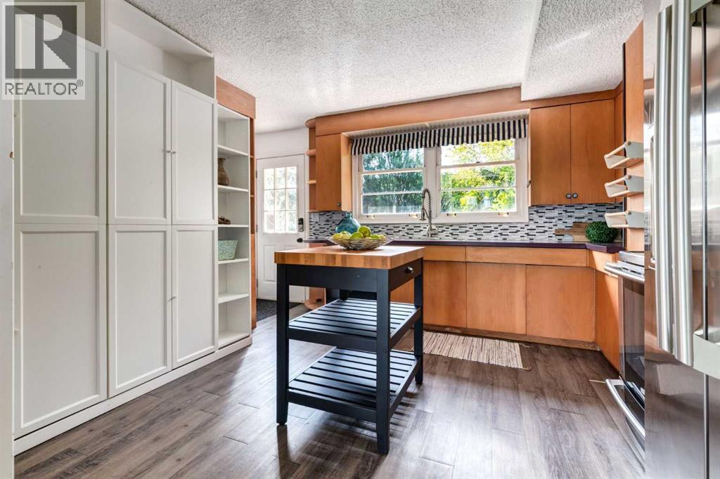 A rare opportunity to own on prestigious Bow Crescent, directly across from the Bow River and expansive green space, in the heart of the eclectic and vibrant community of Bowness. This 51’ x 83’ R-CG zoned lot is surrounded by multi-million dollar homes and offers incredible potential for redevelopment, investment, or a long-term hold.Step onto the inviting front veranda and take in unobstructed views of the park and river. Front yard is beautifully landscaped with low-maintenance perennials, creating year-round curb appeal.Inside, the main floor is filled with natural light and features original hardwood flooring, and a well-equipped kitchen with stainless steel appliances, generous cabinetry, and a window overlooking the private backyard. The home was moved to this location in 1985, with new fully developed basement and updated plumbing and electrical systems. The lower level offers additional bedrooms, a full bathroom, a large rec/games room, and ample storage.The fenced backyard is treed and peaceful, complete with an expansive deck ideal for entertaining or relaxing. Additional upgrades include a newer furnace, roof, gutters, and fascia, plus front driveway parking for convenience. Located just steps to waterfront parks, the Bow River pathway system, schools, transit, and the amenities that make Bowness one of Calgary’s most beloved and unique communities. (id:51913)