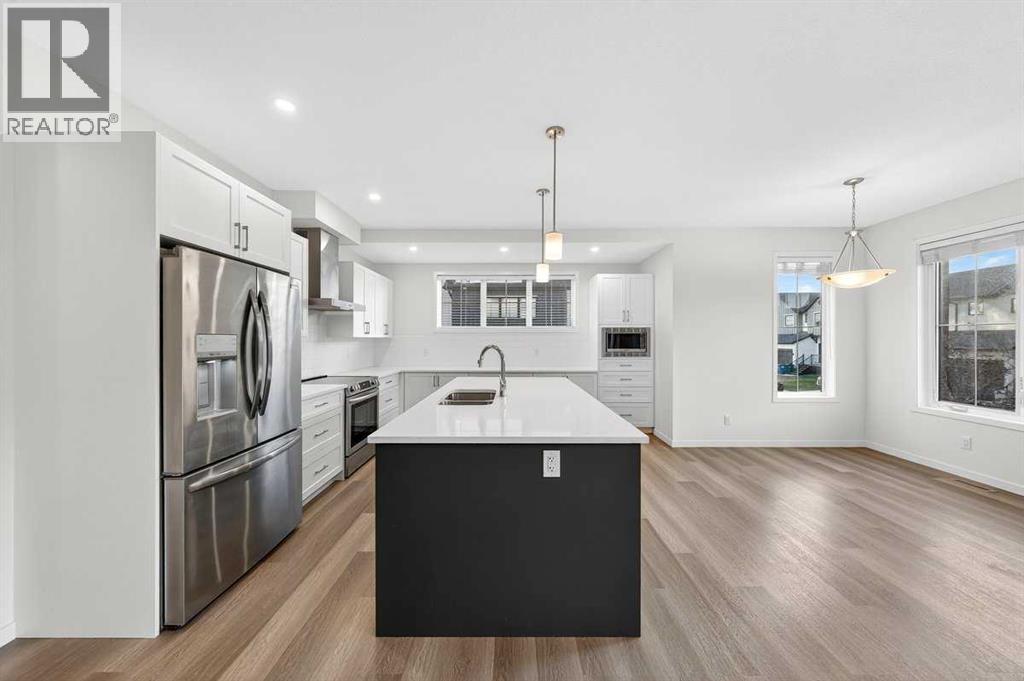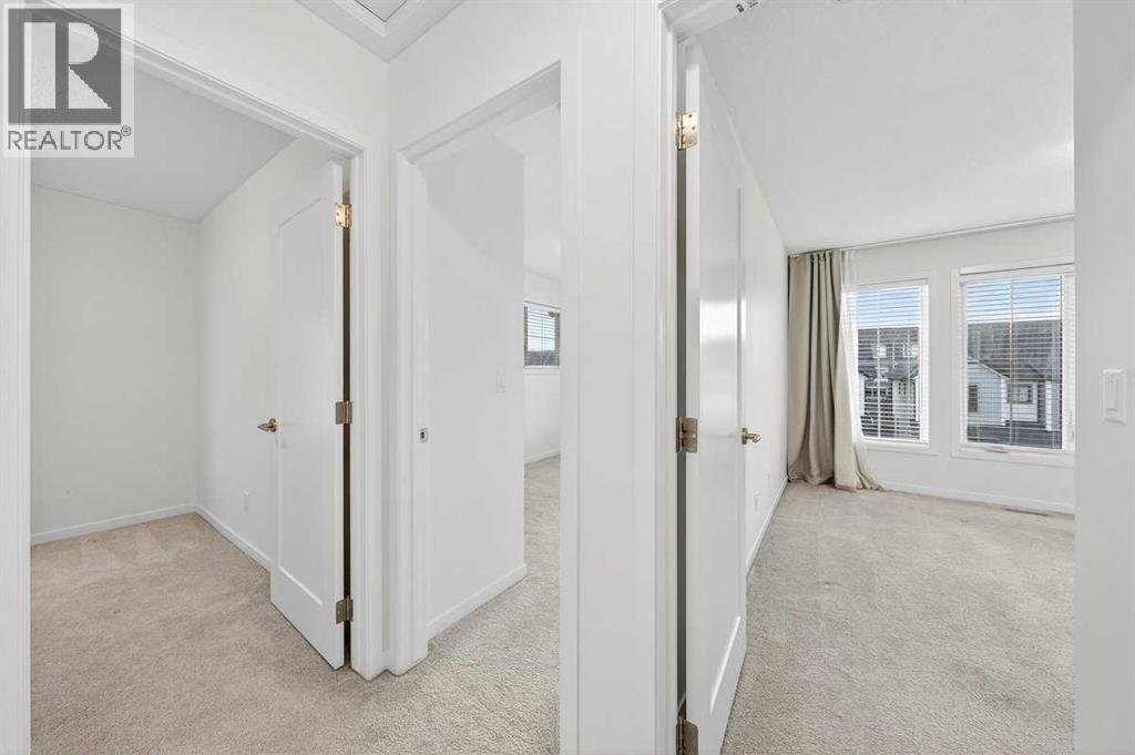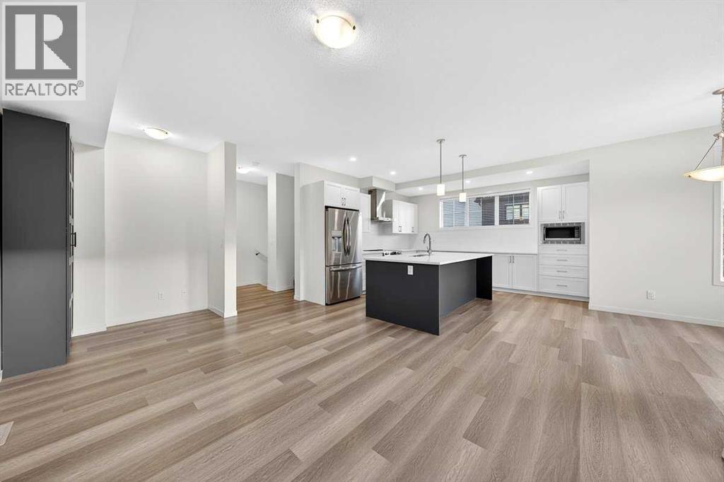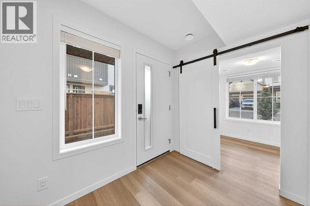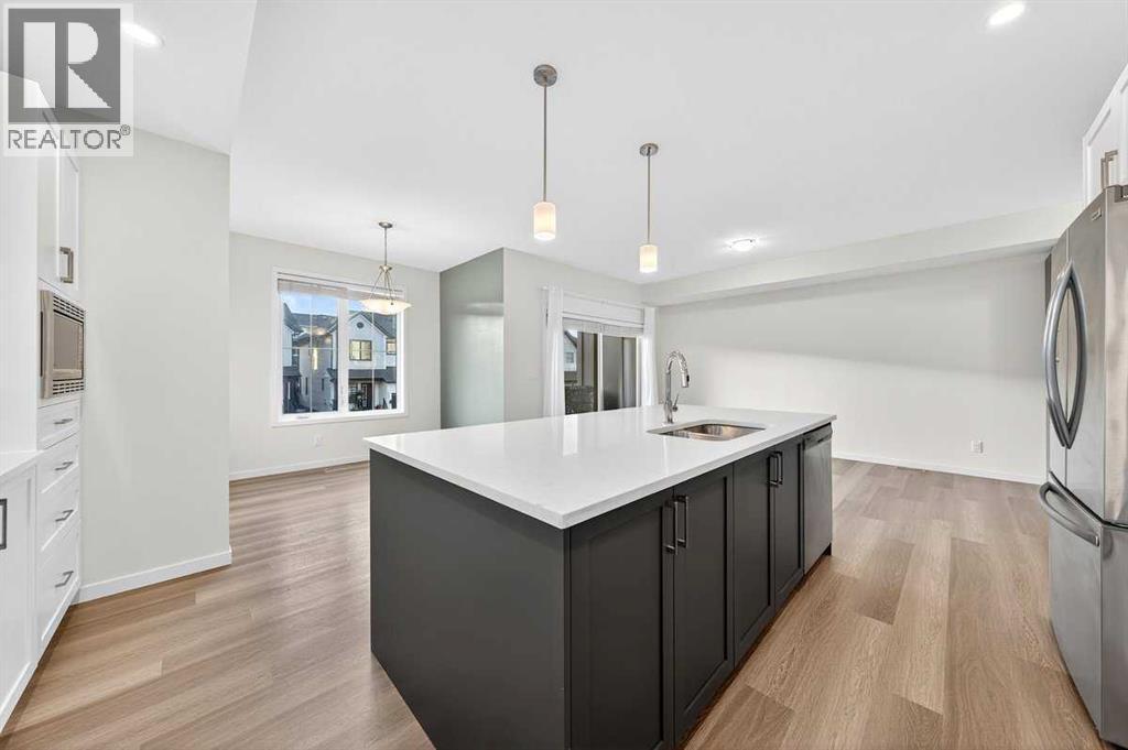 Welcome to this immaculate 3-bedroom, 2.5-bath, three-storey corner unit home that offers modern comfort, style, and convenience in every detail. This non-condo property is covered by new home warranty and showcases beautiful bright windows throughout, filling each space with natural light.The entry level features a versatile office or den with a large window—perfect for working from home or creating a quiet reading nook—along with access to a single attached garage and driveway for added convenience.The open-concept main floor is designed for both living and entertaining, with vinyl plank flooring, stunning quartz countertops, and a contemporary kitchen that blends functionality with elegance. Upstairs, you’ll find three spacious bedrooms, including a serene primary suite with a double vanity and plush carpeted bedrooms for added comfort.Enjoy your morning coffee on the private balcony, or unwind outdoors in your small side yard and large front yard, offering rare outdoor space for a home of this style. Perfectly located right beside Northcott Prairie Elementary School, and just steps from pathways, parks, and amenities, this home delivers the ideal balance of community and convenience. (id:51913)